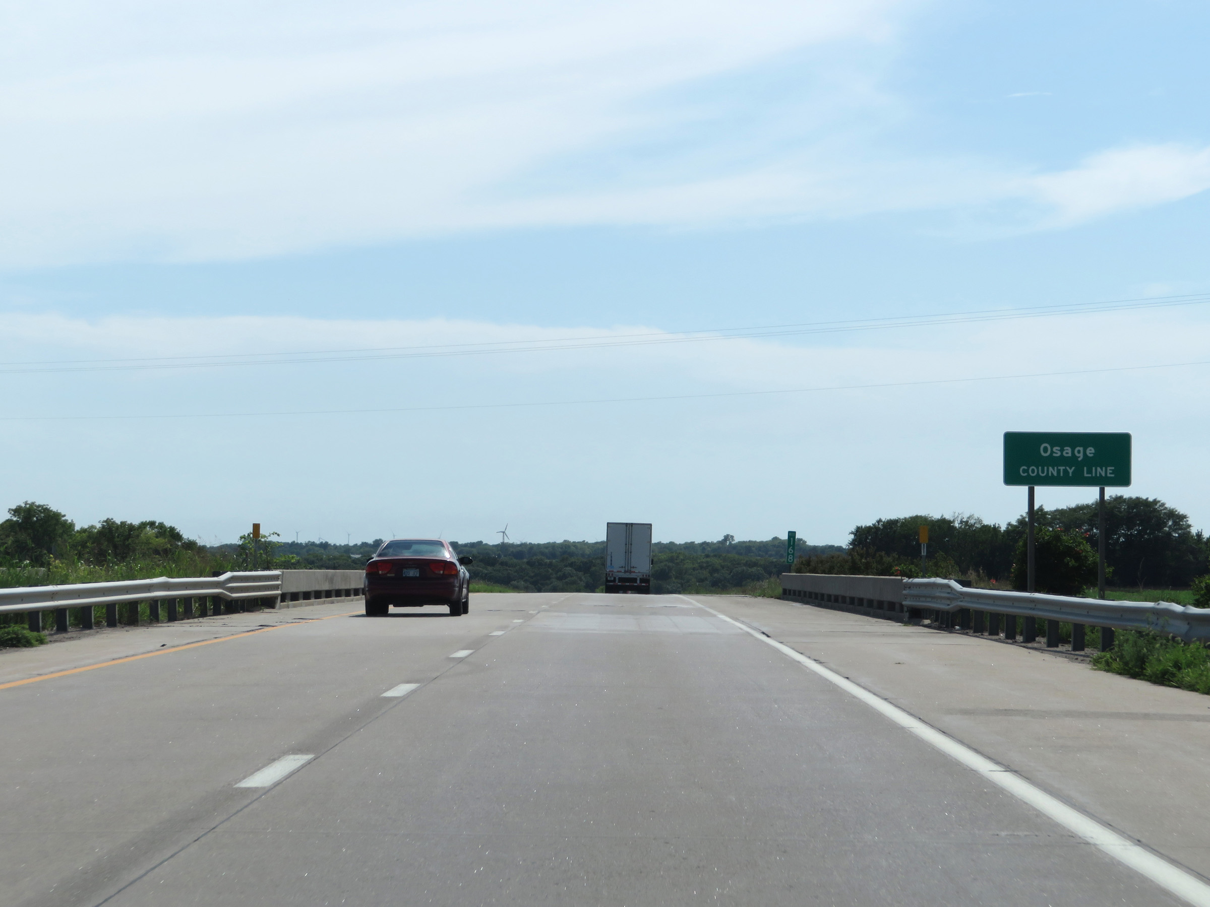 Crossing the Cottonwood River on Interstate 35 South (Kansas Turnpike) in Lyon County. (Photo taken 8/10/20). |