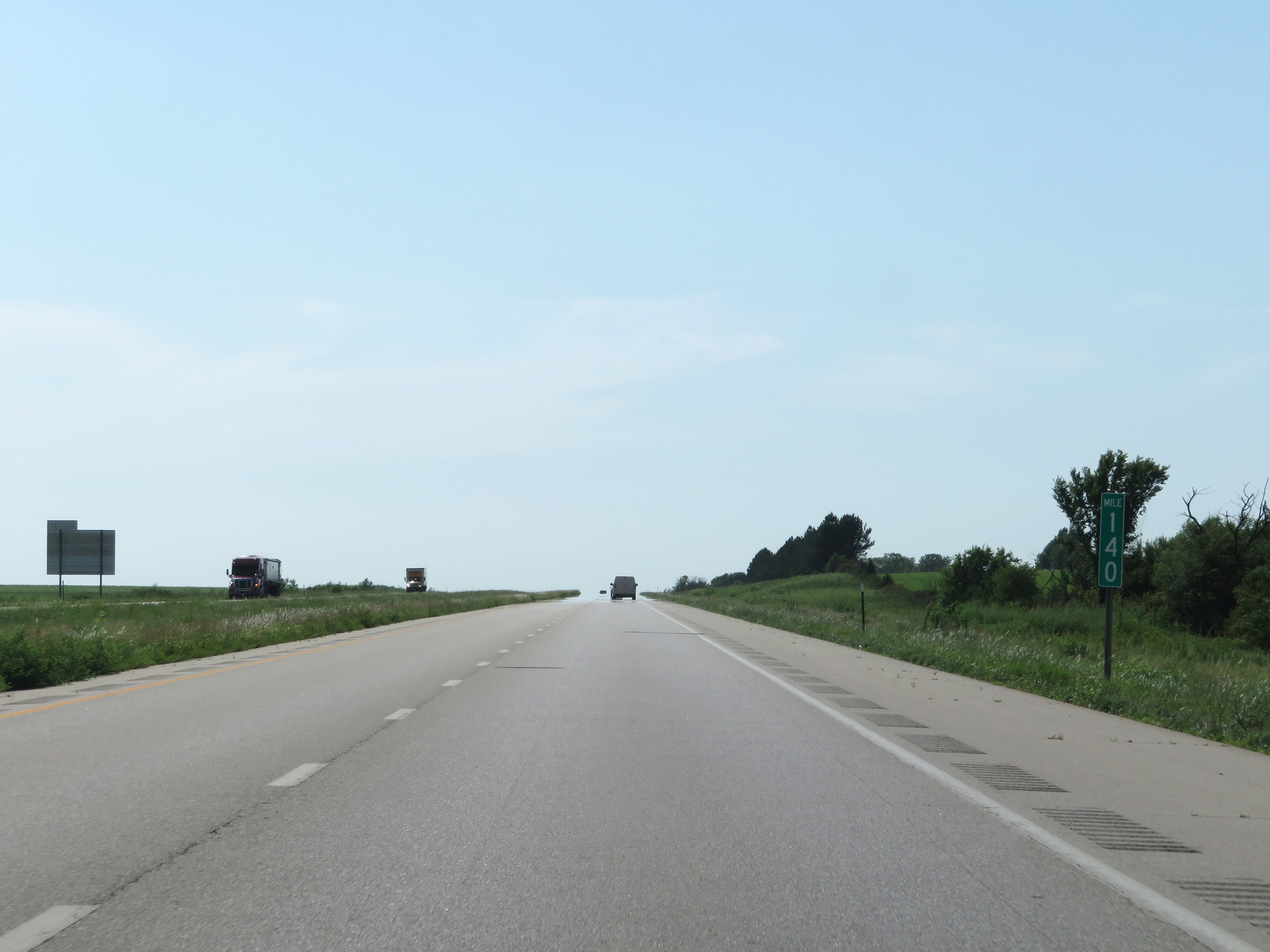 Mile marker 100.4 on Interstate 35 South (Kansas Turnpike) in Chase County. (Photo taken 8/10/20). |