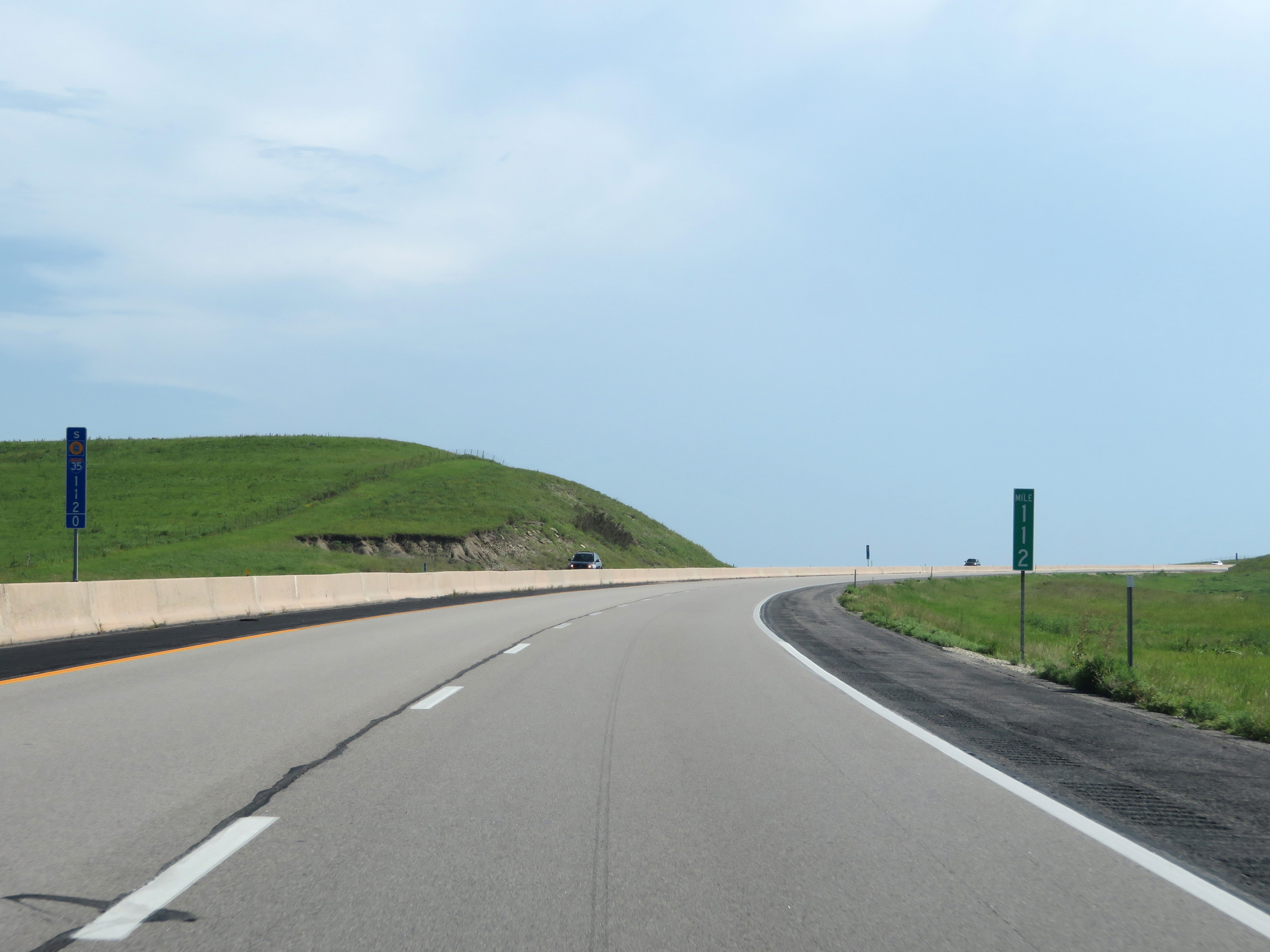 Mile marker 112 on Interstate 35 South (Kansas Turnpike) in Chase County. (Photo taken 8/10/20). |