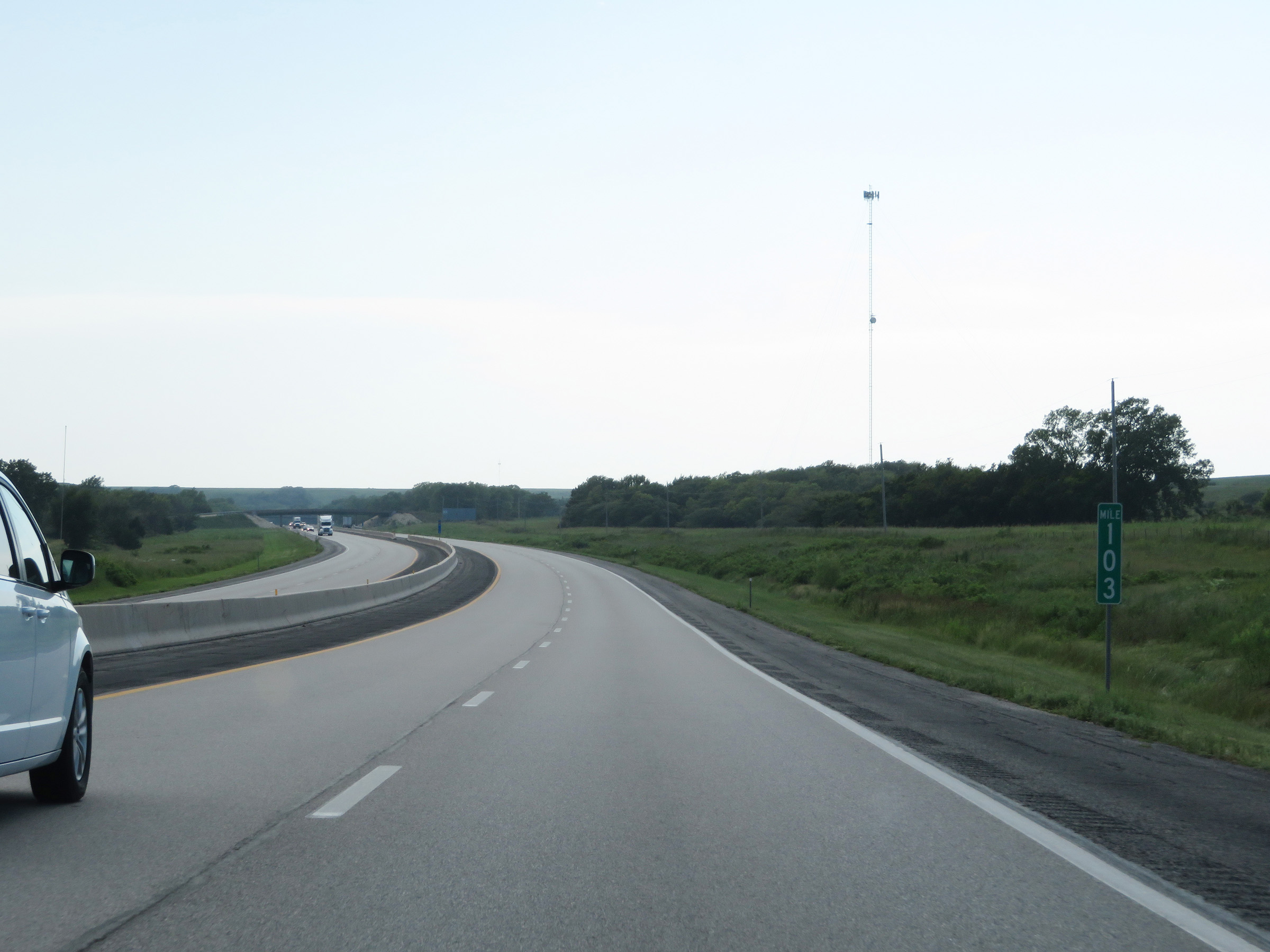 View on Interstate 35 South (Kansas Turnpike) at mile marker 103. (Photo taken 8/10/20). |