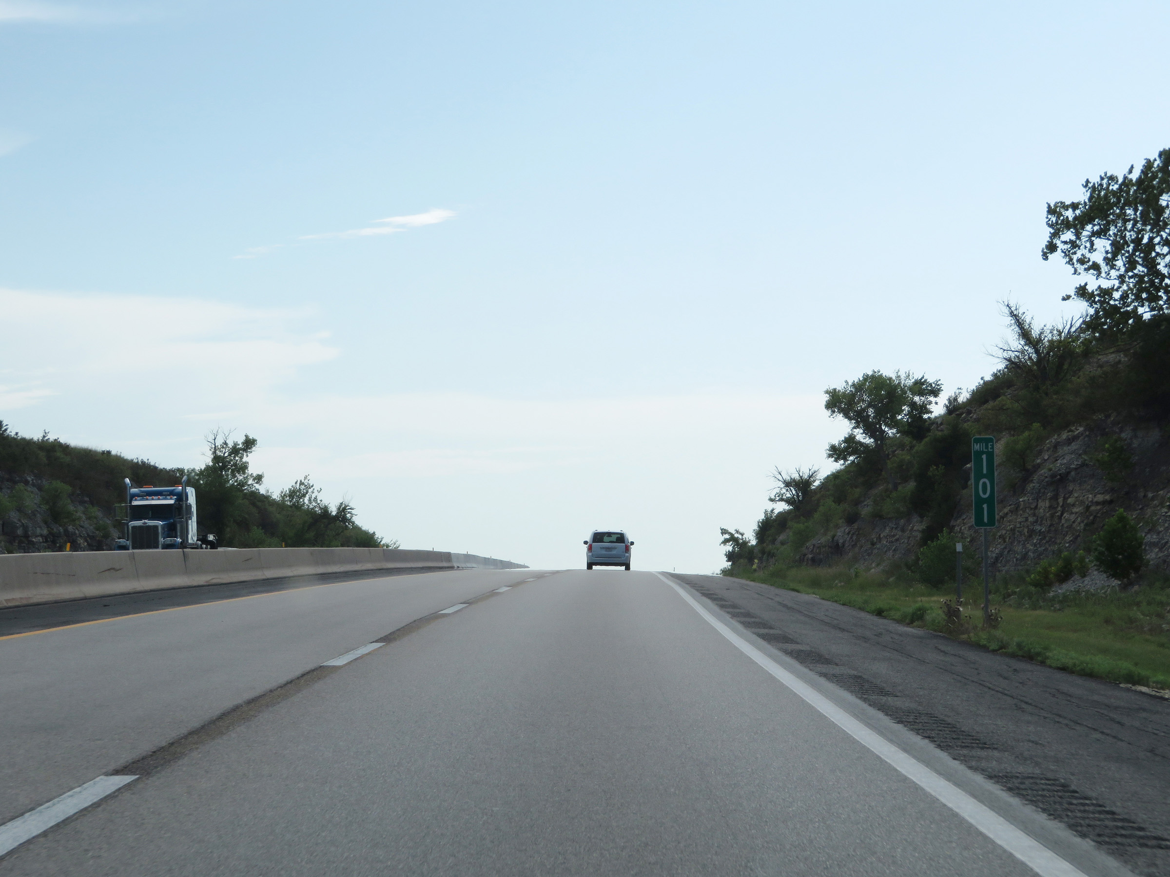 Interstate 35 South (Kansas Turnpike) at mile marker 114, in the Flint Hills. (Photo taken 8/10/20). |