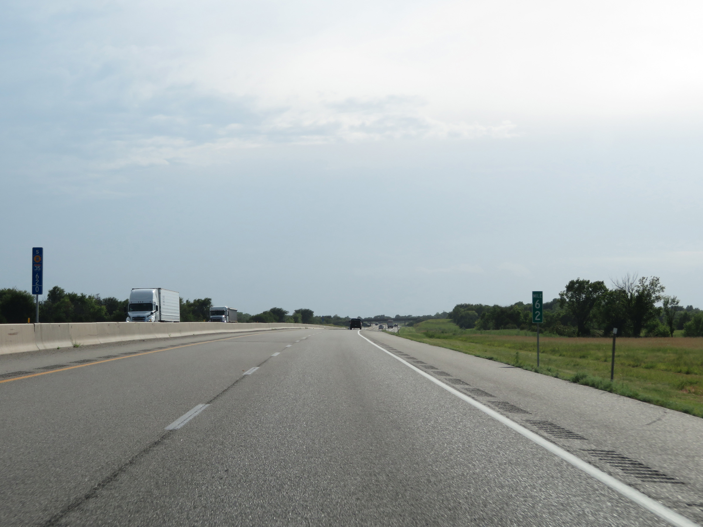 Interstate 35 South (Kansas Turnpike) enters Chase County at mile marker 116.2. (Photo taken 8/10/20). |