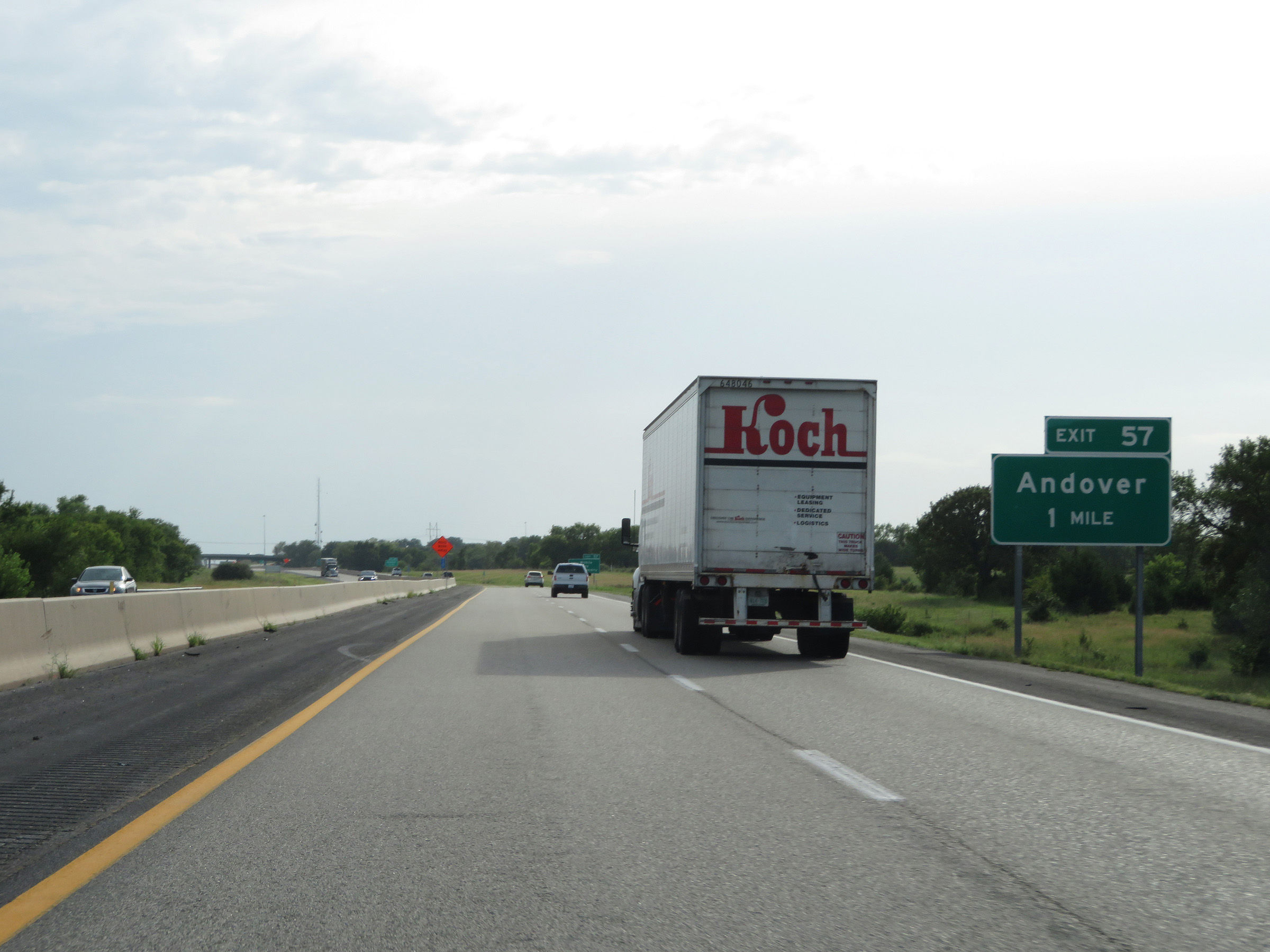 Interstate 35 South (Kansas Turnpike) as it enters Butler County. (Photo taken 8/10/20). |