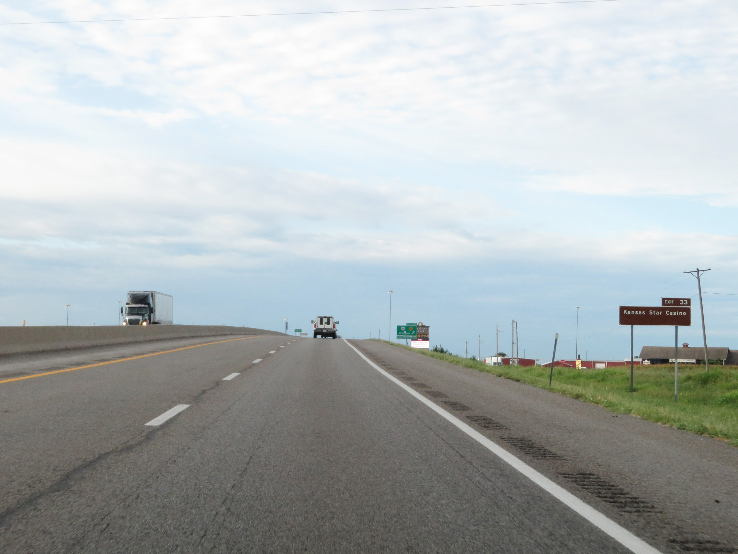 Interstate 35 South (Kansas Turnpike) at mile marker 105. (Photo taken 8/10/20). |