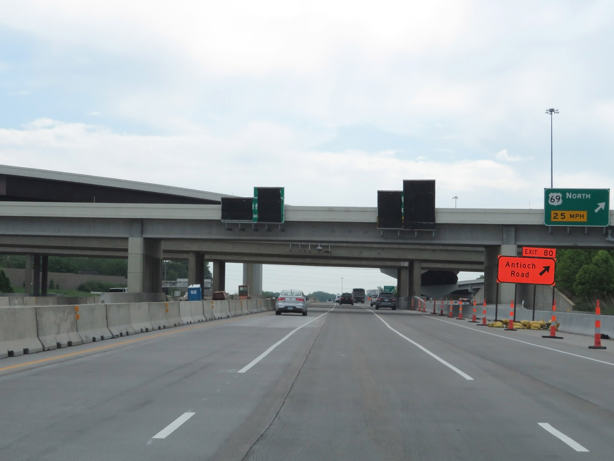 Interstate 435 Outer Loop (East) at Exit 80: Antioch Road (Photo taken 5/17/18). |