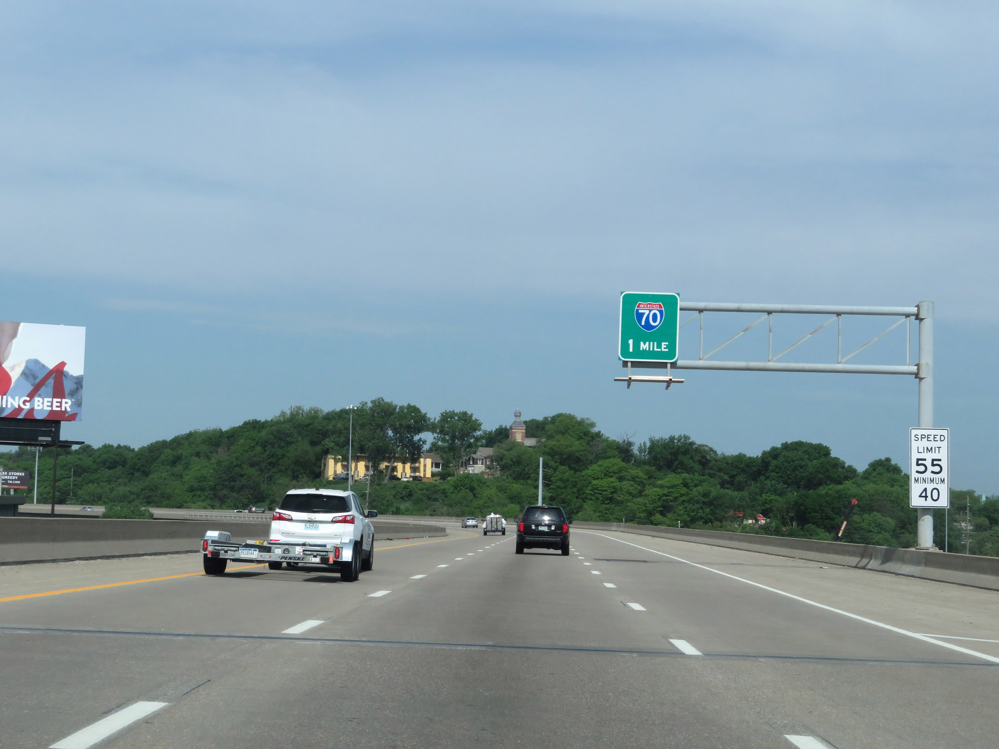 Interstate 670 West at mile marker 1. (Photo taken 5/17/18). |