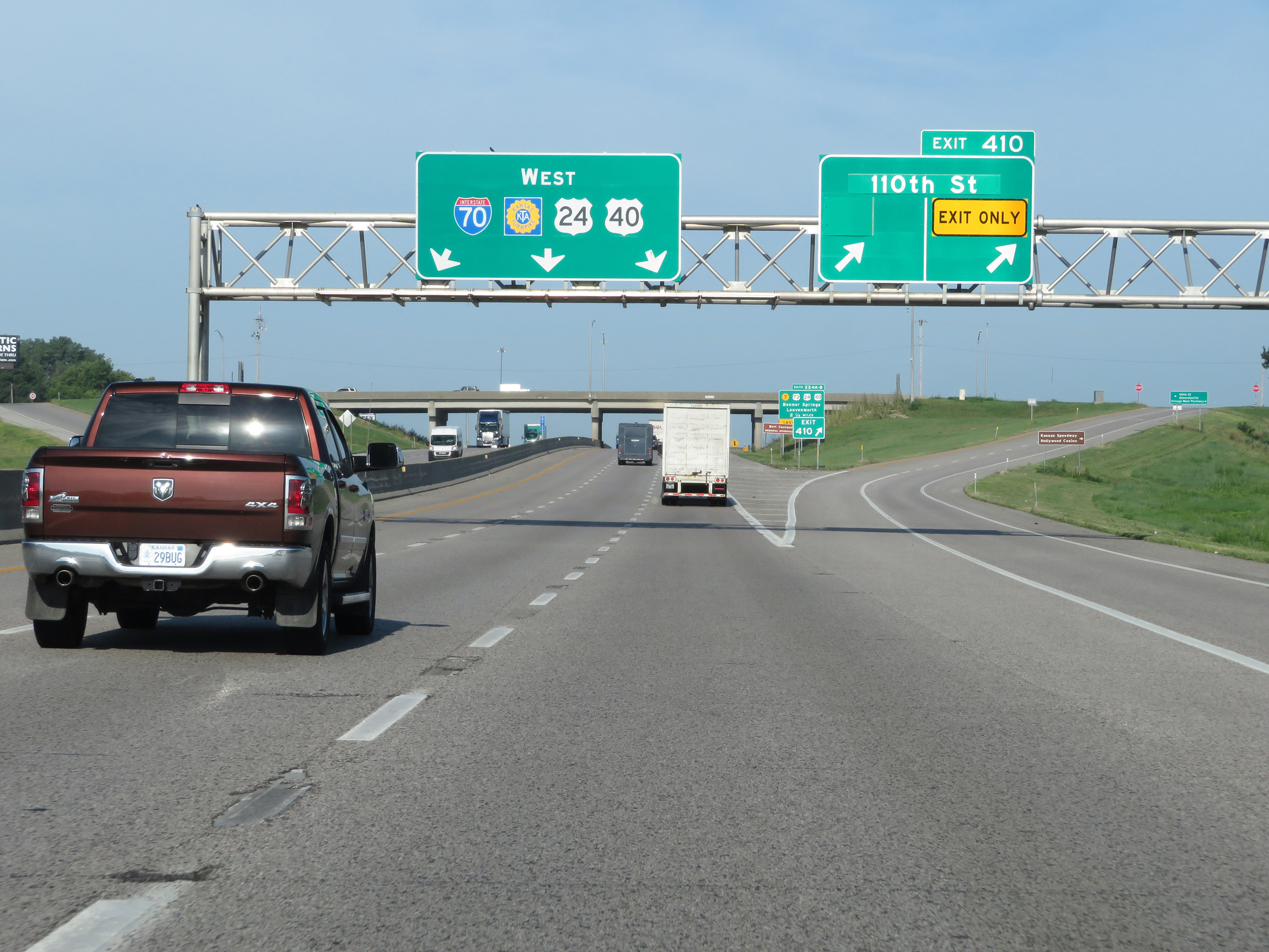Also take Exit 410 to Kansas Speedway and Hollywood Casino. (Photo taken 8/12/20). |