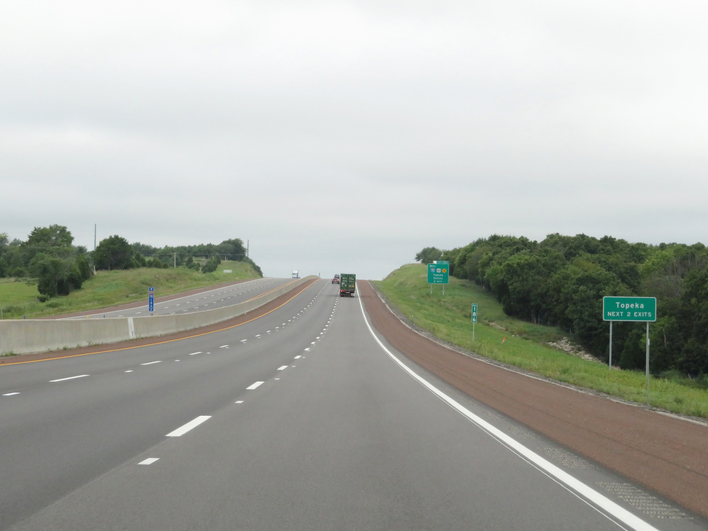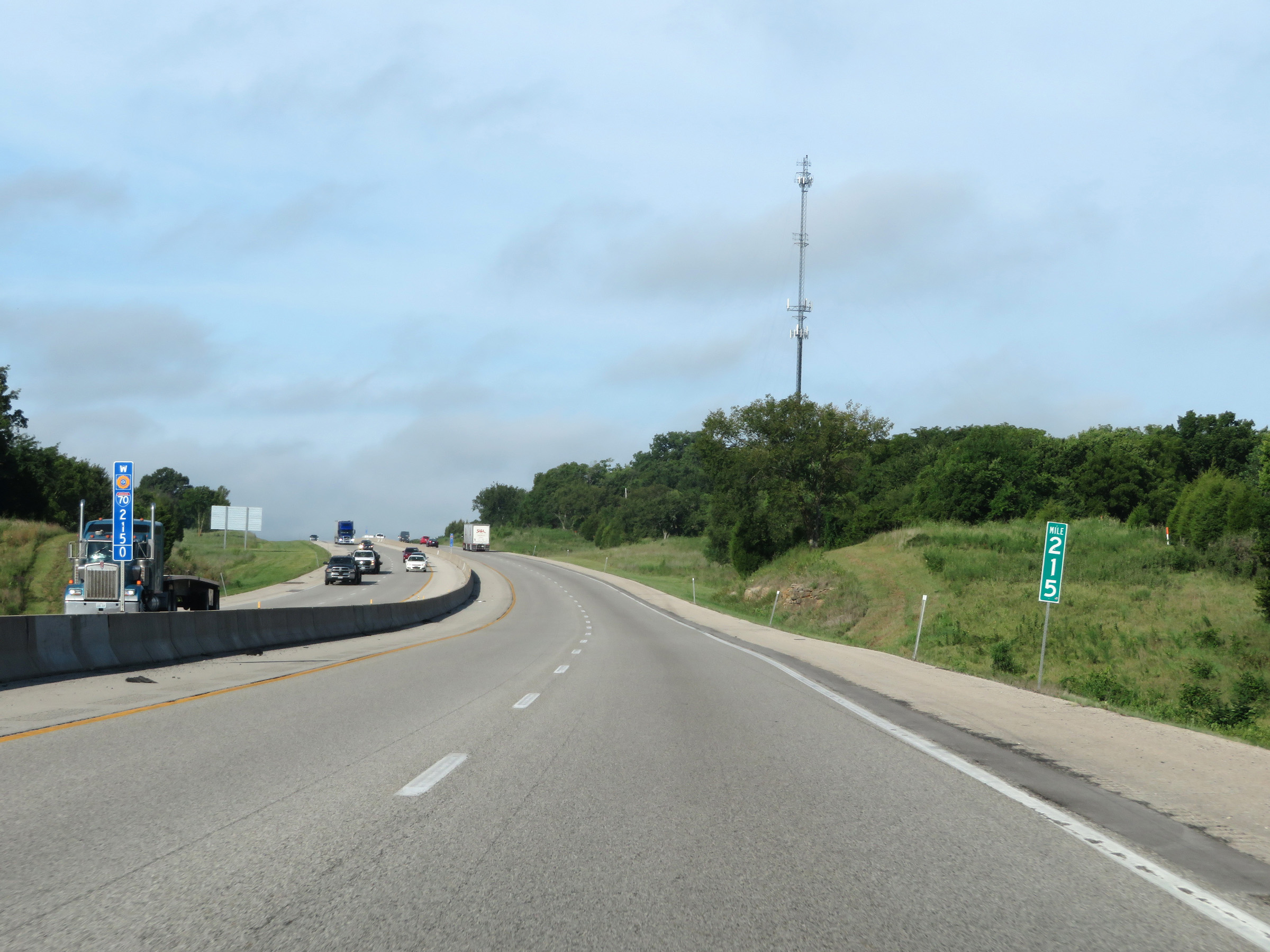 Interstate 70 West (Kansas Turnpike) at mile marker 215. (Photo taken 8/12/20). |