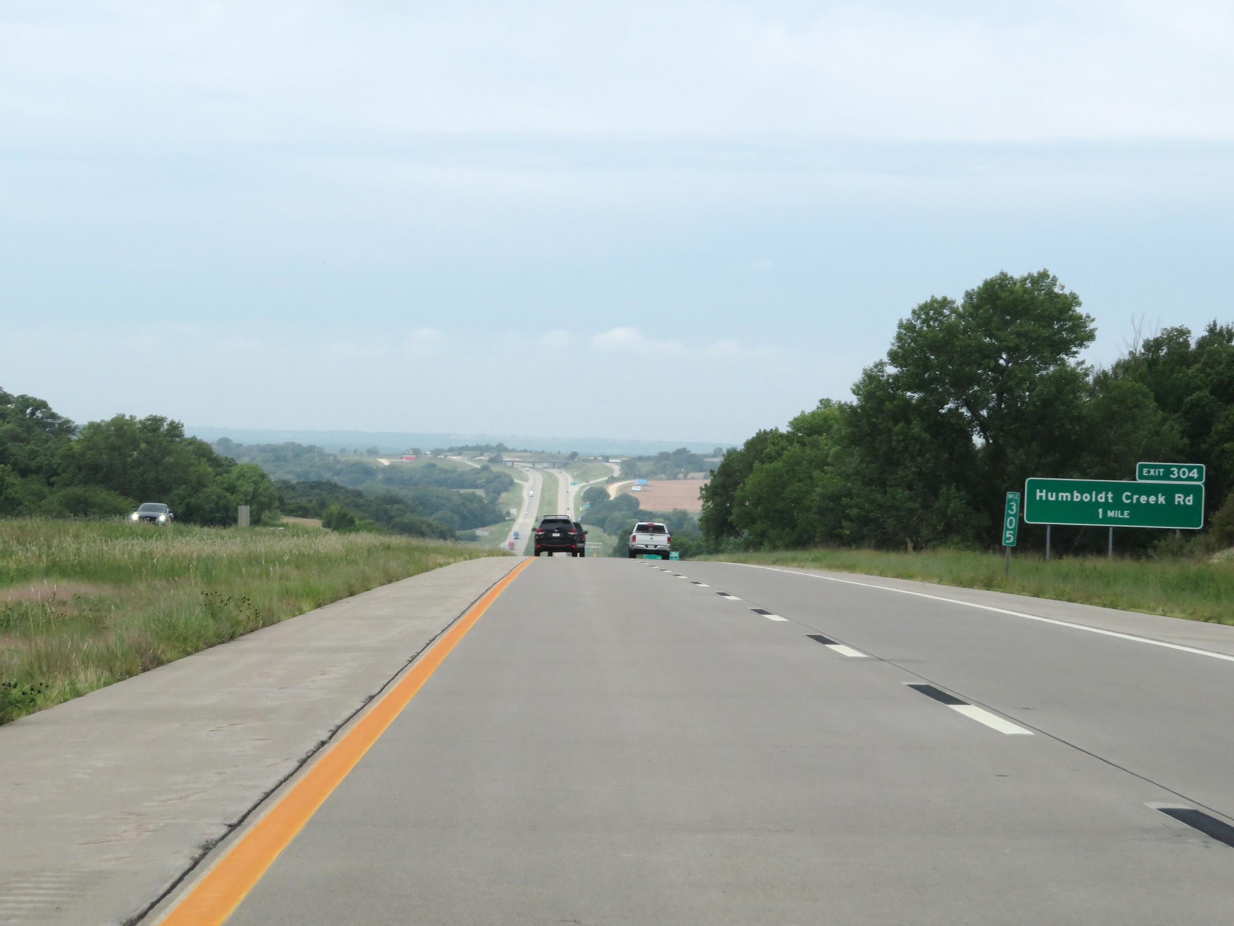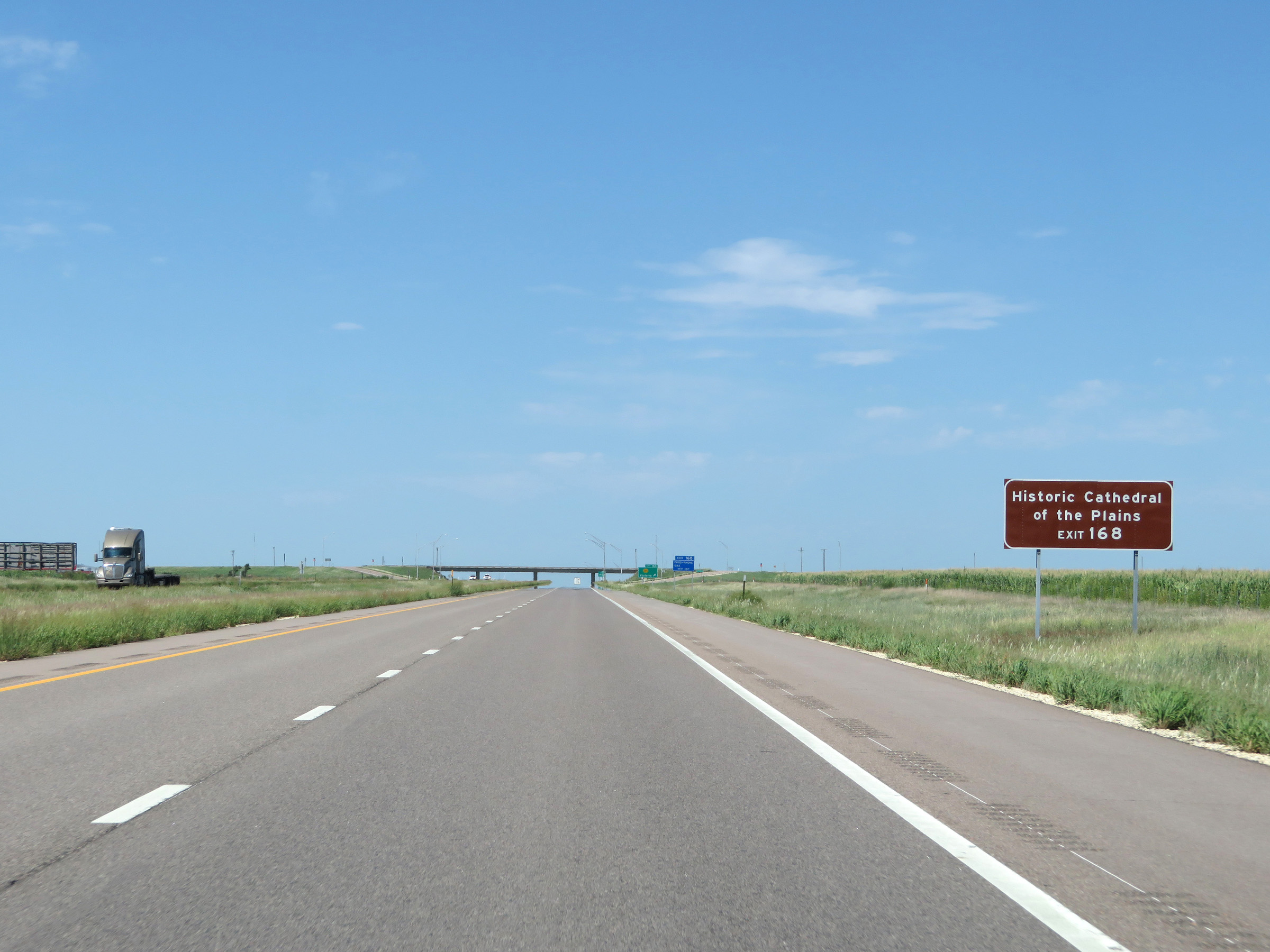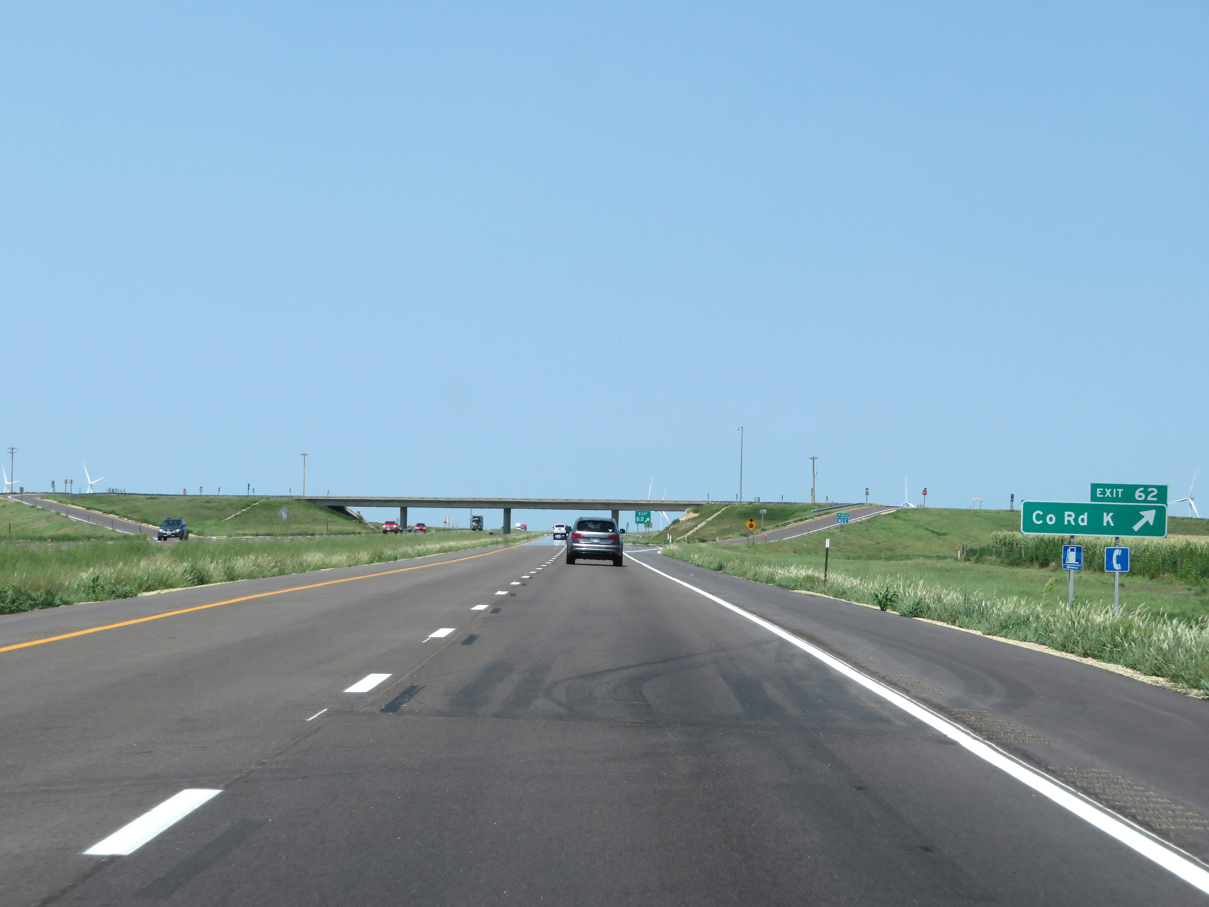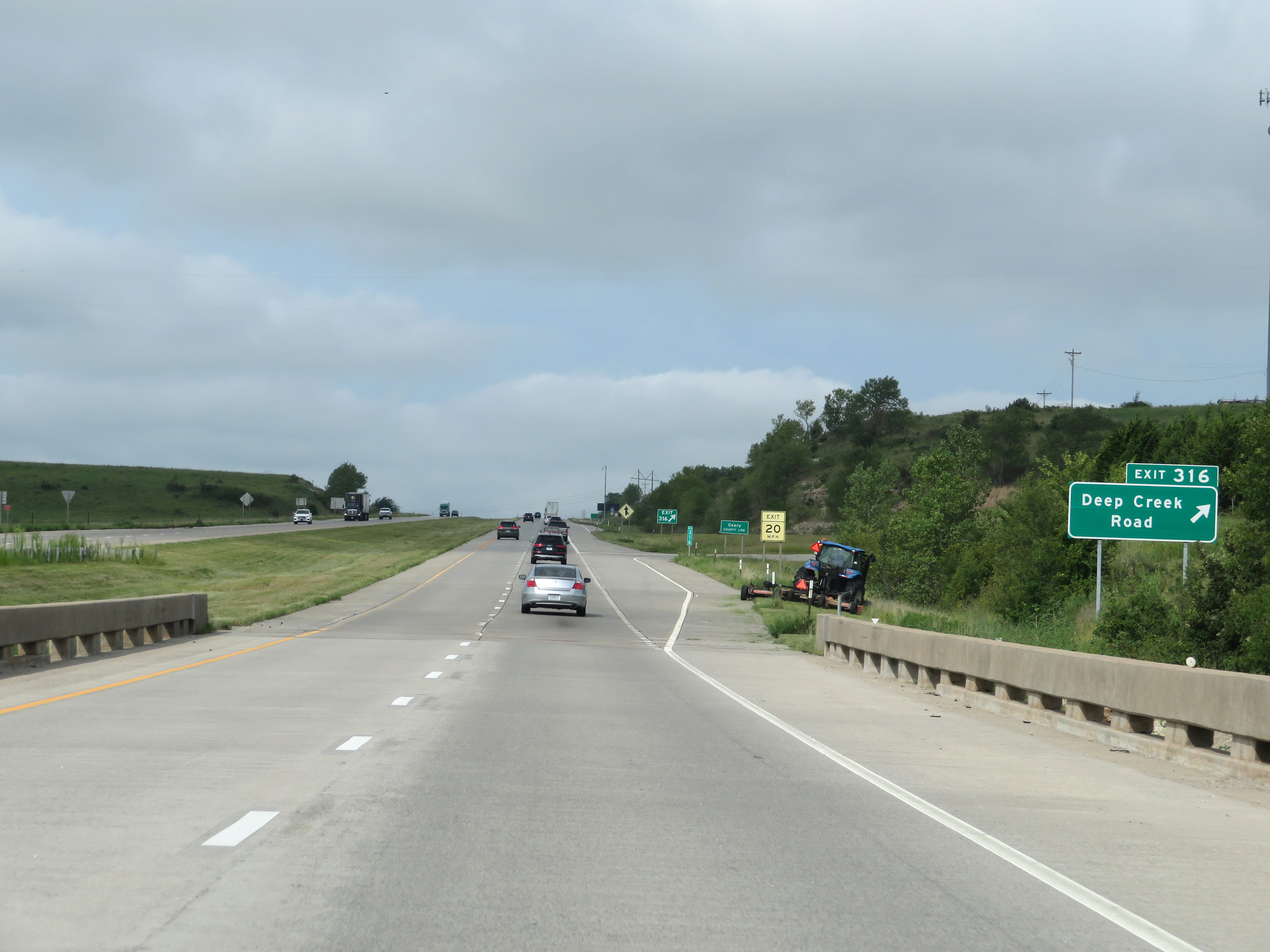 View on Interstate 70 West (Kansas Turnpike) at mile marker 216. (Photo taken 8/12/20). |