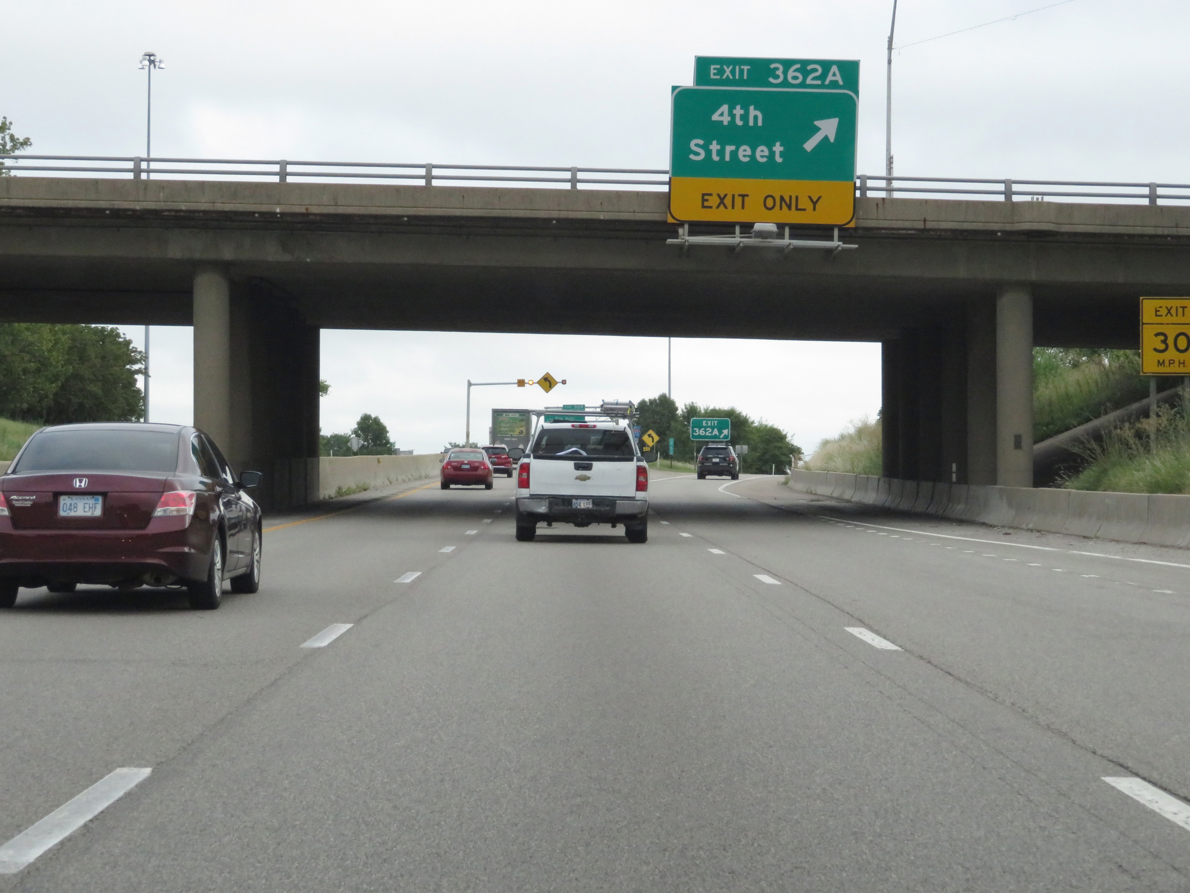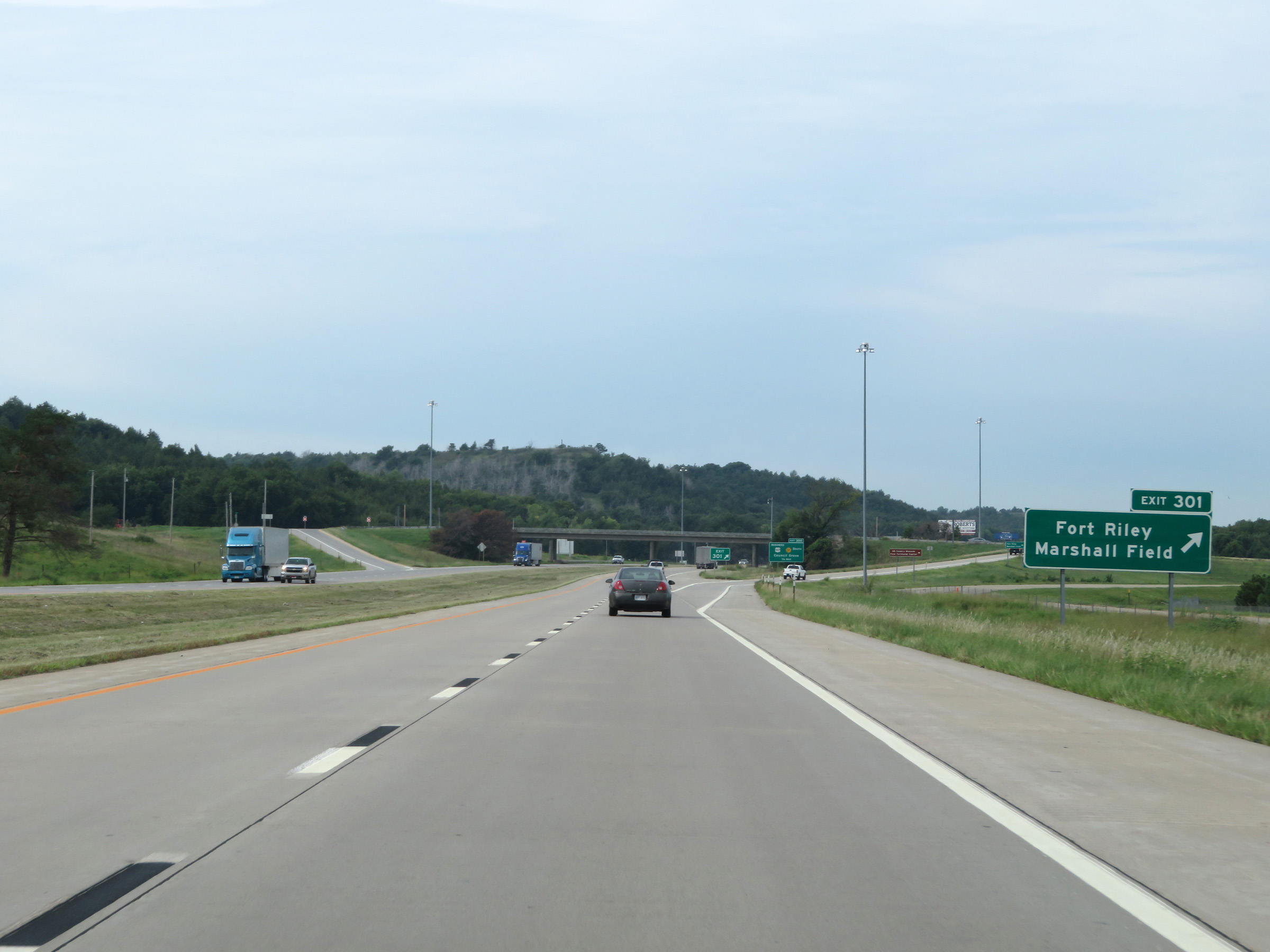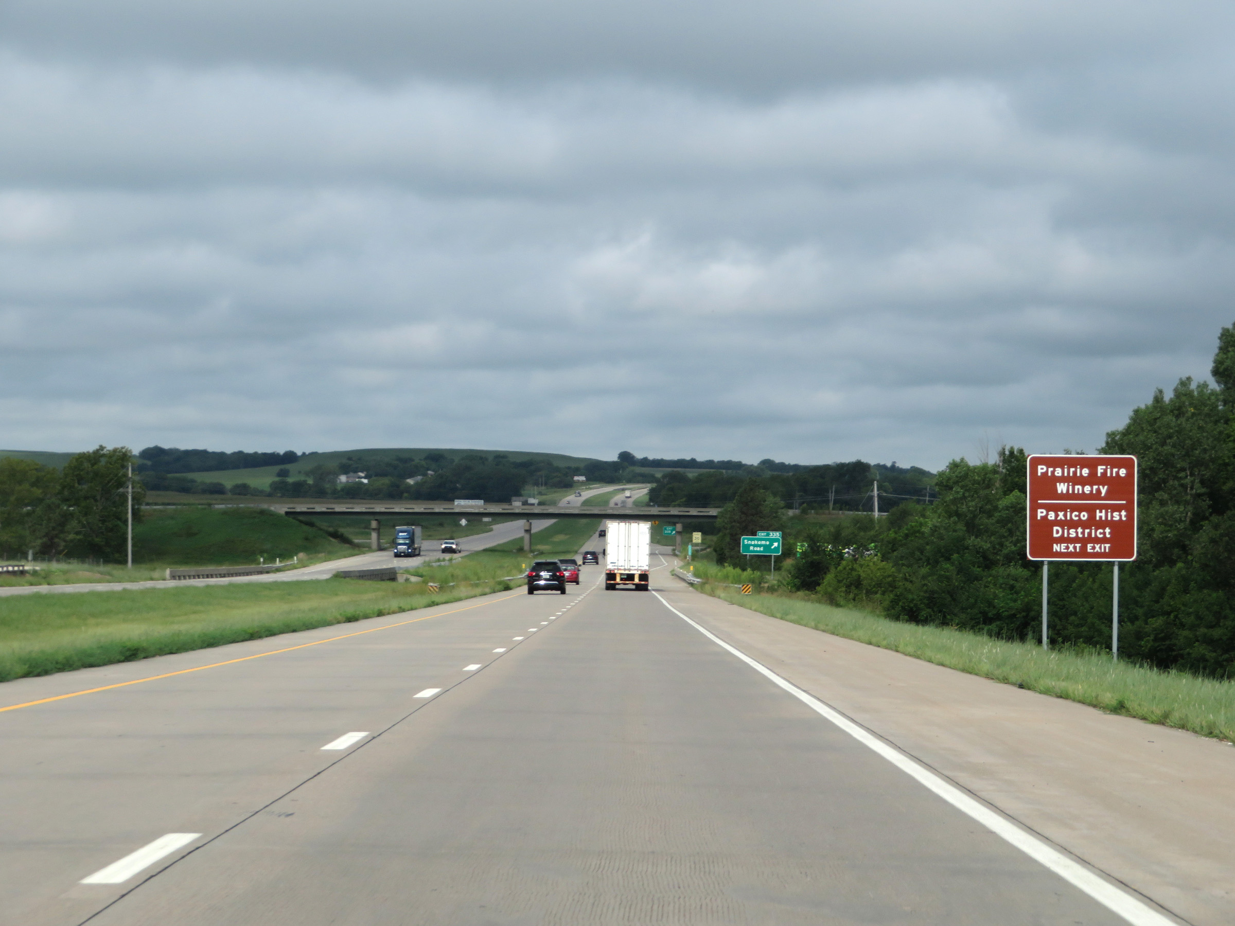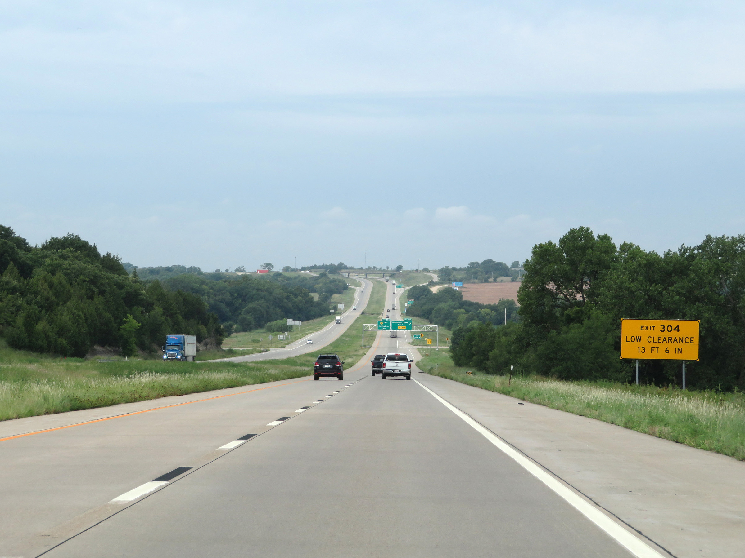View on Interstate 70 West (Kansas Turnpike) at mile marker 216. (Photo taken 8/12/20). |