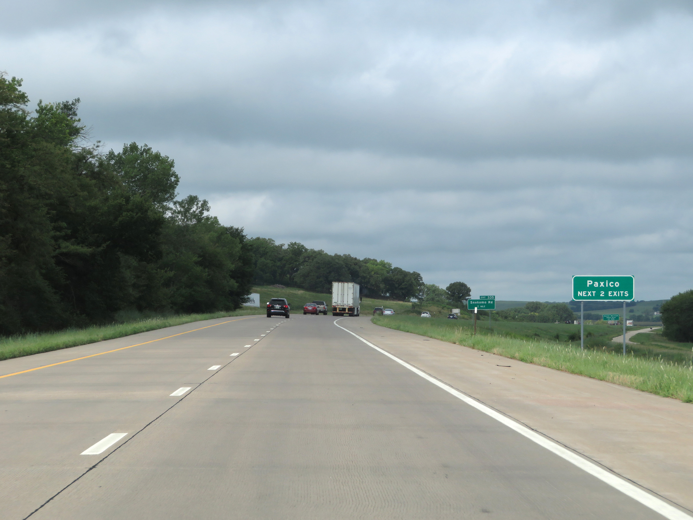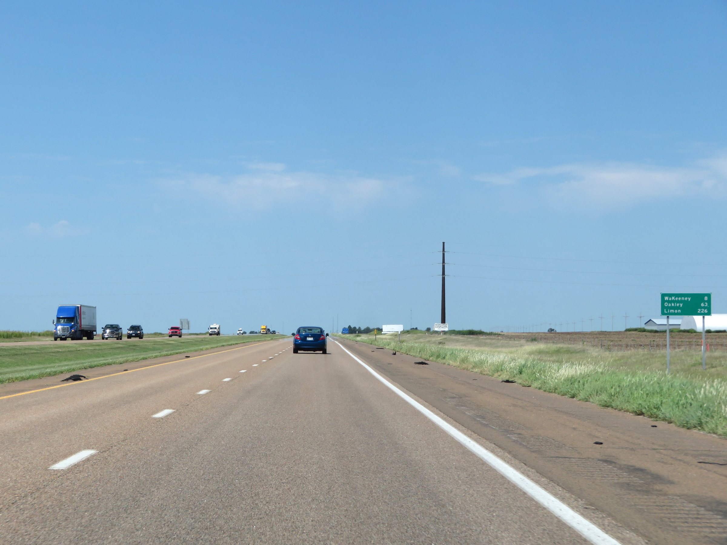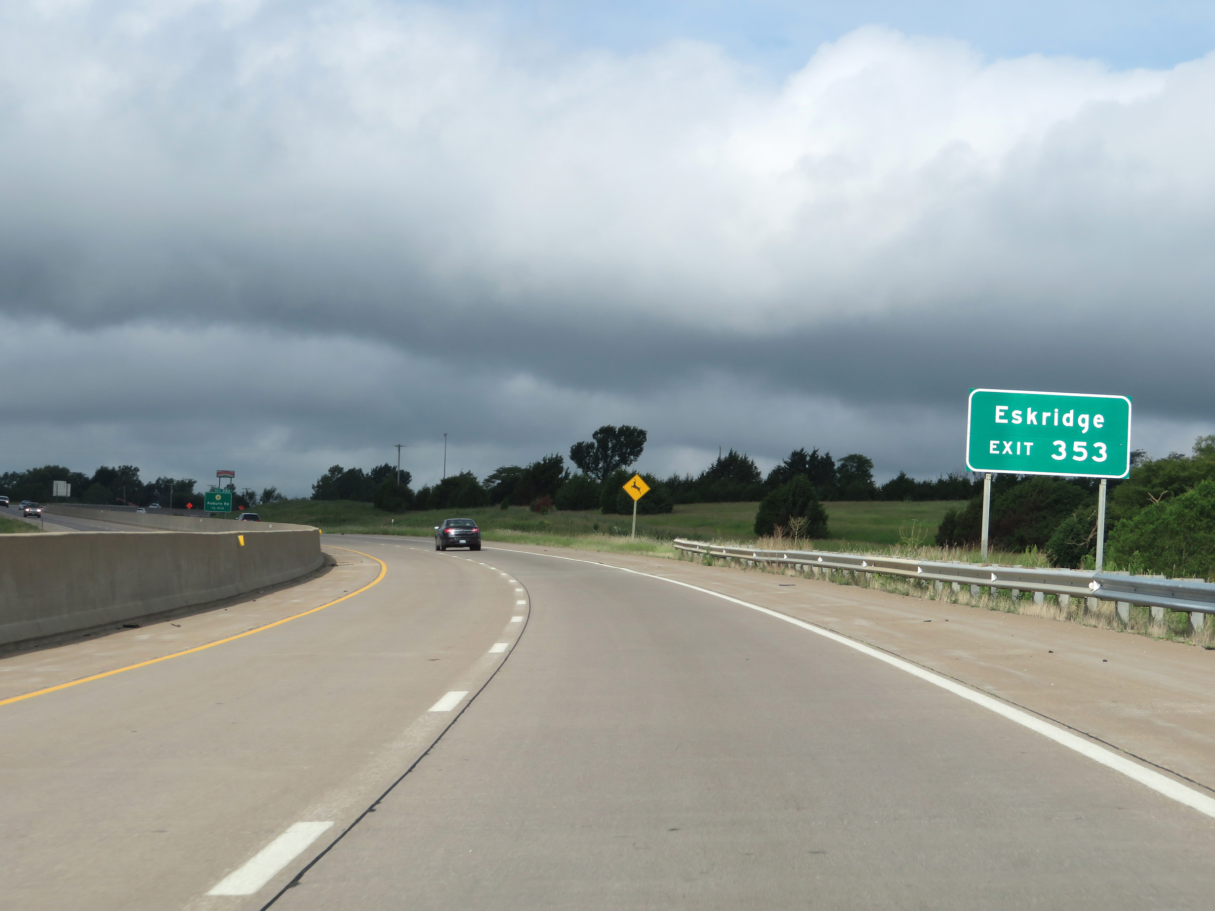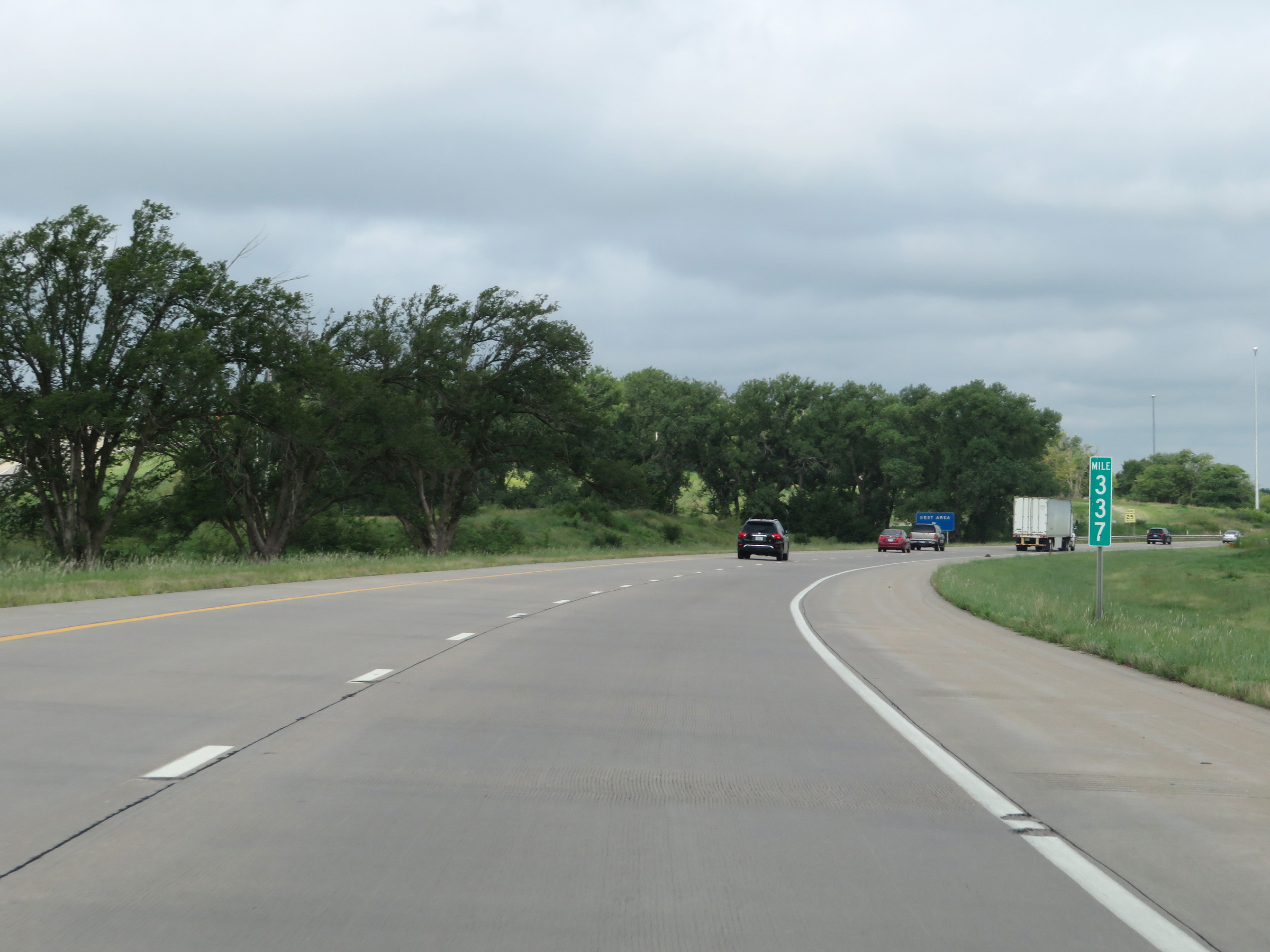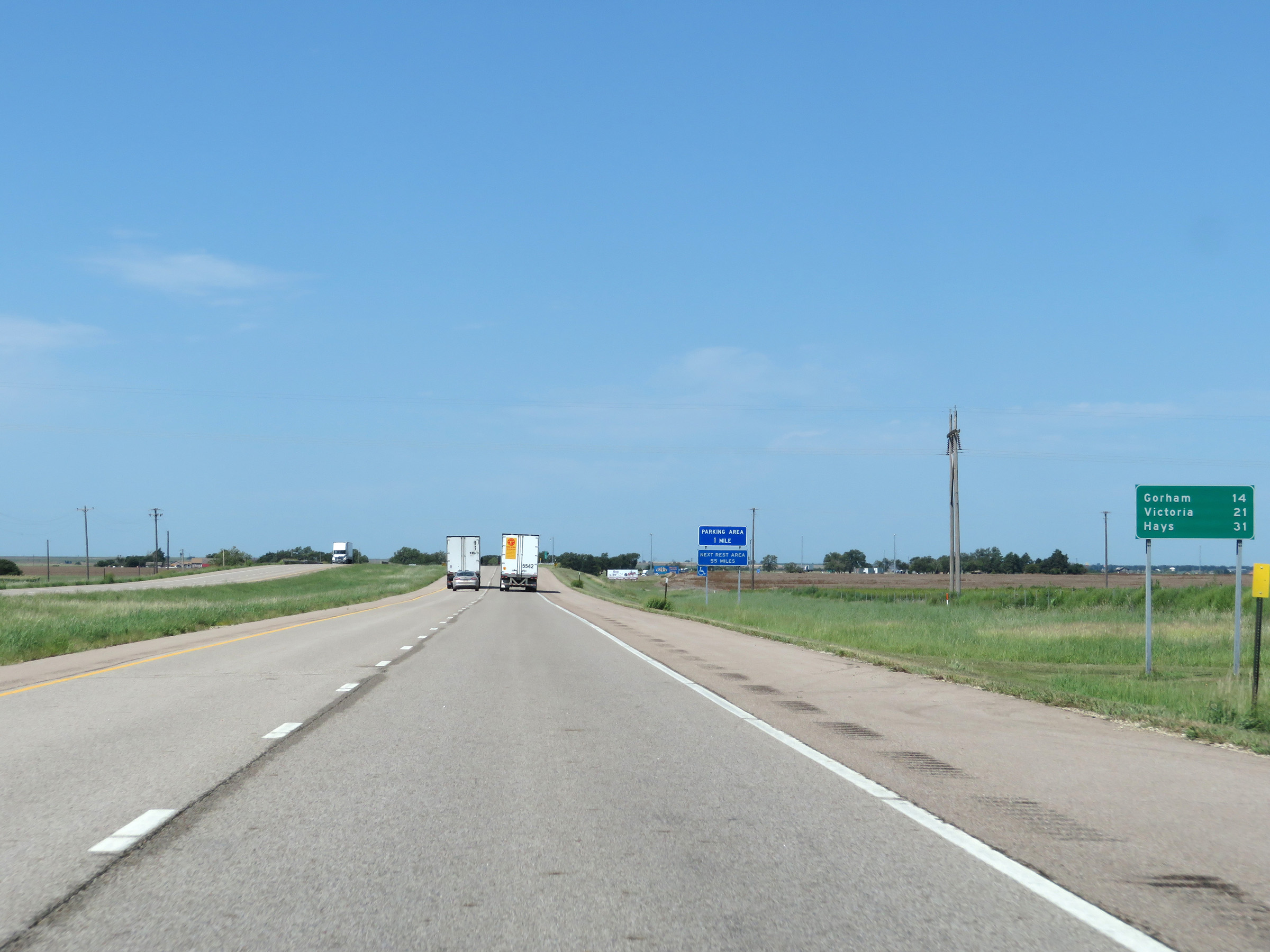 View on Interstate 70 West (Kansas Turnpike) at mile marker 216. (Photo taken 8/12/20). |