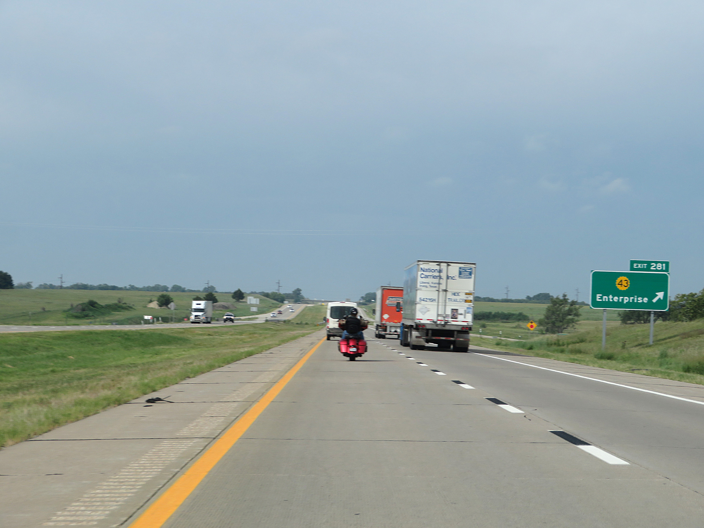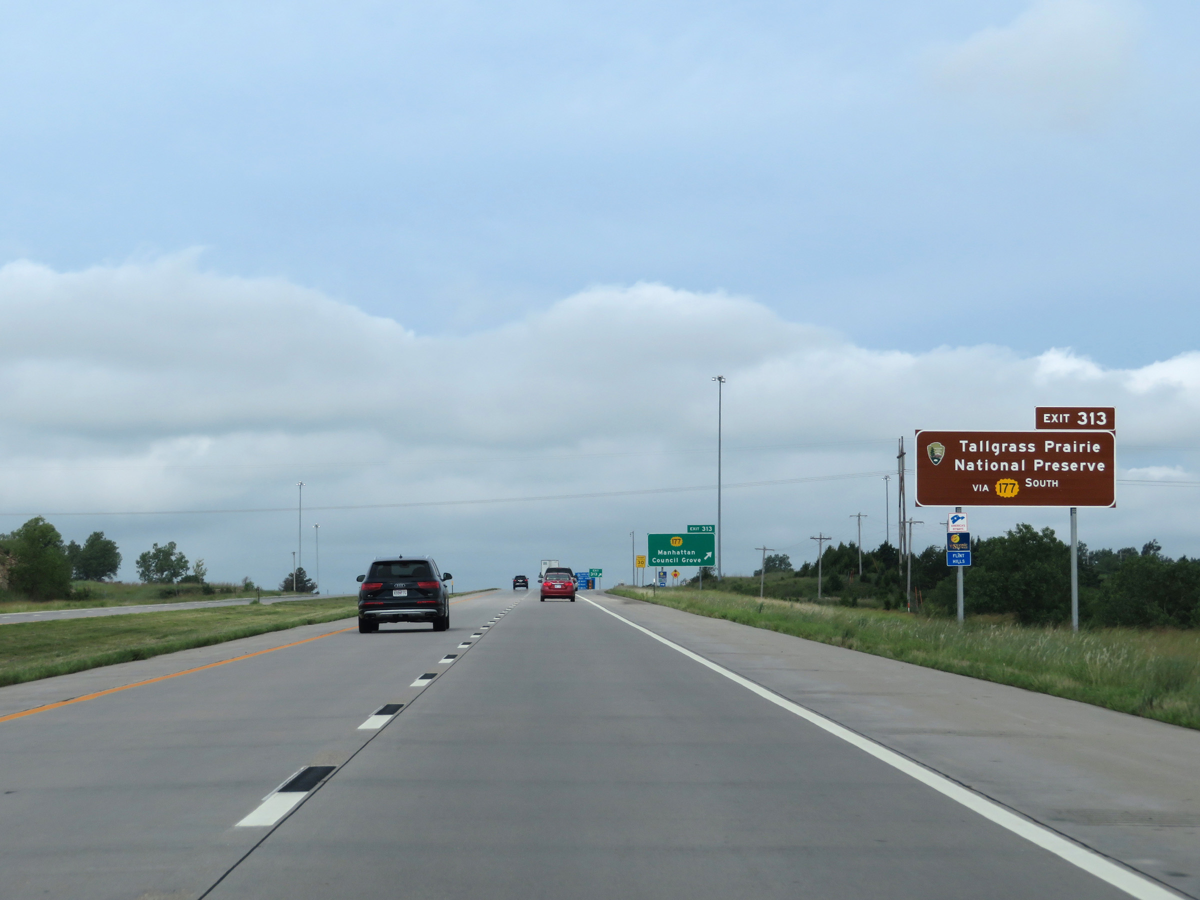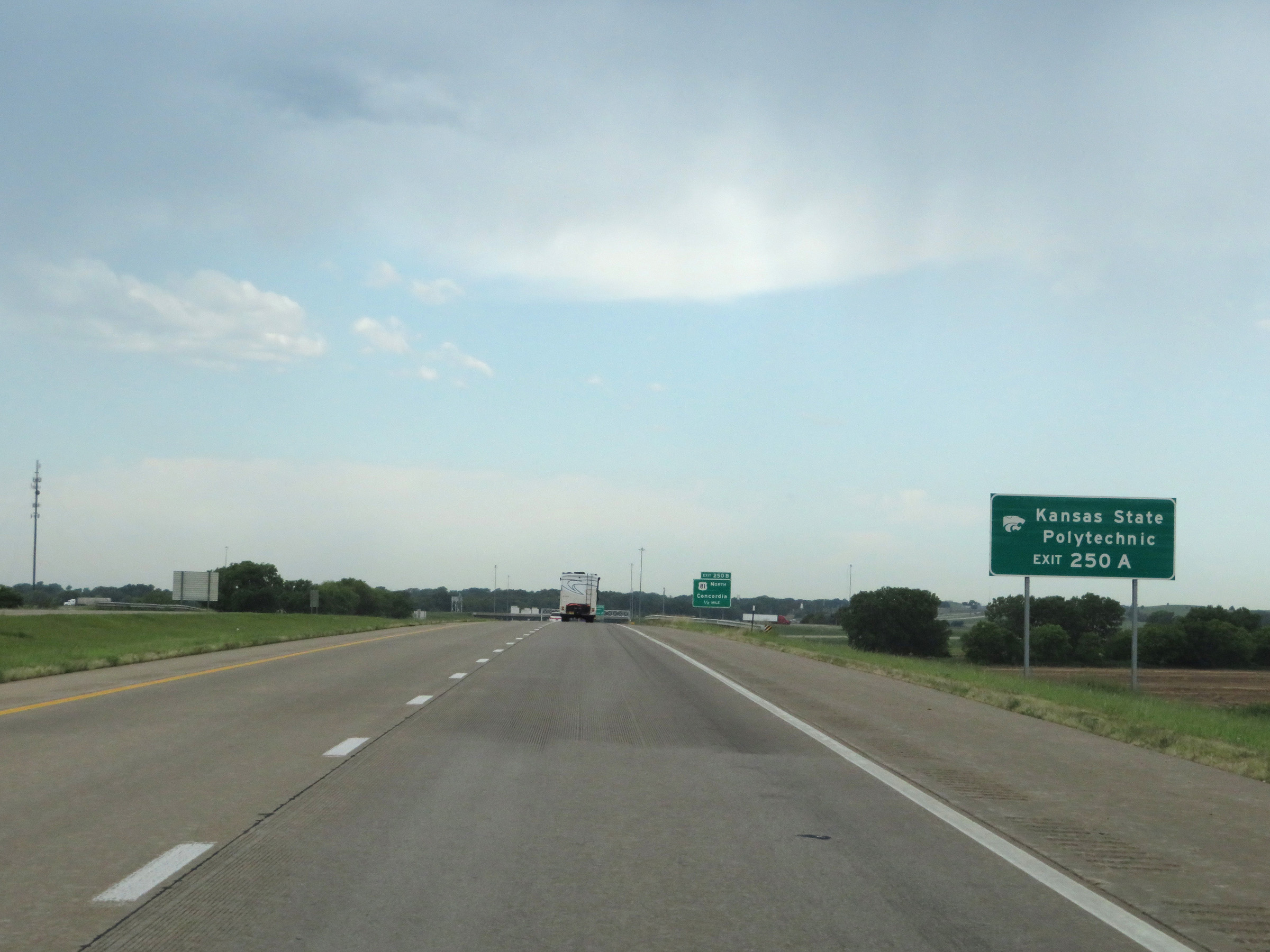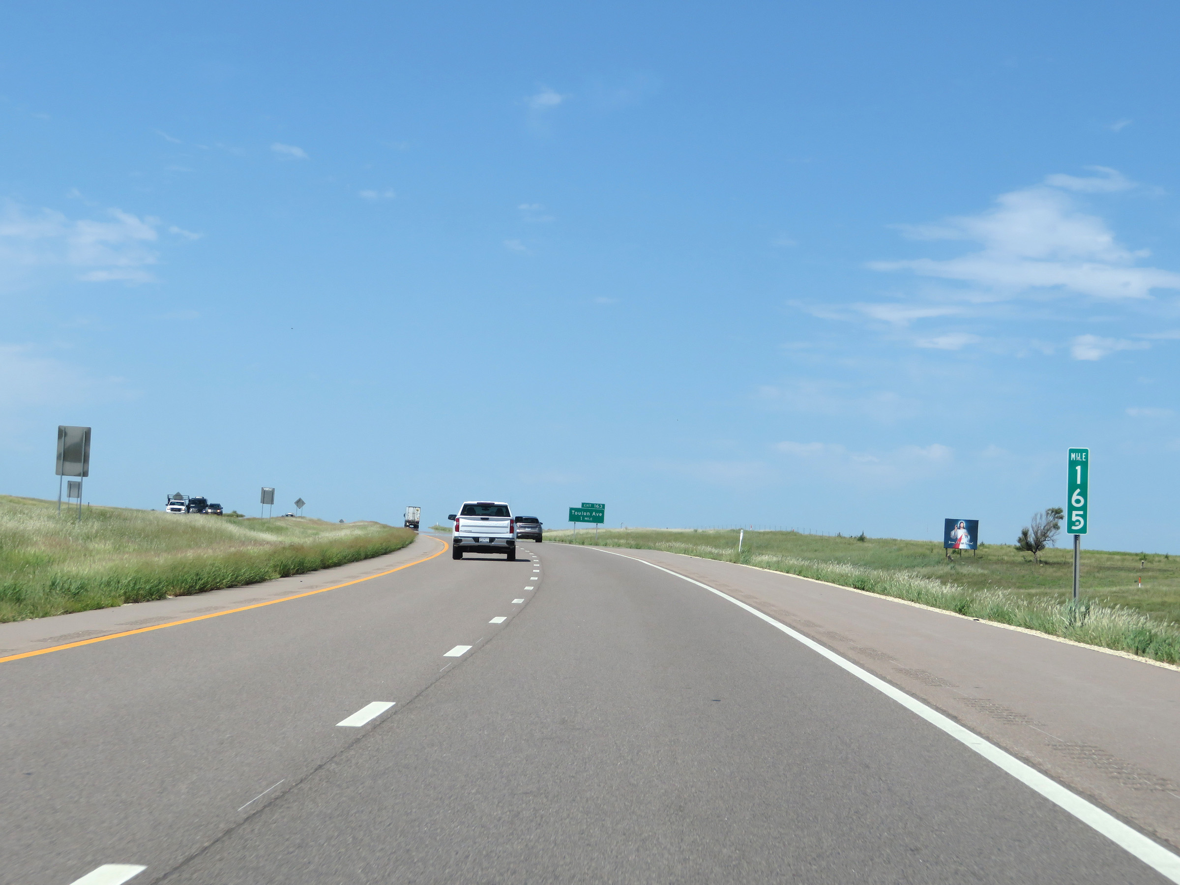 View on Interstate 70 West (Kansas Turnpike) at mile marker 216. (Photo taken 8/12/20). |