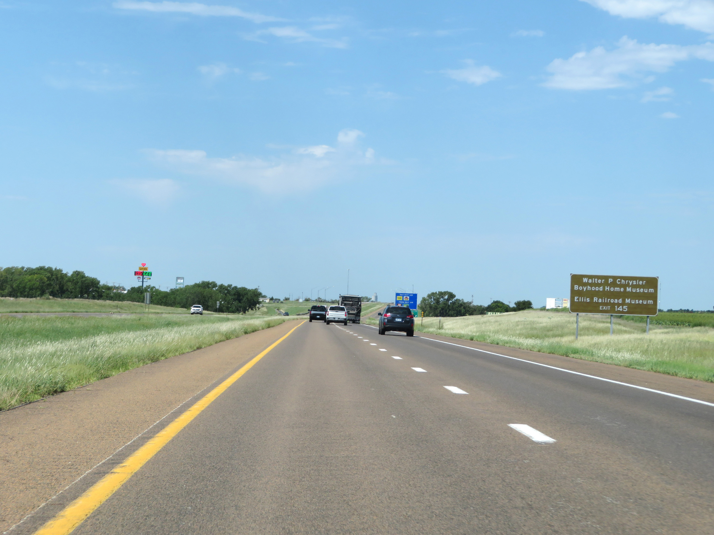 View on Interstate 70 West (Kansas Turnpike) at mile marker 225. (Photo taken 8/12/20). |