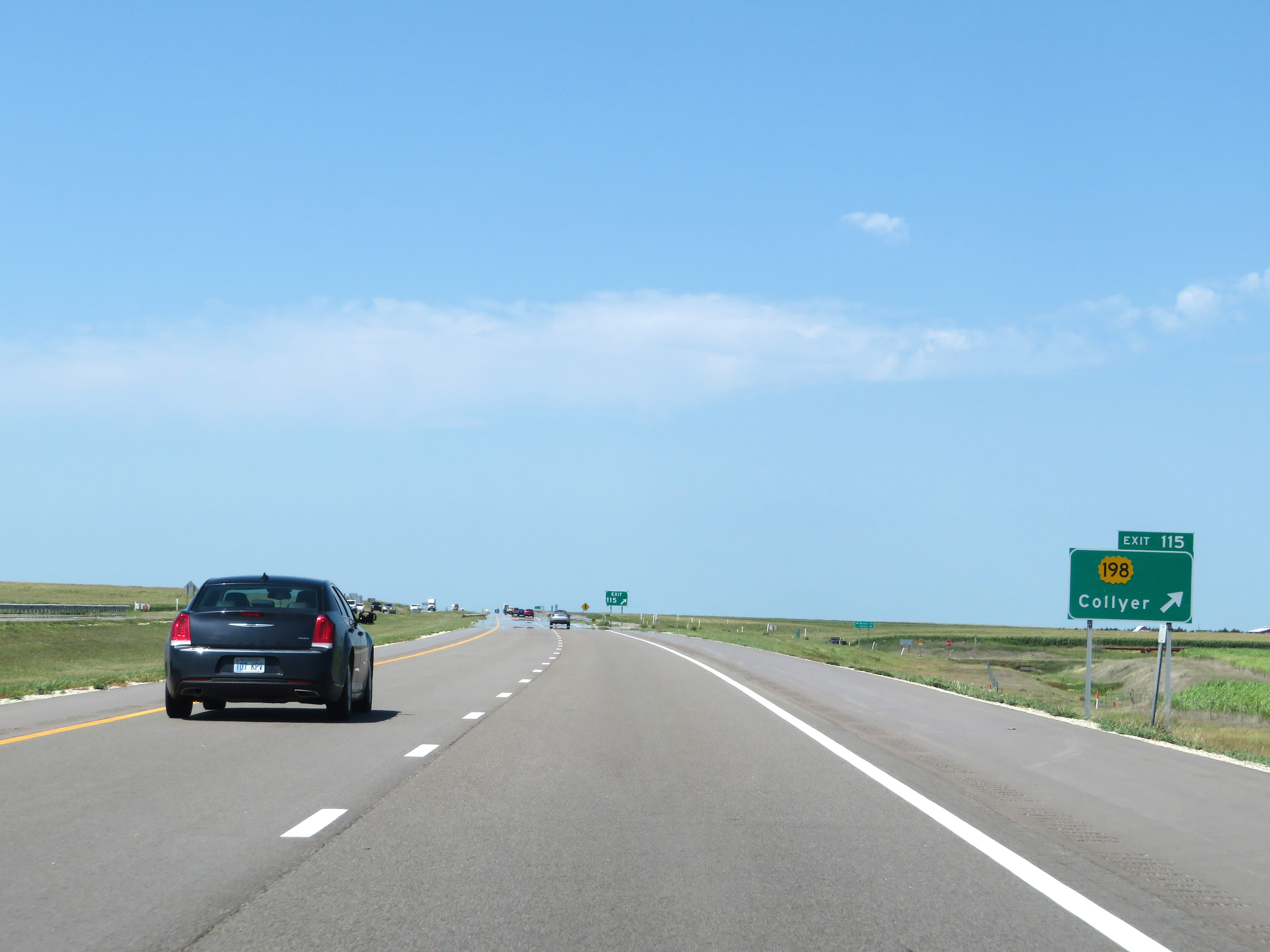 View on Interstate 70 West (Kansas Turnpike) at mile marker 205. (Photo taken 8/12/20). |