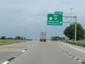 Approaching the Lawrence Service Area, this sign shows some of the services available there. The ramp to the Service Area will be on the left ahead. (Photo taken 8/12/20). |