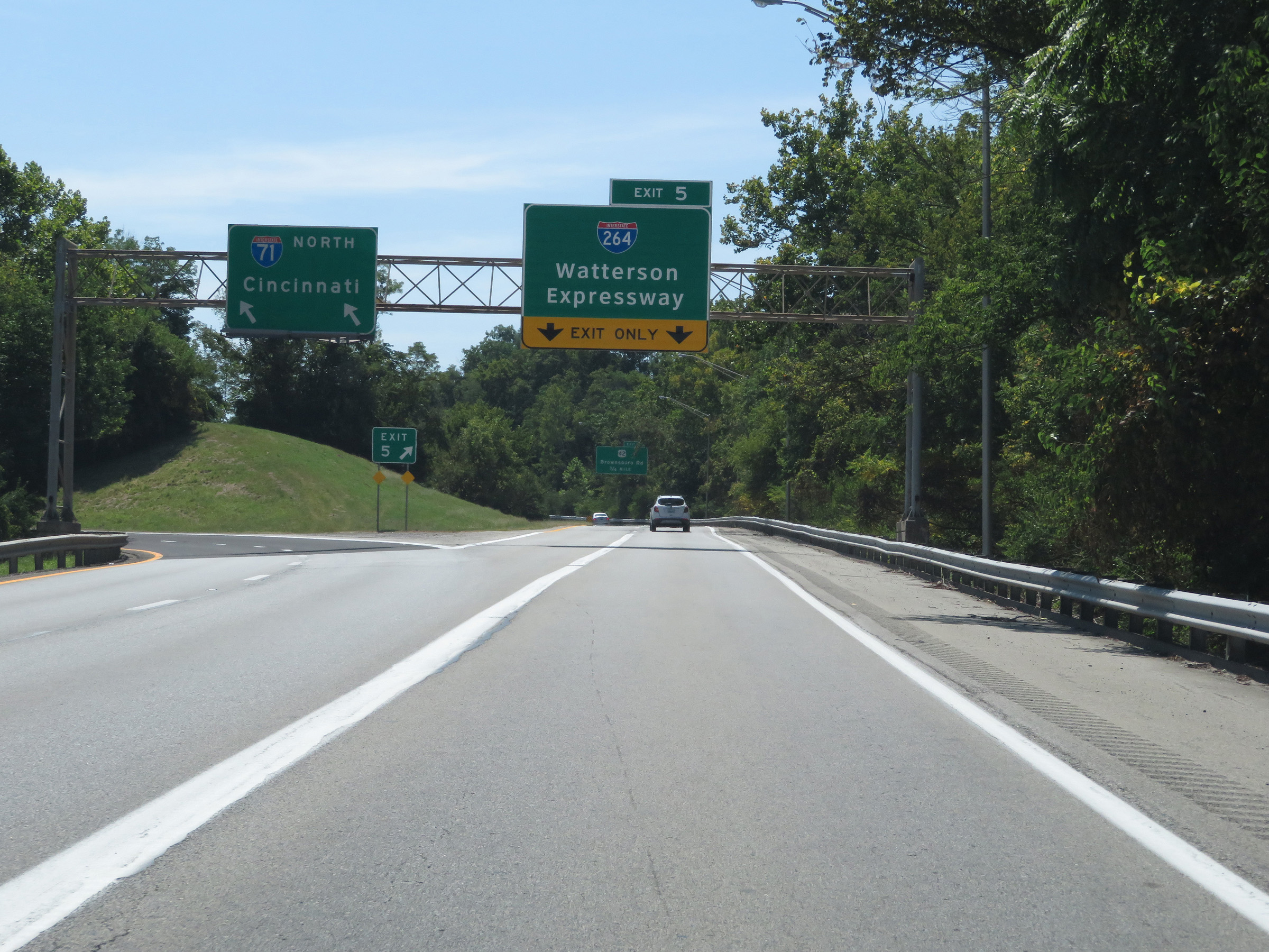 Merging onto Interstate 264 West from Interstate 71 North via Exit 5. (Photo taken 8/10/19). |