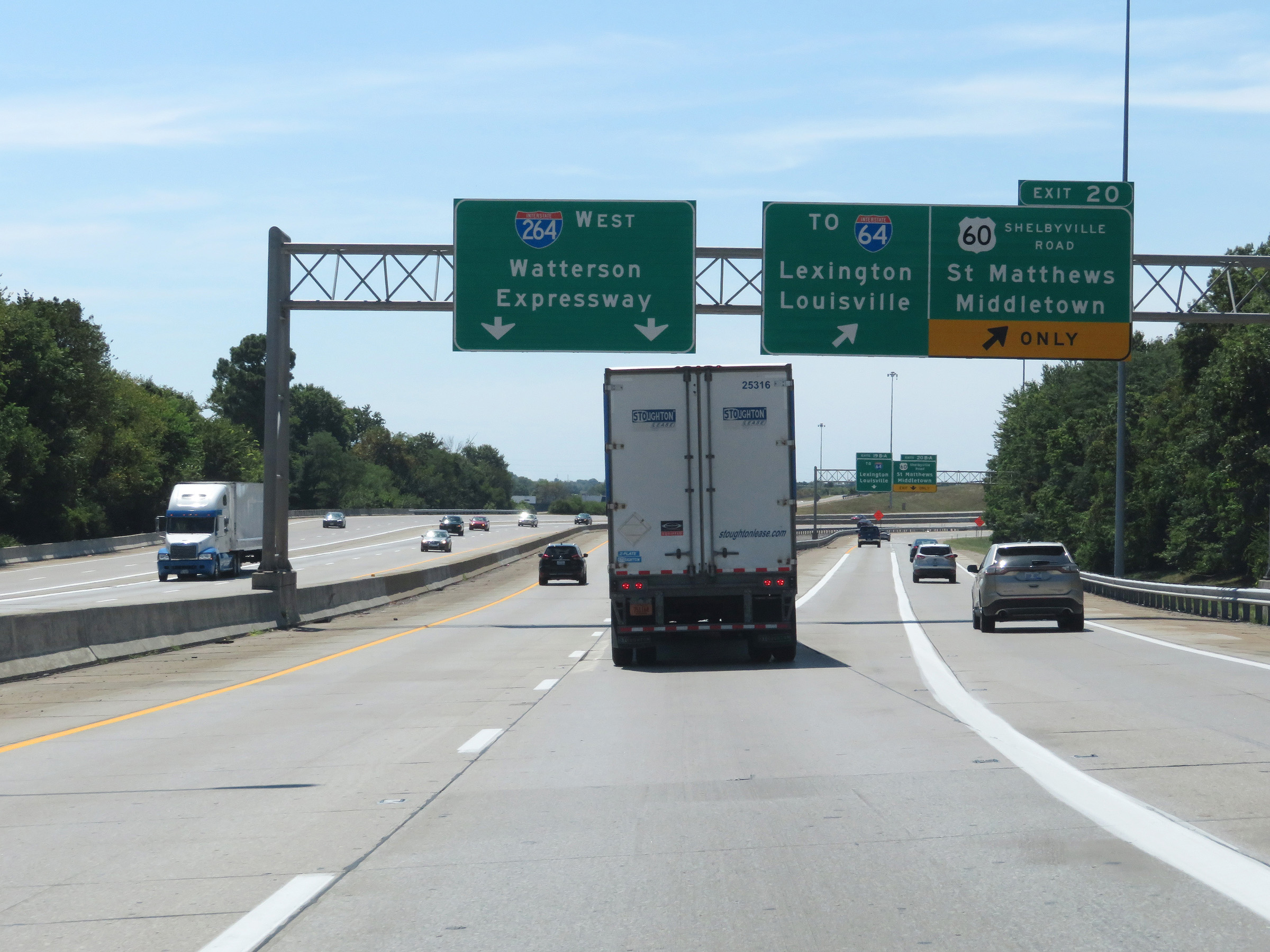 Interstate 264 West at Exit 20B: US 60 West - St. Matthews (Photo taken 8/10/19). |