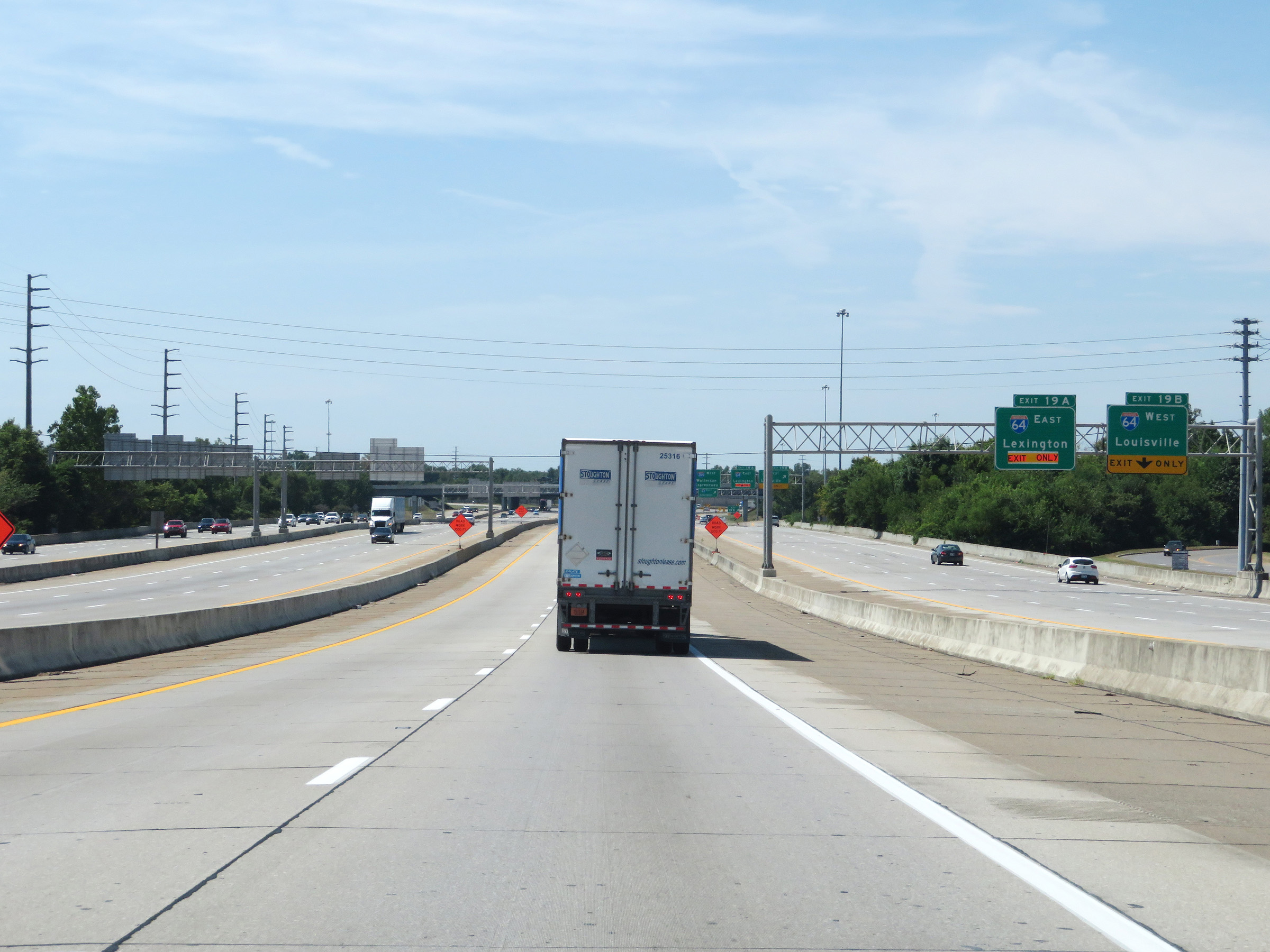 Interstate 264 West at Exit 19A: Interstate 64 East - Lexington (Photo taken 8/10/19). |