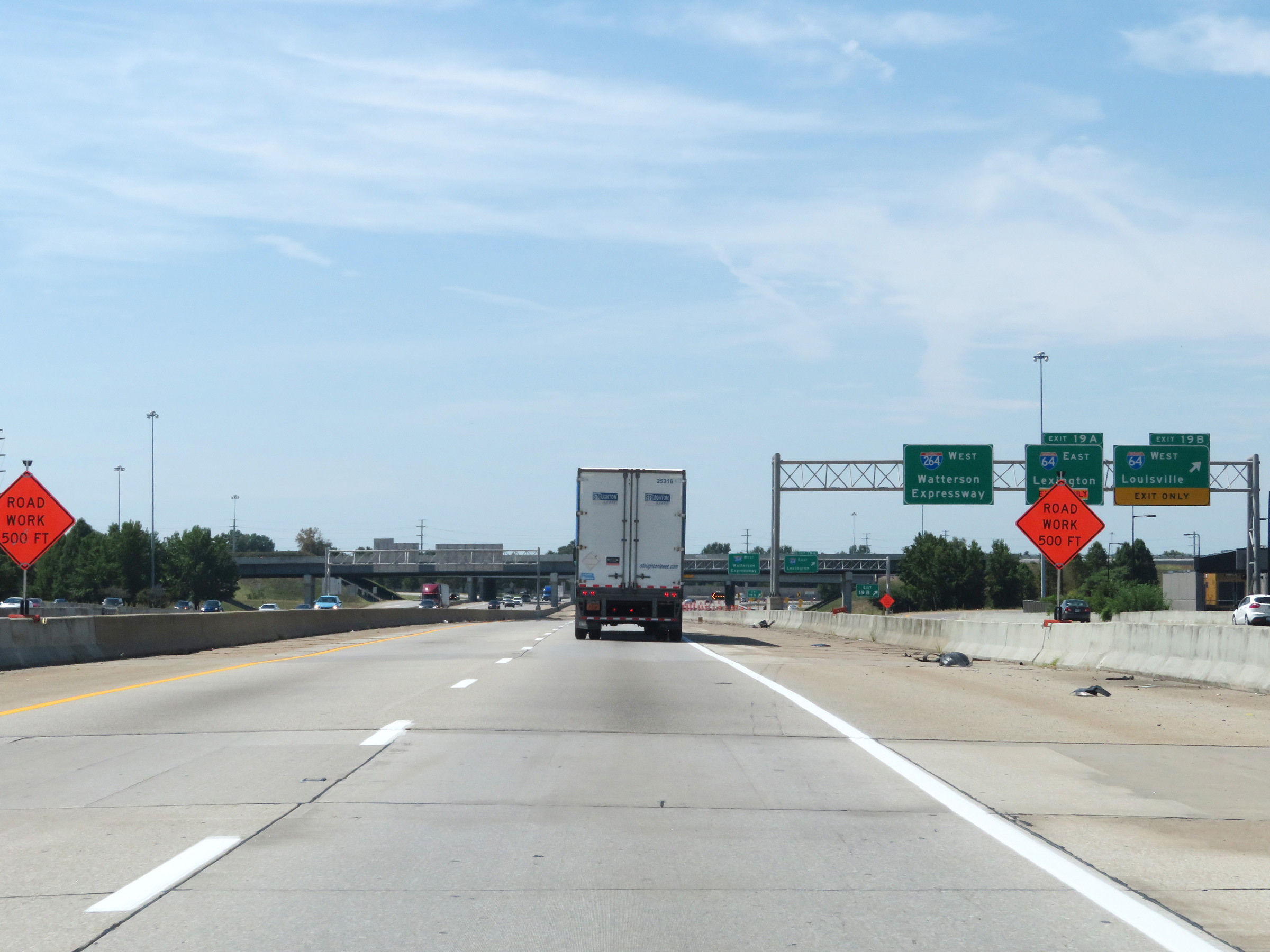 Interstate 264 West at Exits 20B-A: US 60 - St. Matthews / Middletown; Exits 19B-A: Interstate 64 - Lexington / Louisville (Photo taken 8/10/19). |