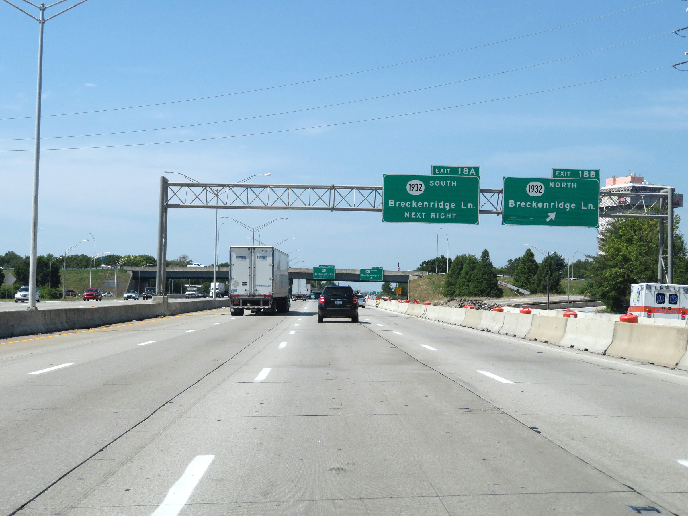 Interstate 264 West at Exit 18B: KY 1932 North - Breckenridge Ln (Photo taken 8/10/19). |