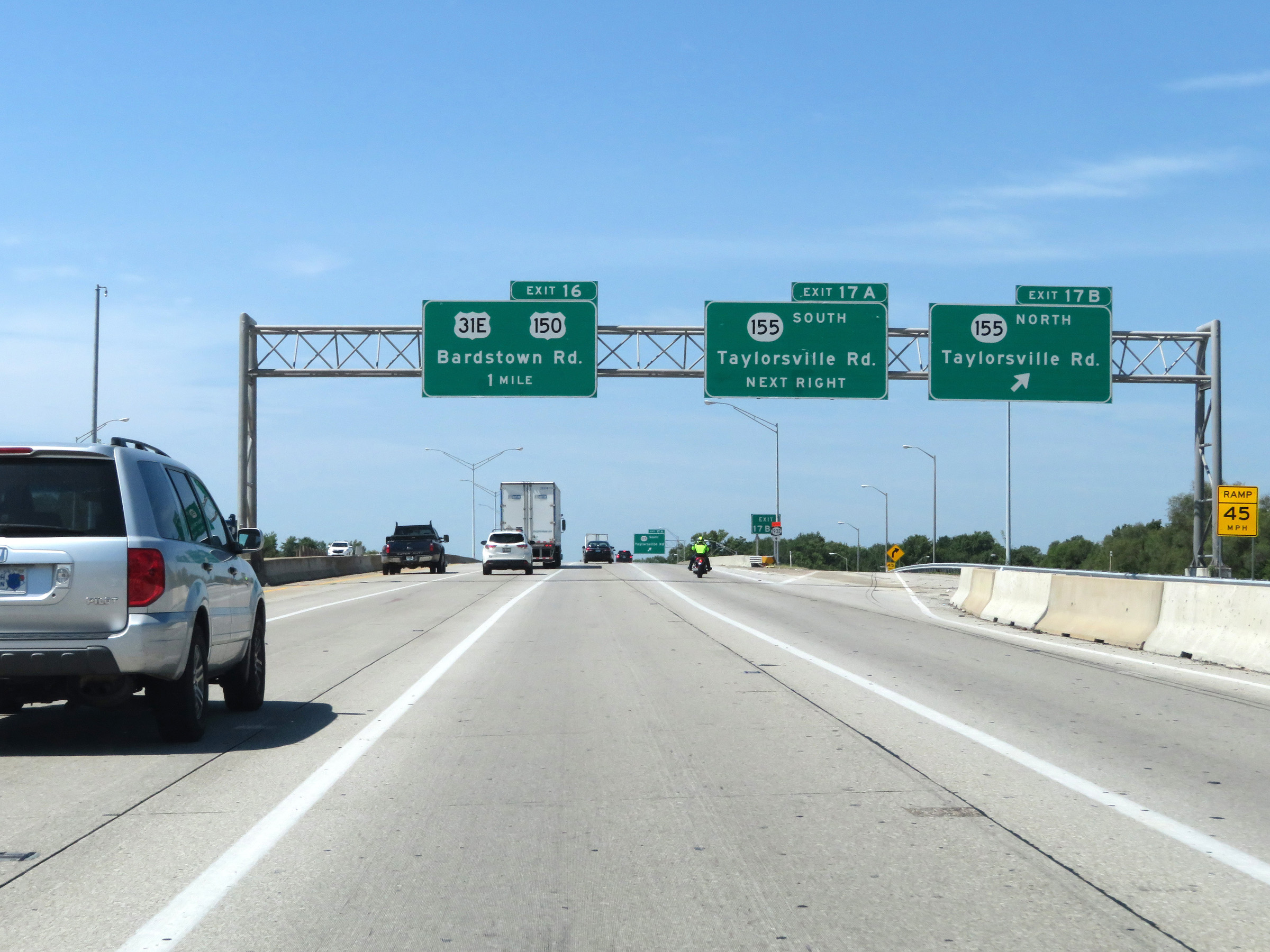 Interstate 264 West at Exit 17B: KY 155 North - Taylorsville Rd (Photo taken 8/10/19). |
