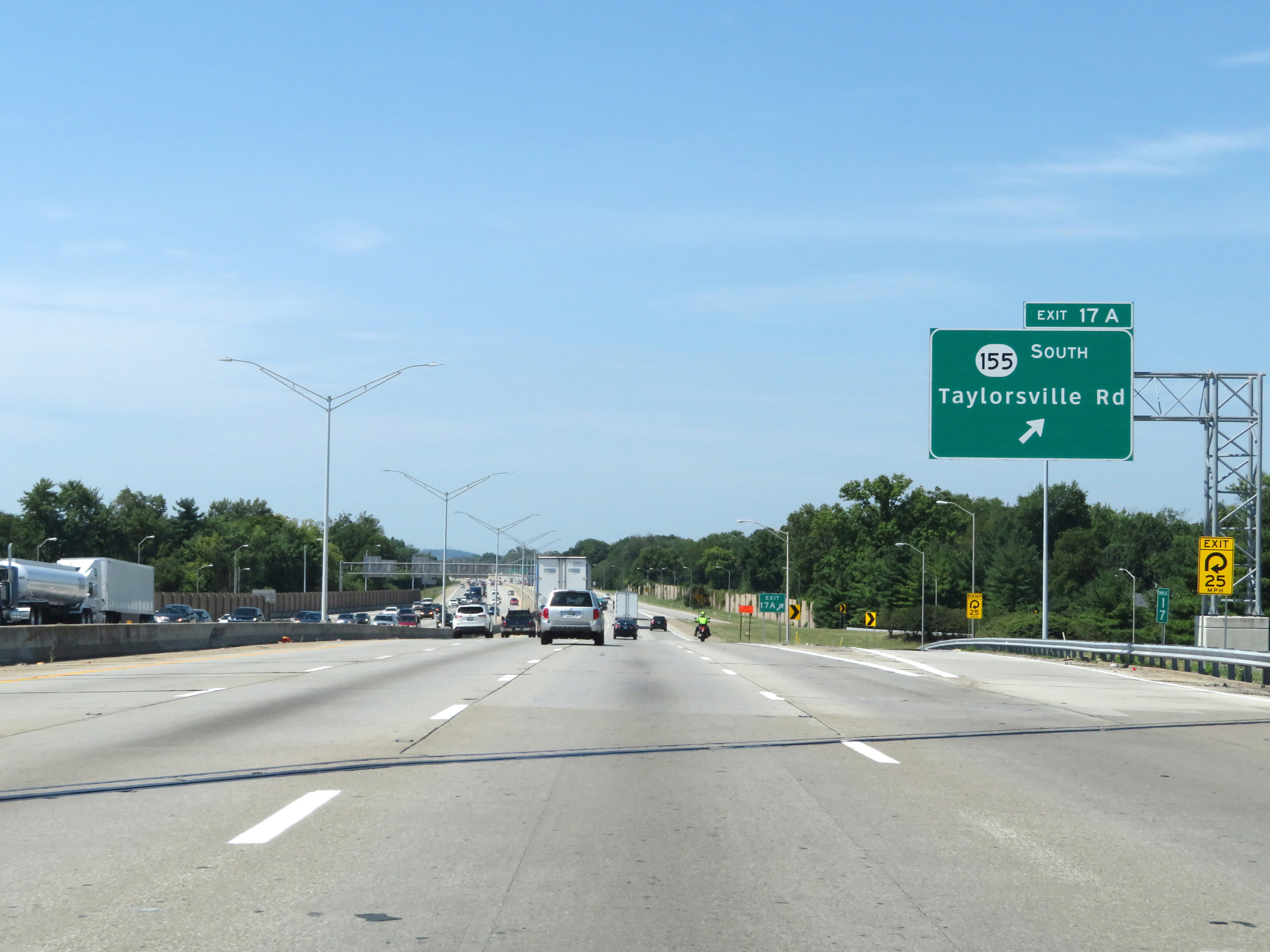 Interstate 264 West at Exit 17A: KY 155 South - Taylorsville Rd (Photo taken 8/10/19). |