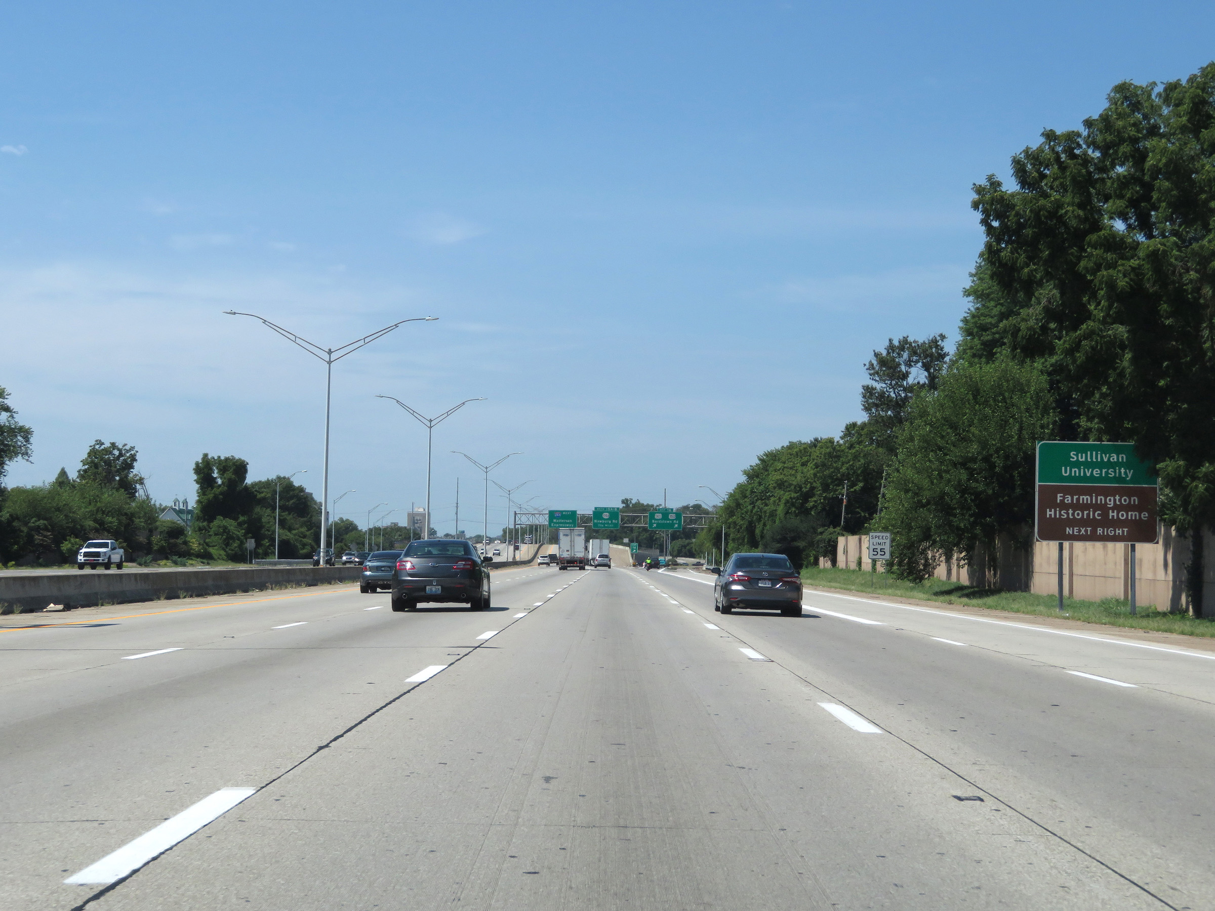 Take Exit 16 to Sullivan University and Farmington Historic Home. The speed limit remains 55 mph on Interstate 264 West. (Photo taken 8/10/19). |