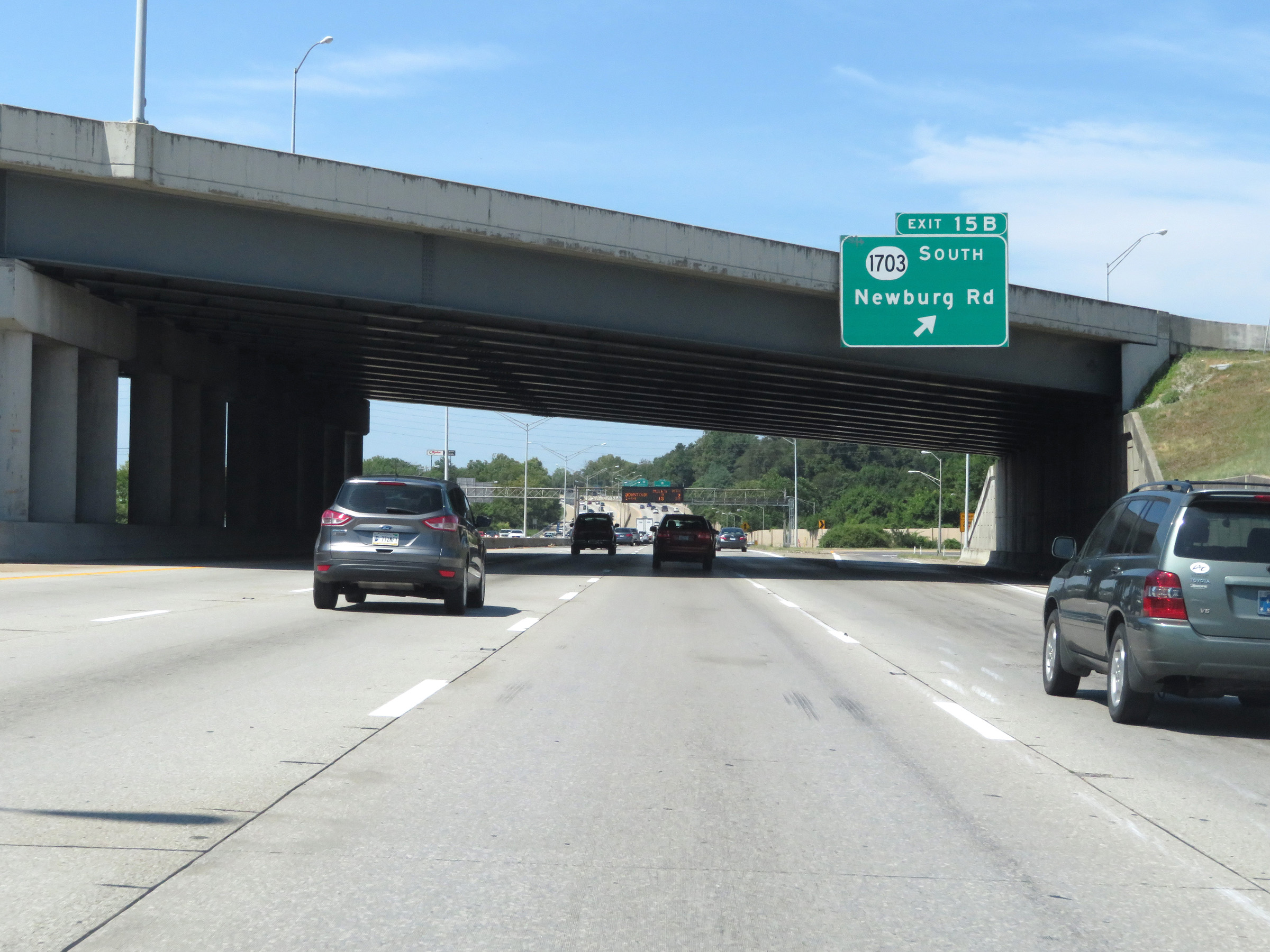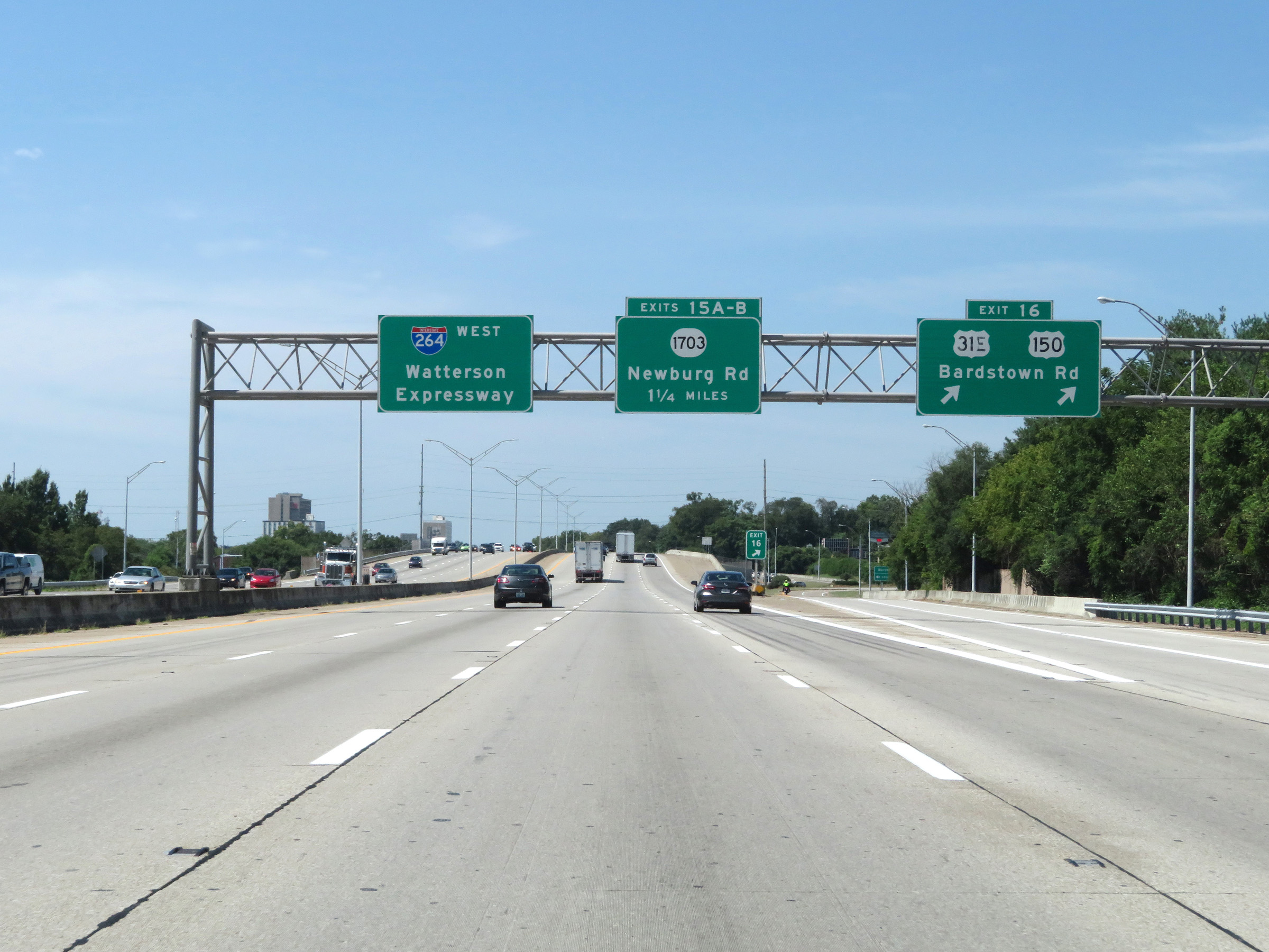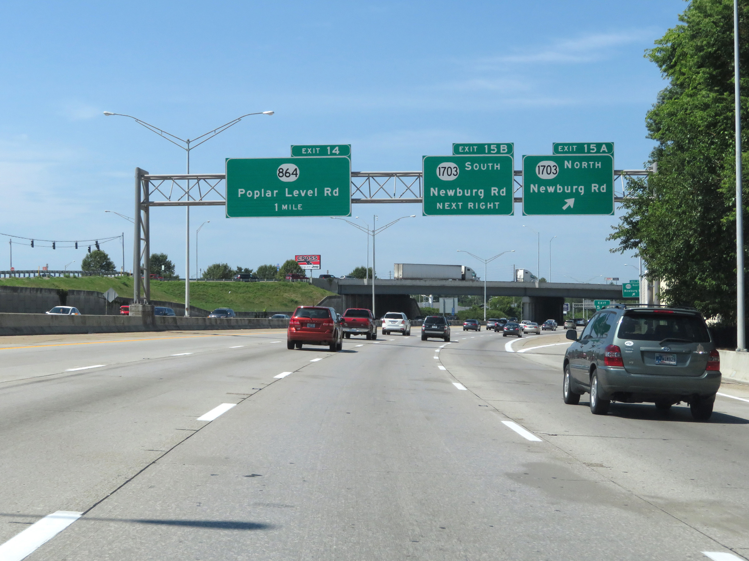 Interstate 264 West at Exit 15A: KY 1703 North - Newburg Rd (Photo taken 8/10/19). |