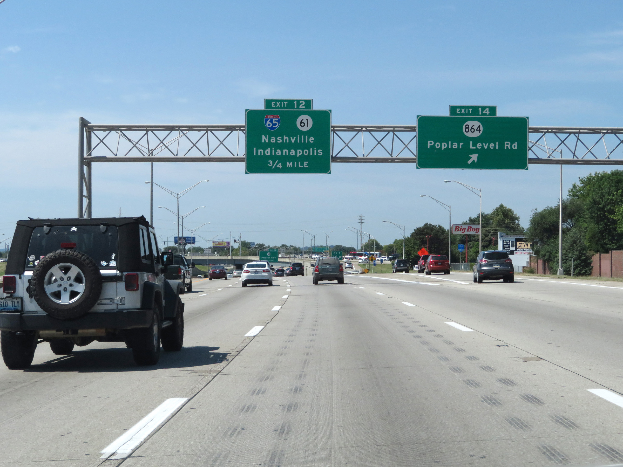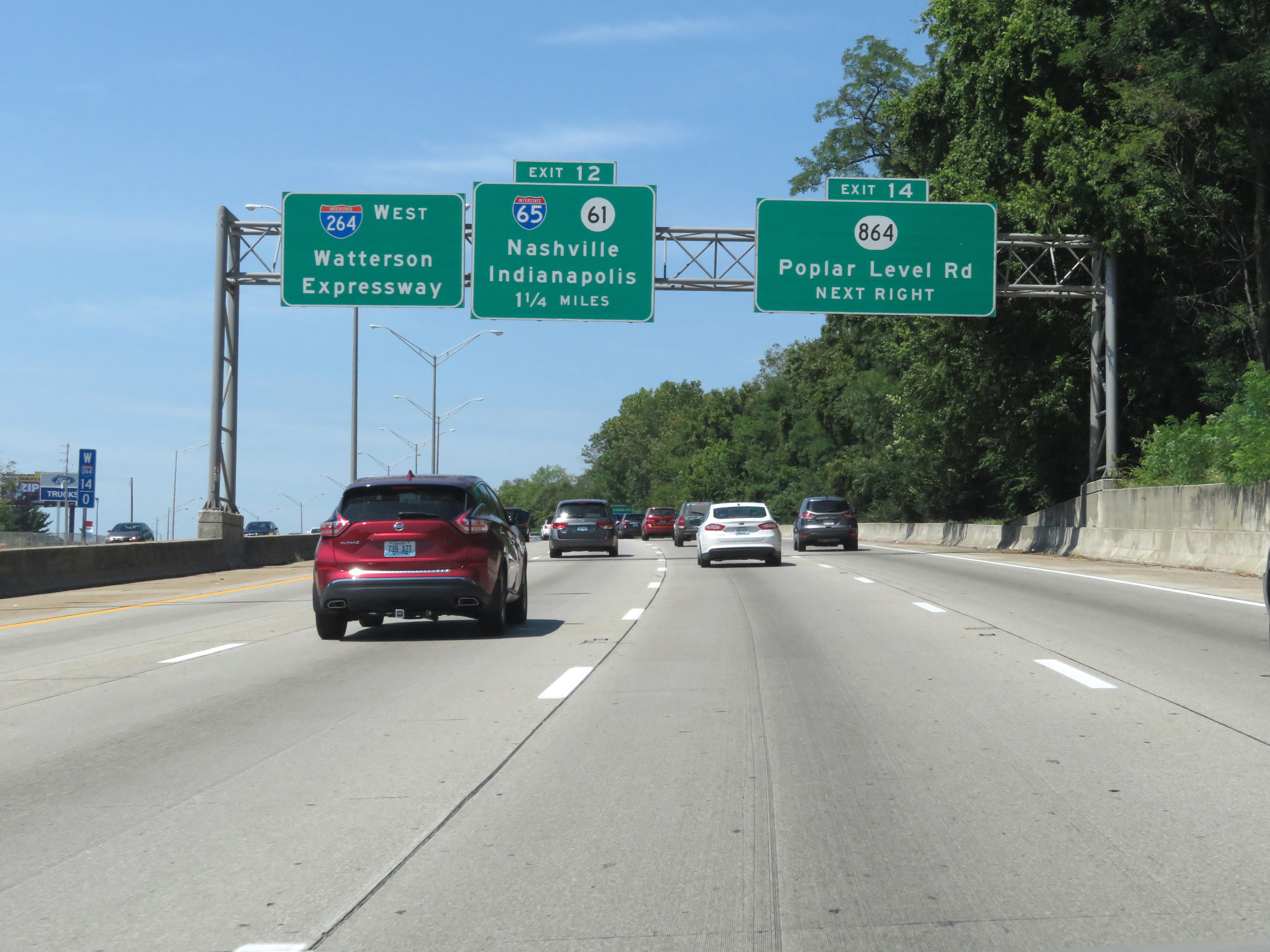 Interstate 264 West at Exit 12: Interstate 65 / KY 61 - Nashville / Indianapolis / Preston Hwy (Photo taken 8/10/19). |