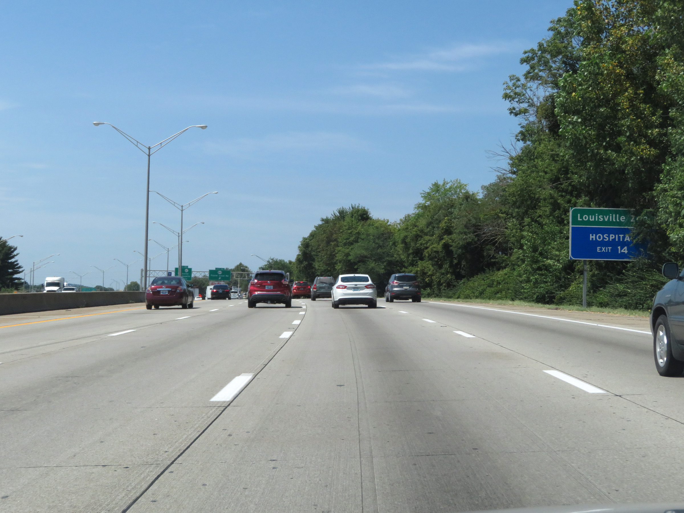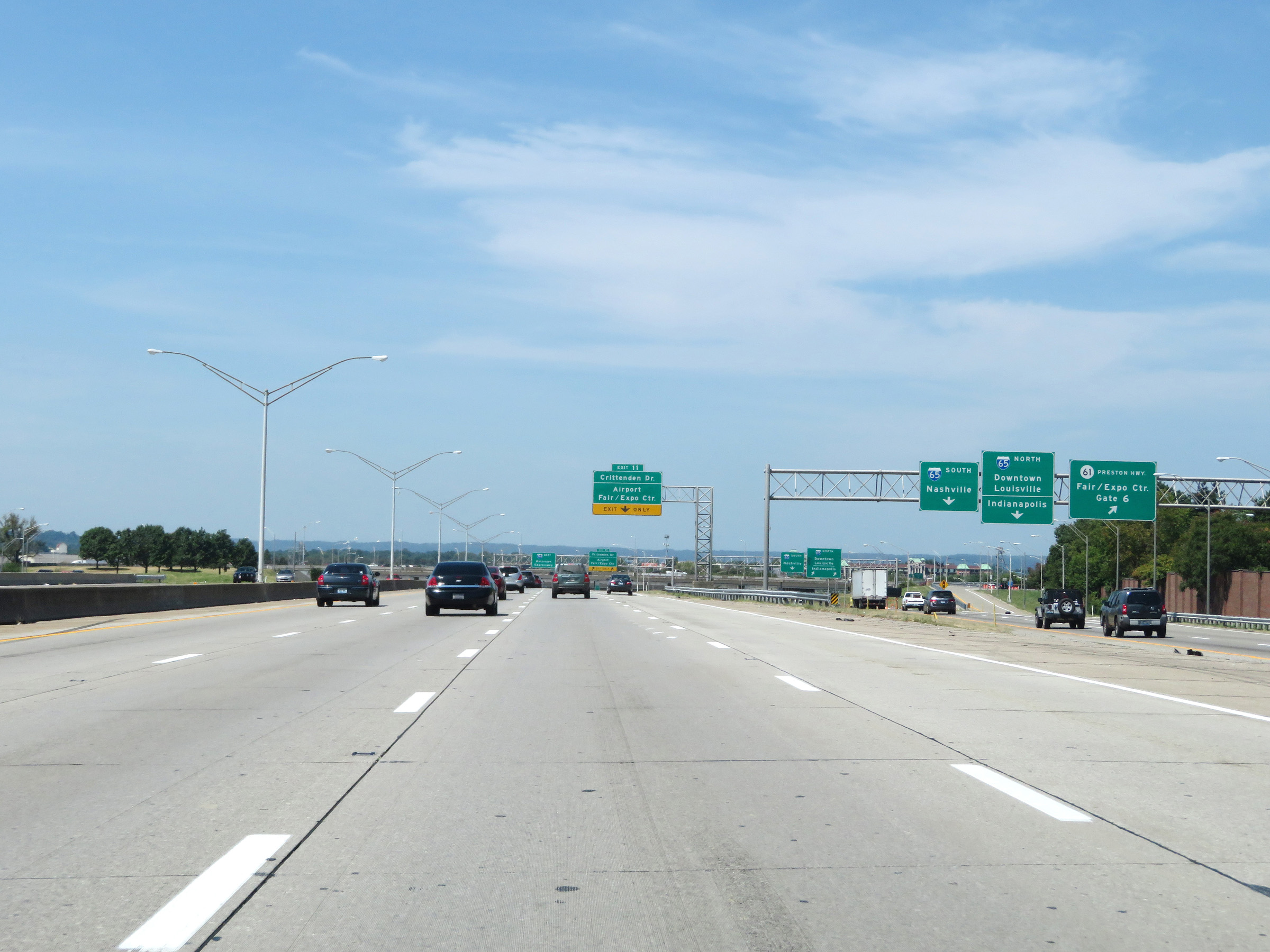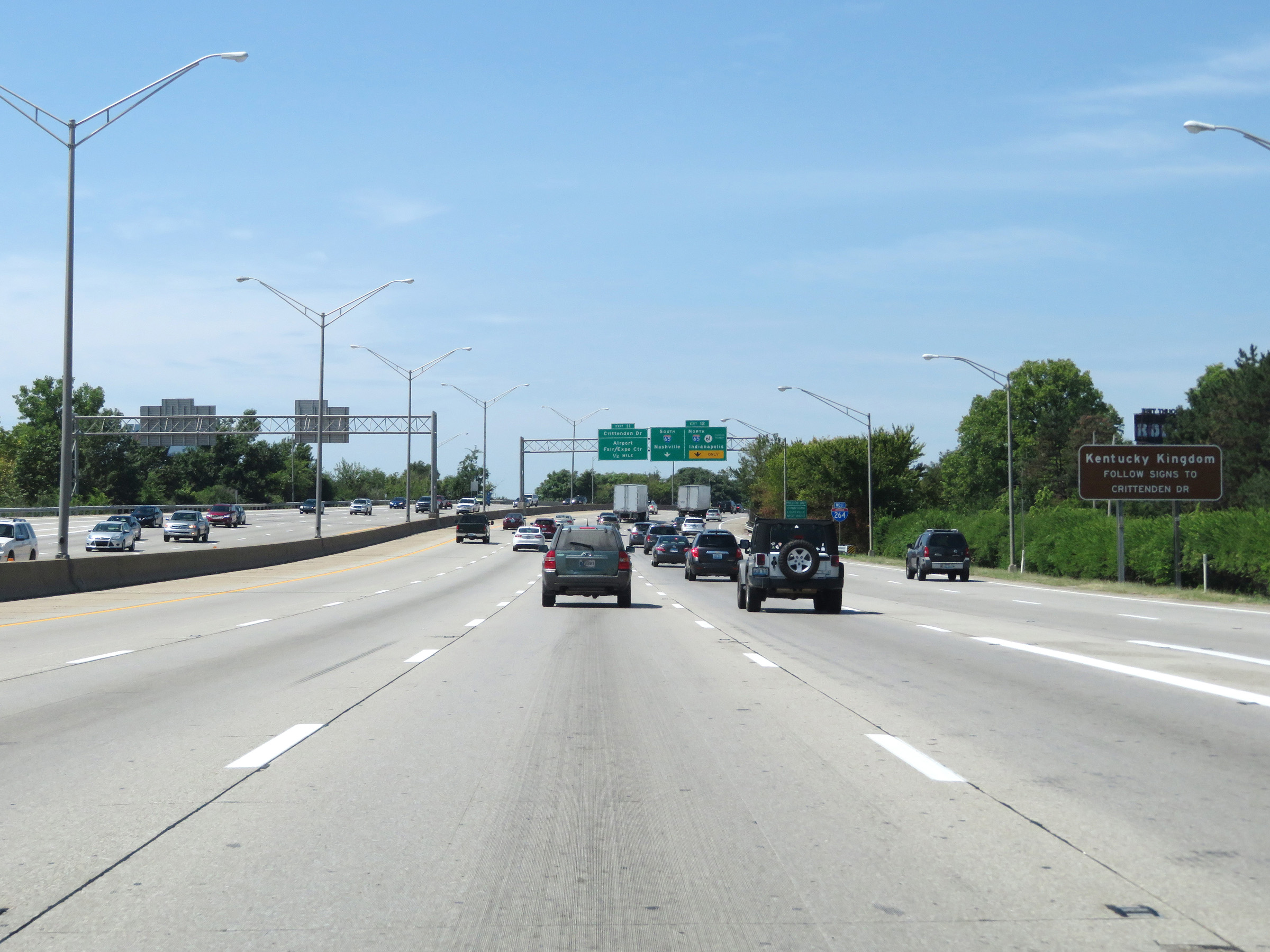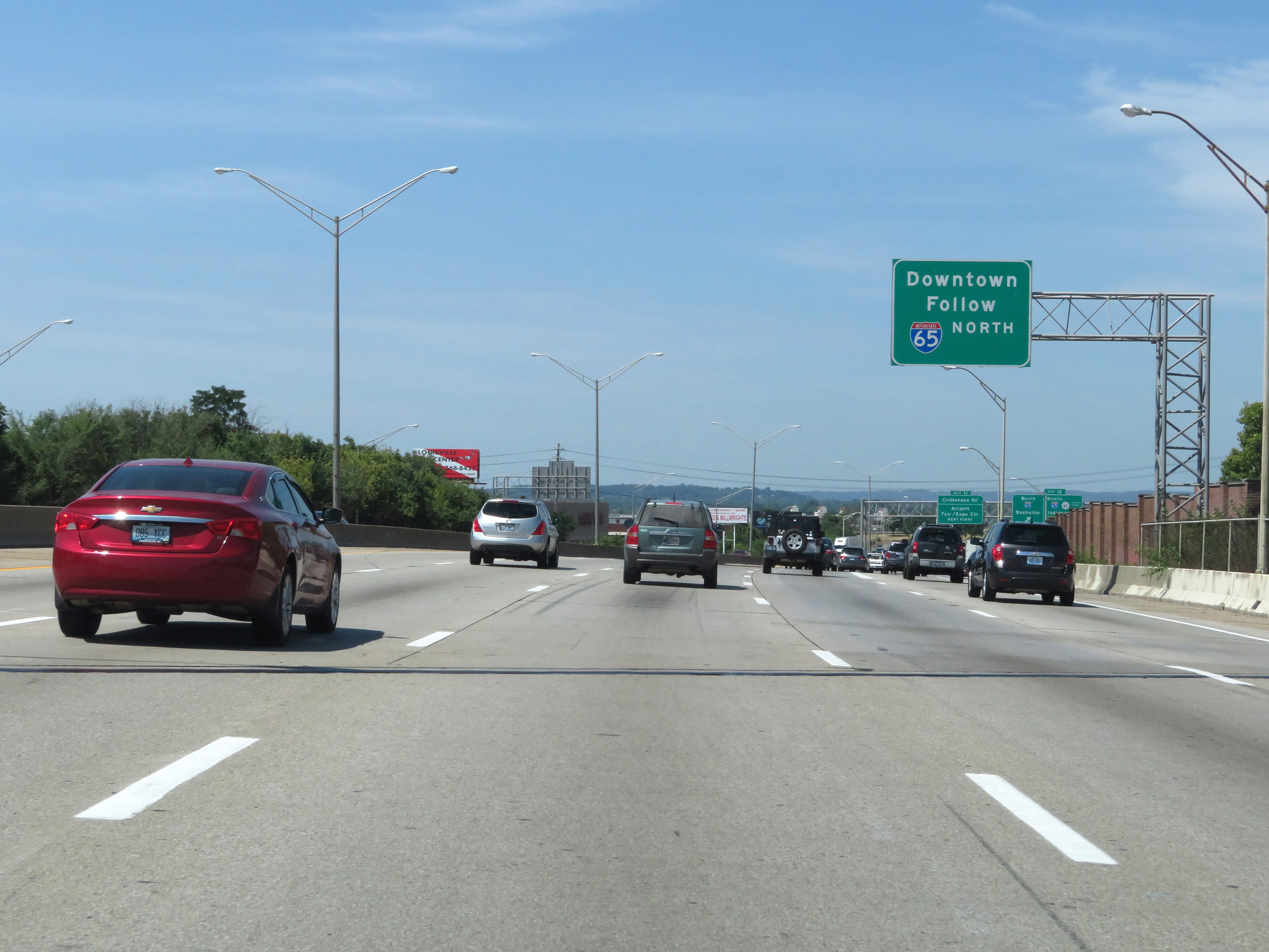 Follow Interstate 65 North via Exit 12 to access downtown Louisville. (Photo taken 8/10/19). |