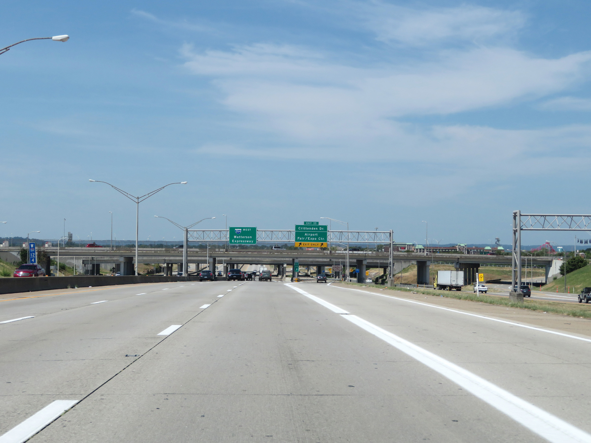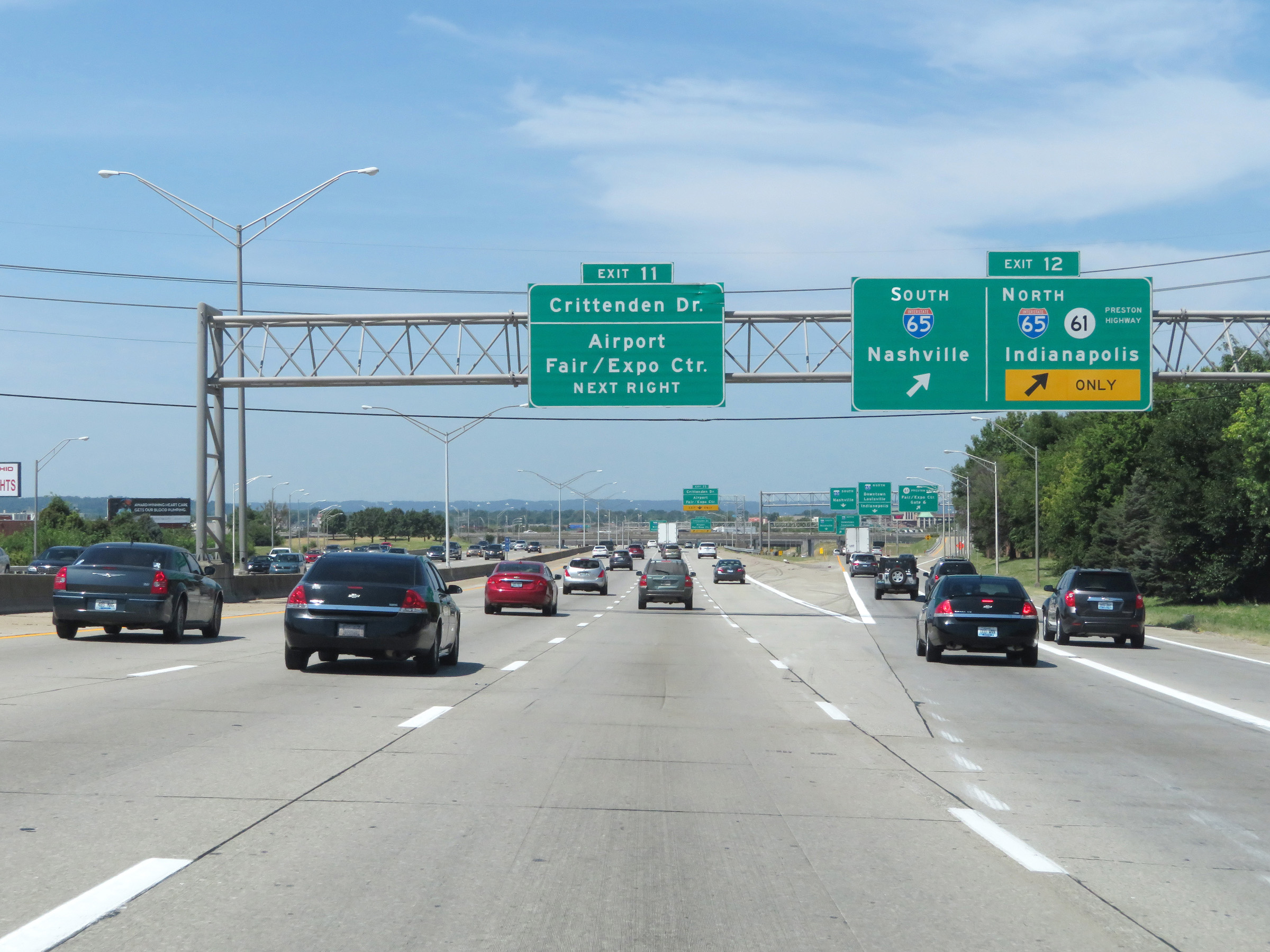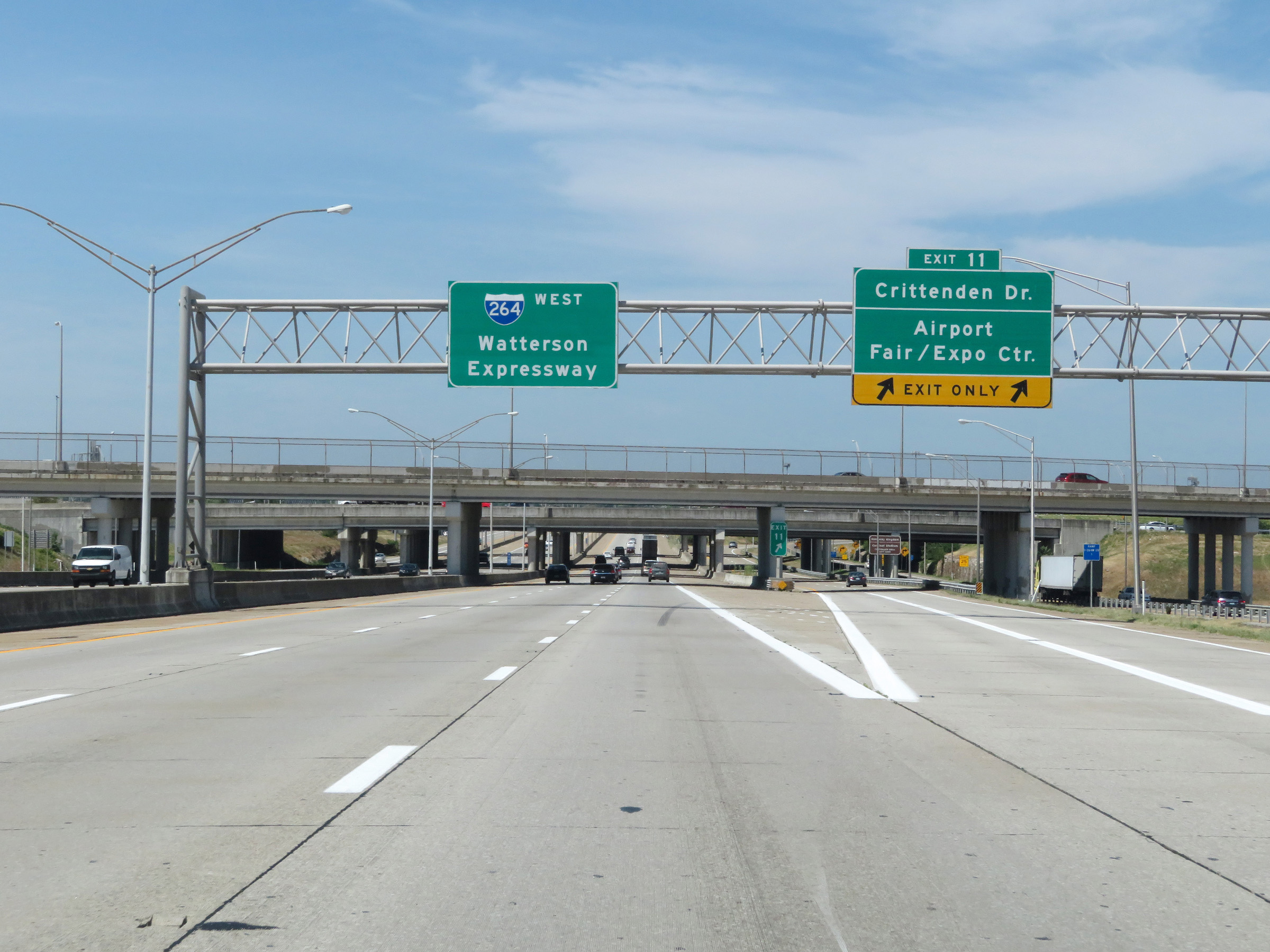 Interstate 264 West at Exit 11: Crittenden Dr / Airport / Fair/Expo Center (Photo taken 8/10/19). |
