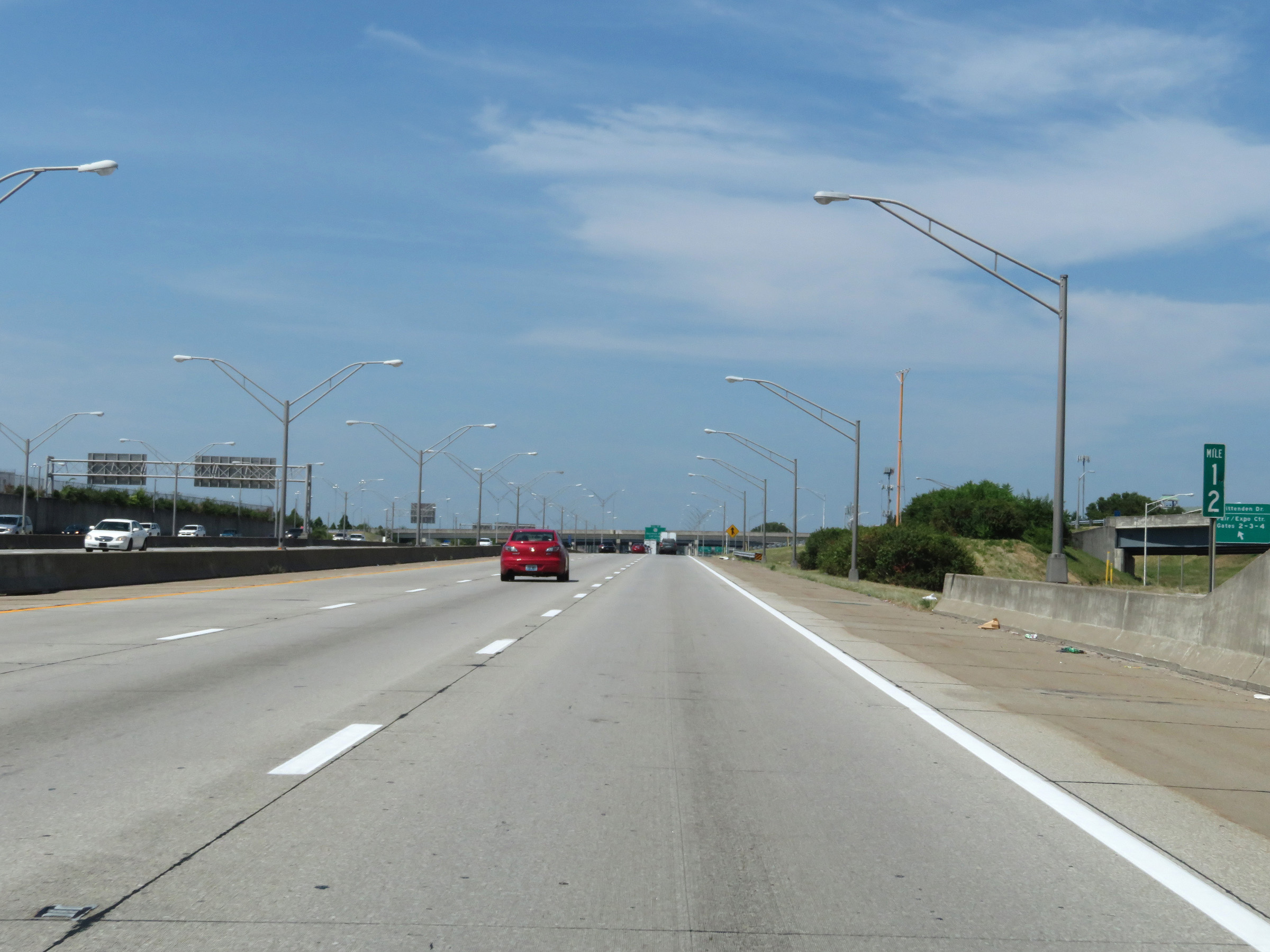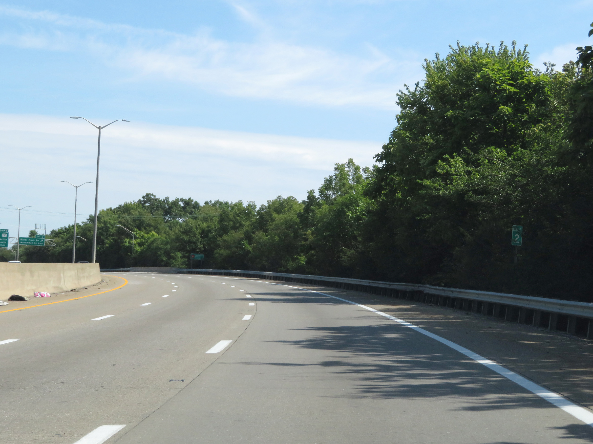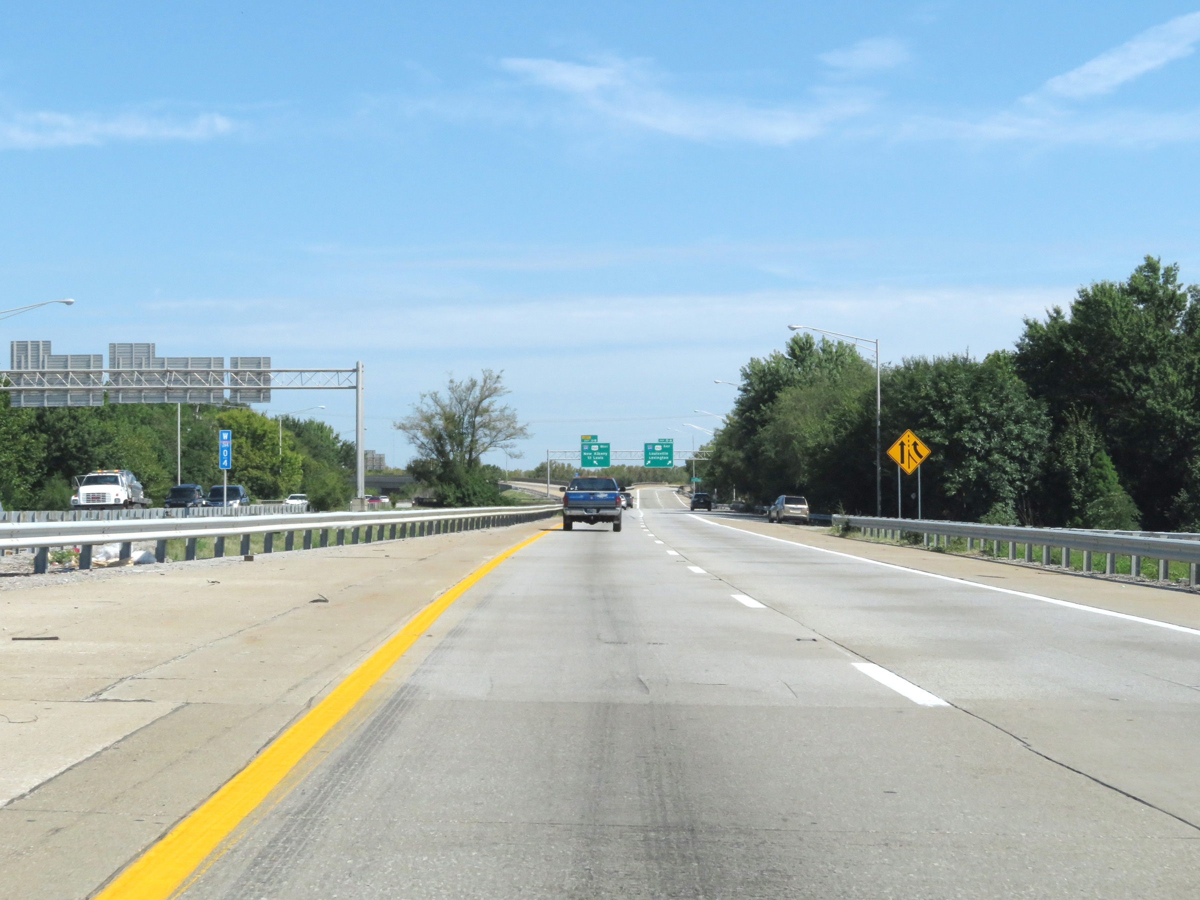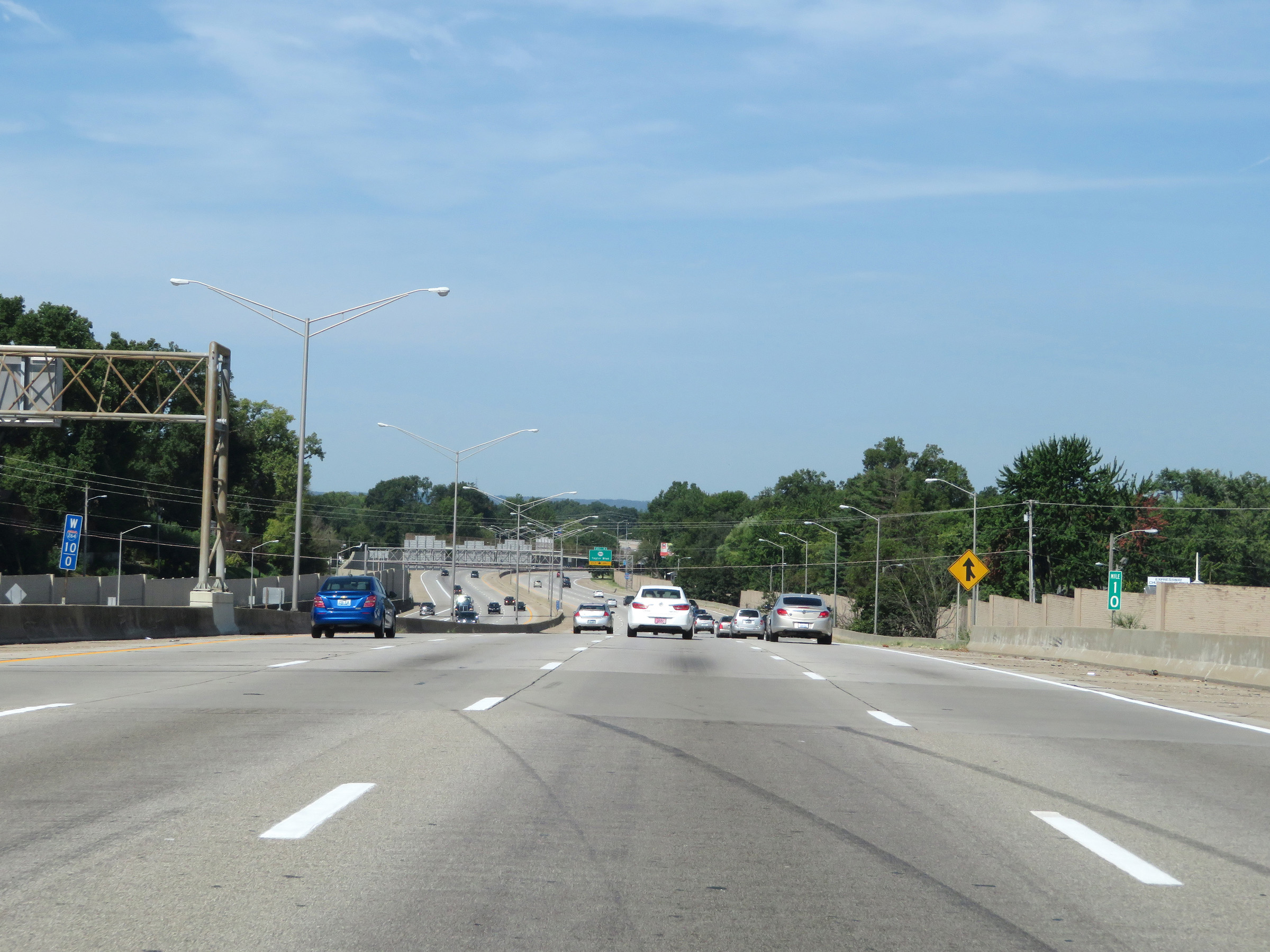 View on Interstate 264 West at mile marker 0.4, approaching the junction of Interstate 64 and the western terminus of I-264. (Photo taken 8/10/19). |