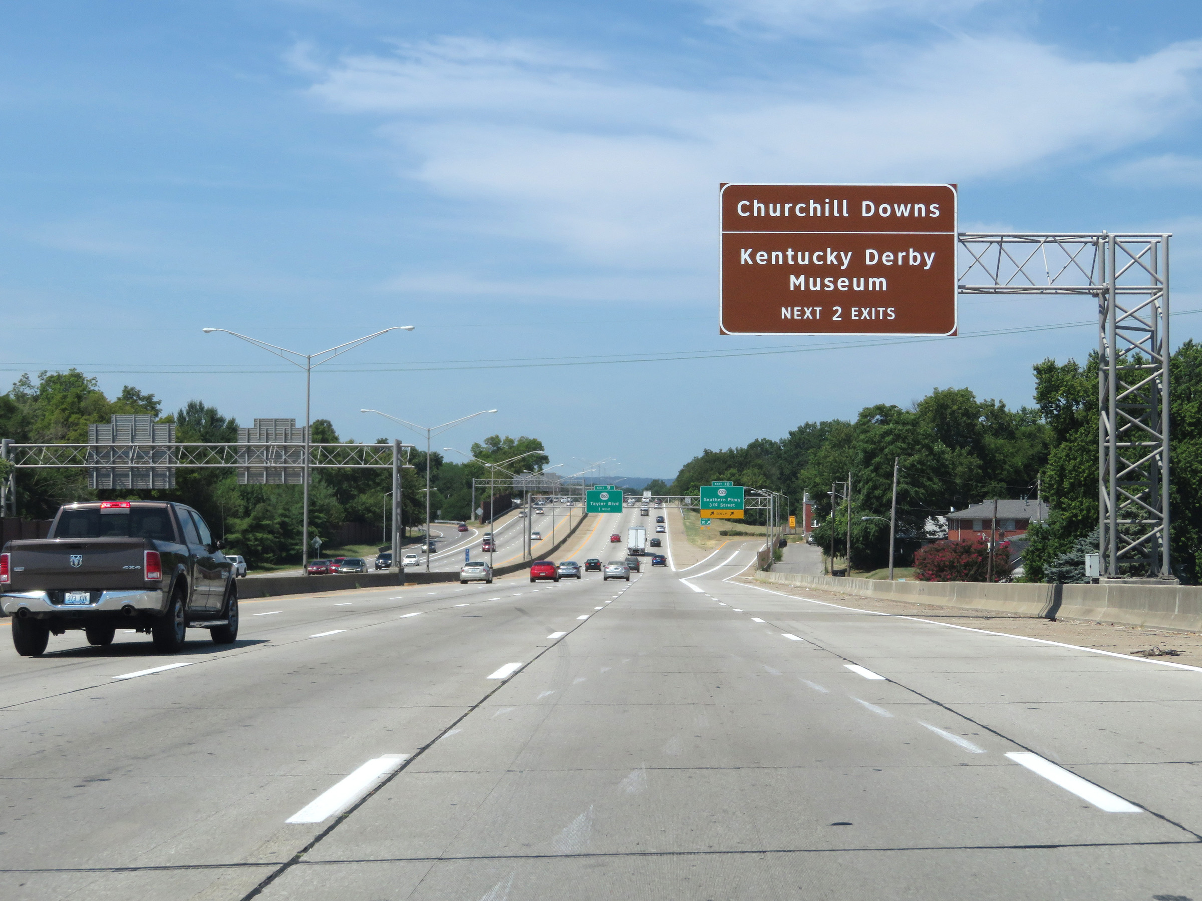 Take either of the next 2 exits to Churchill Downs and the Kentucky Derby Museum. (Photo taken 8/10/19). |