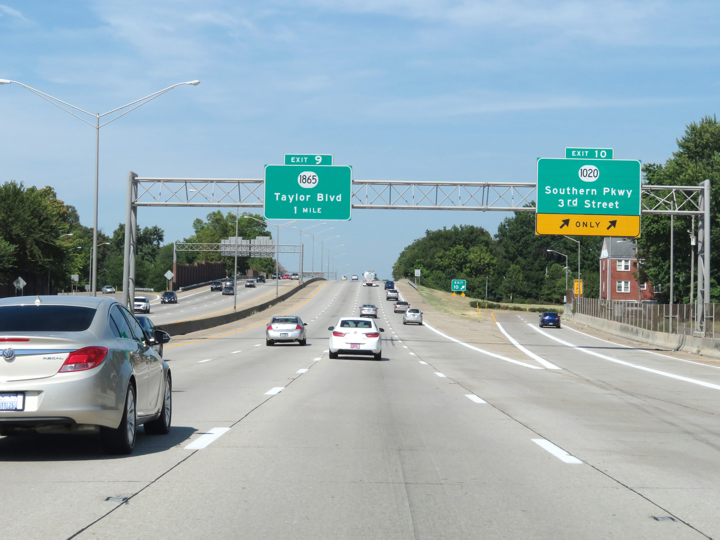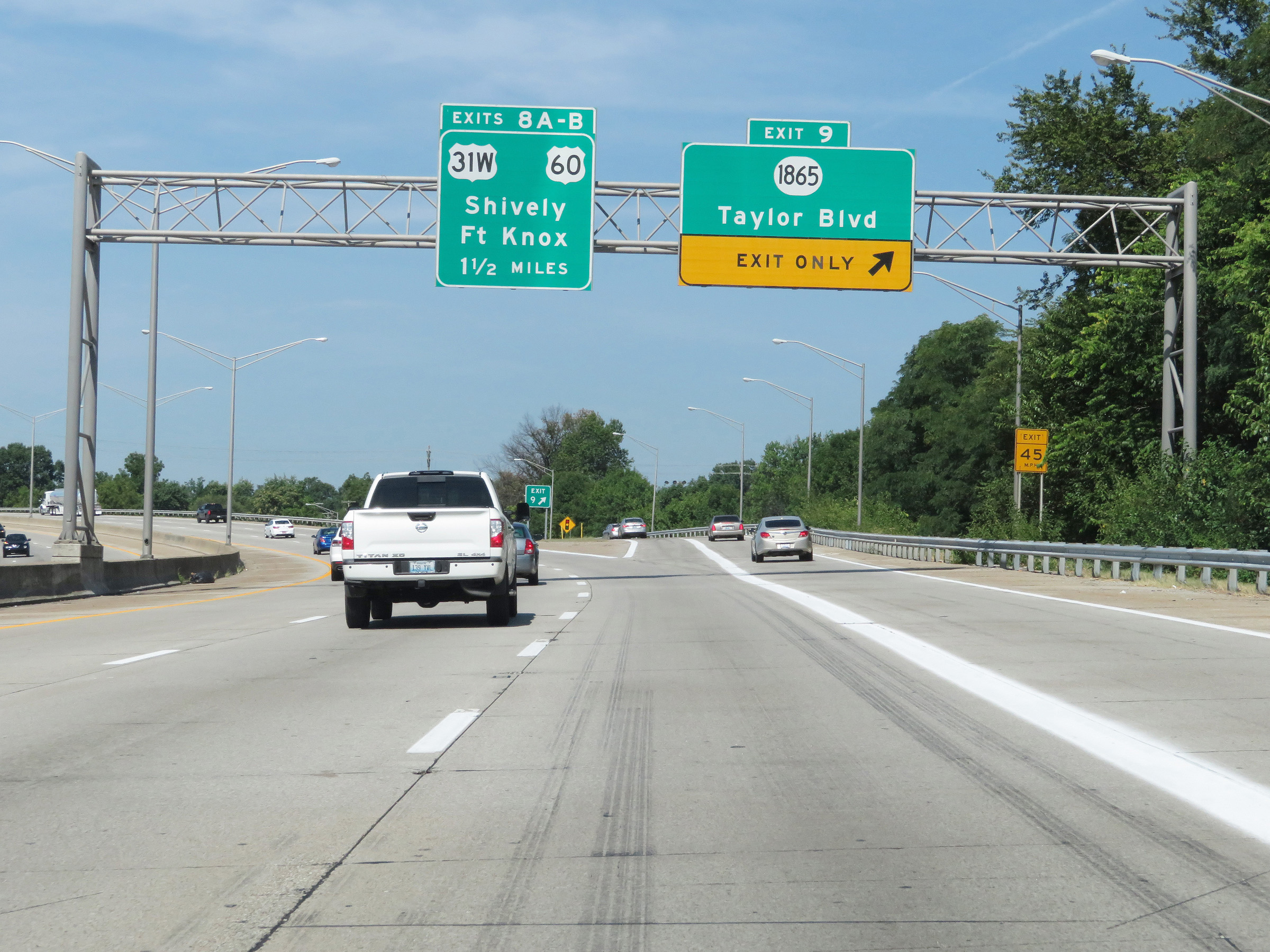 Interstate 264 West at Exit 9: KY 1865 - Taylor Blvd (Photo taken 8/10/19). |