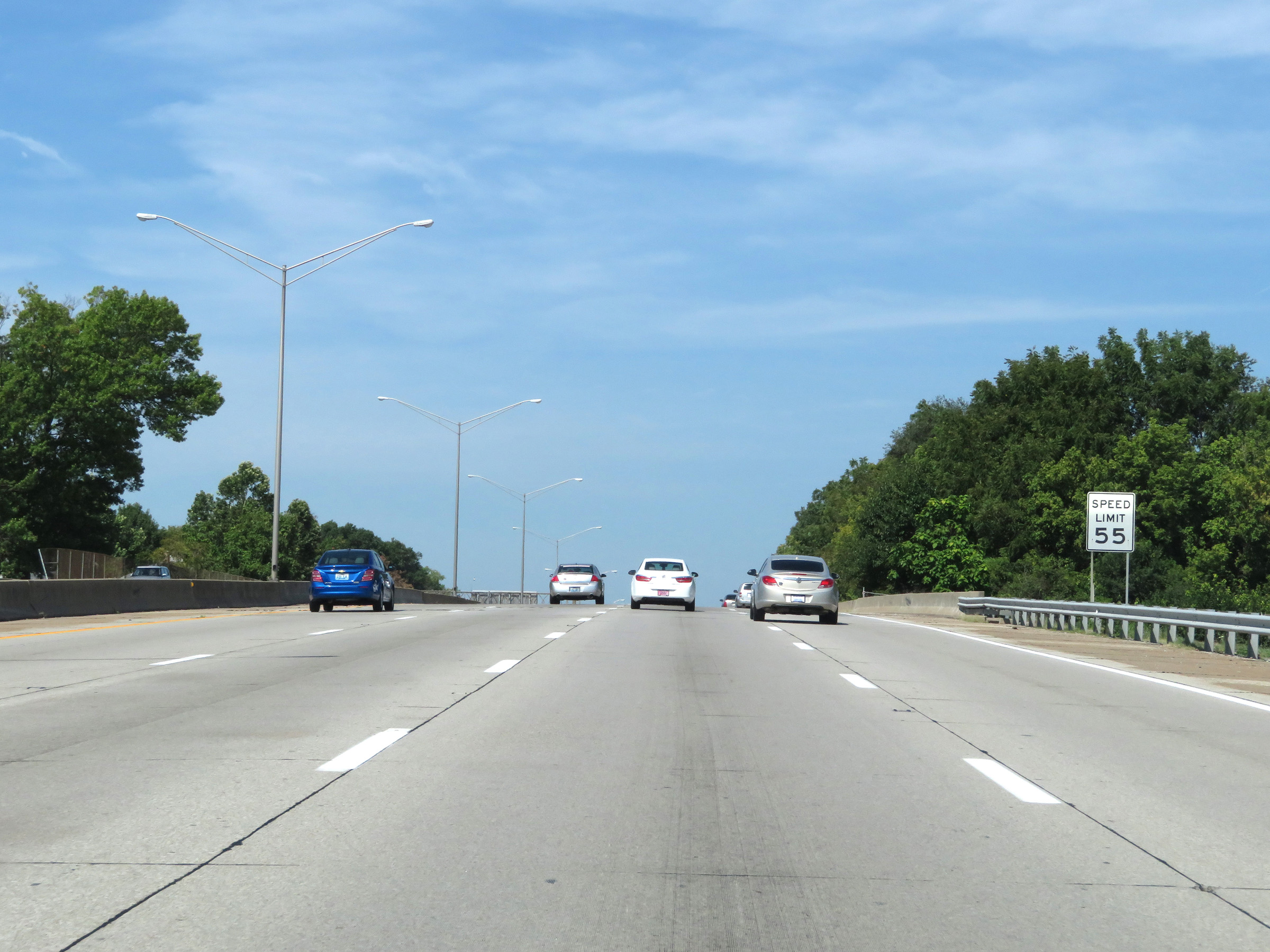 The speed limit on Interstate 264 West remains 55 mph. (Photo taken 8/10/19). |