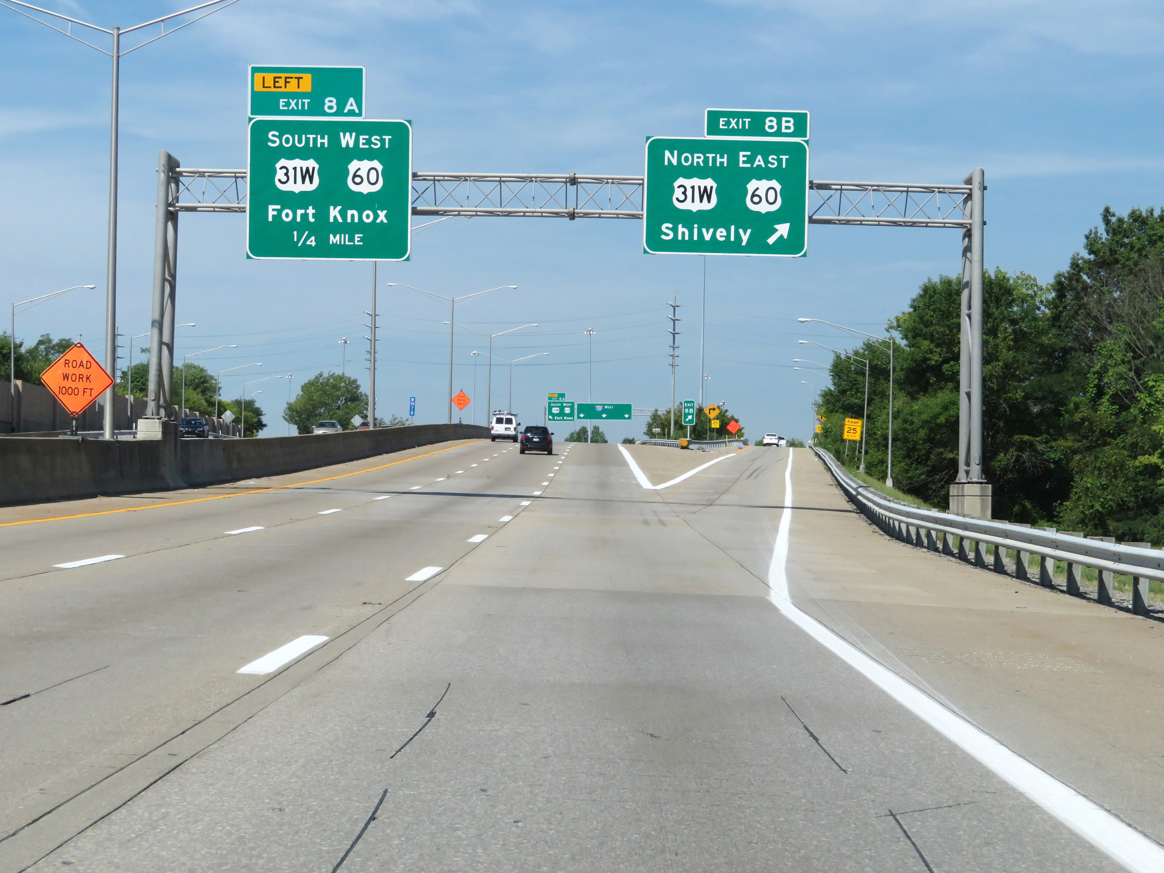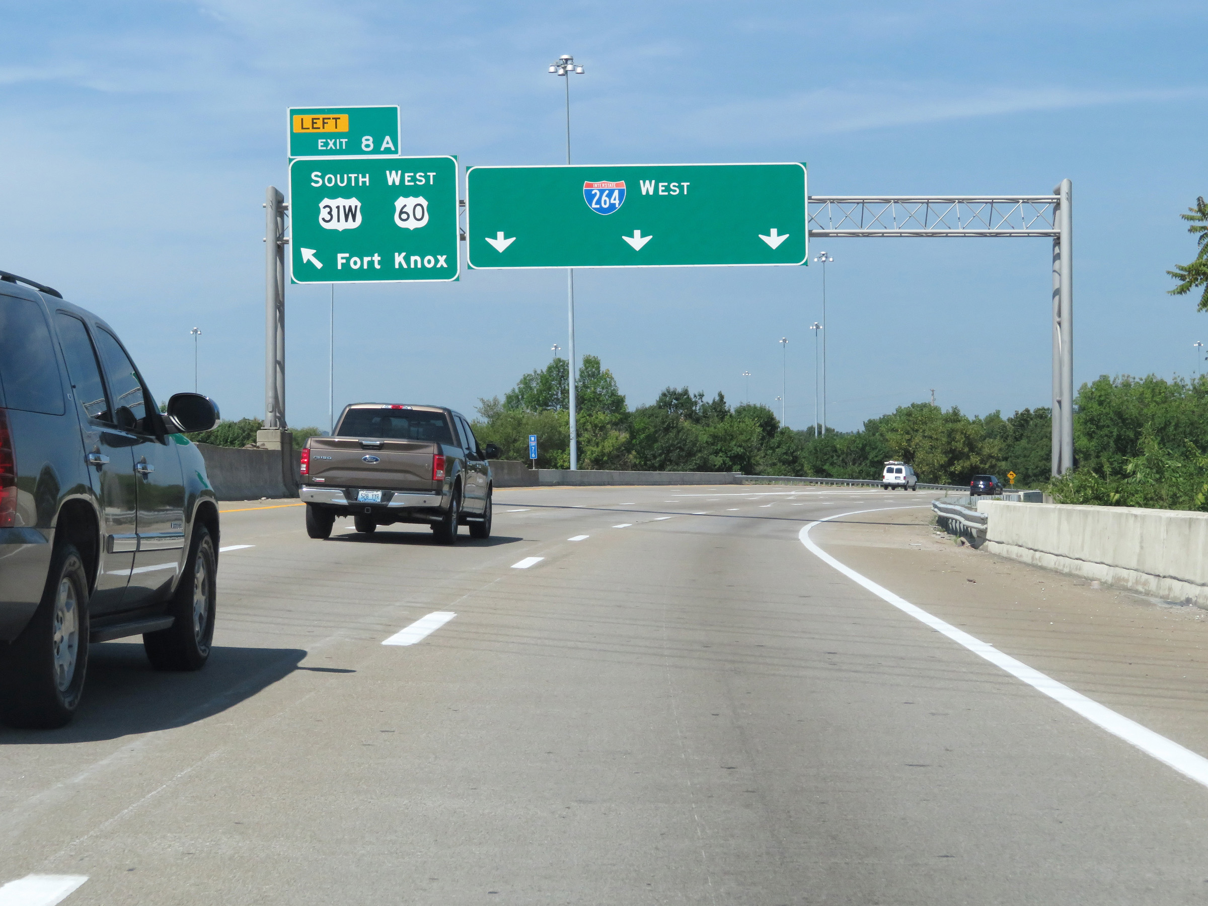 Interstate 264 West at Exit 8B: US 31W North / US 60 East - Shively (Photo taken 8/10/19). |