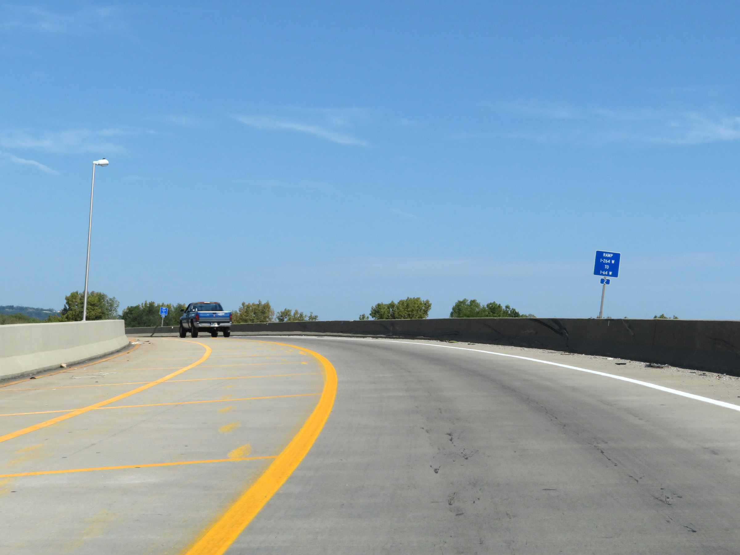 At mile marker 6.4, Interstate 264 West begins to curve to the north at the southwestern corner of the Louisville metro area. (Photo taken 8/10/19). |