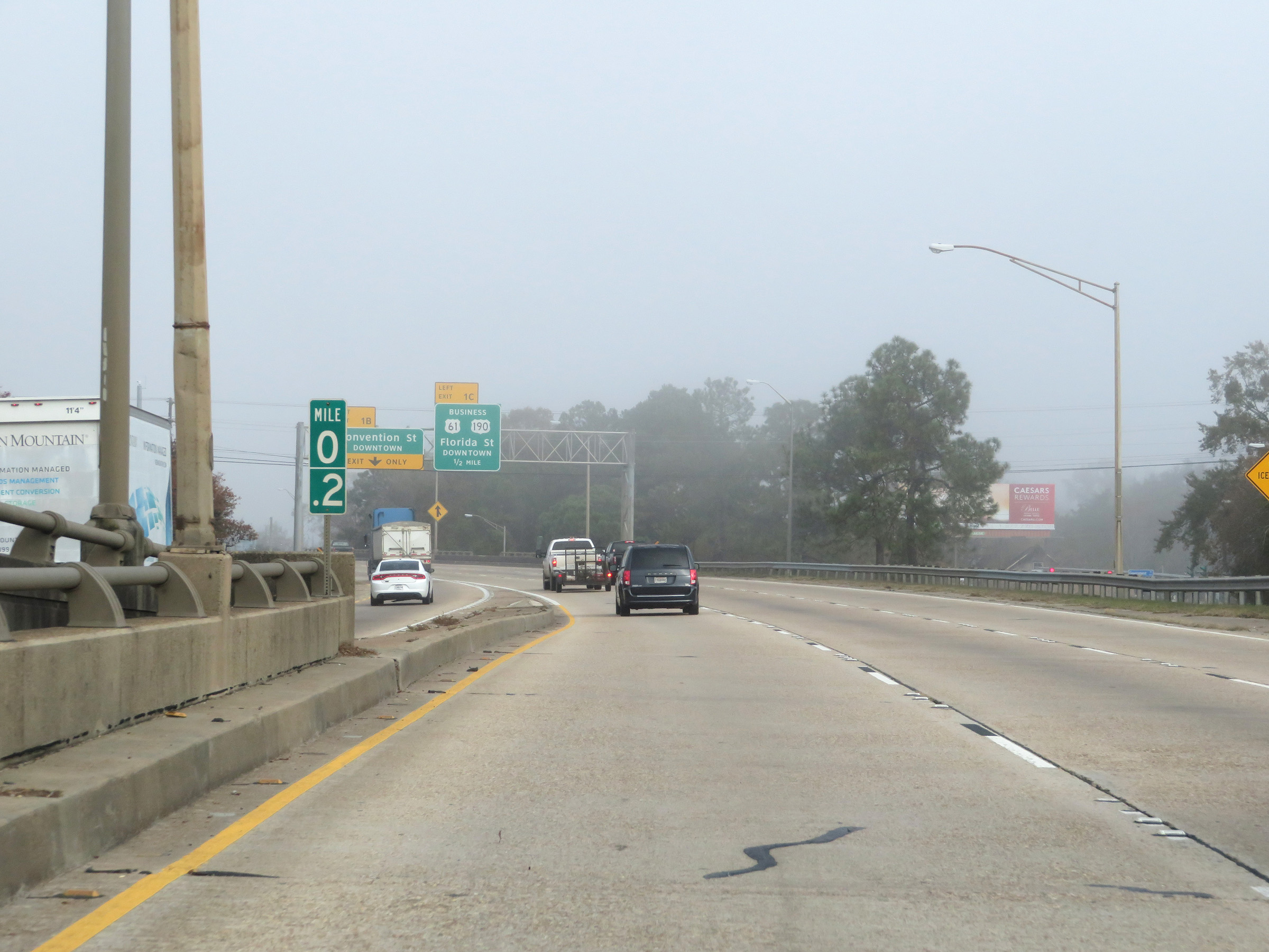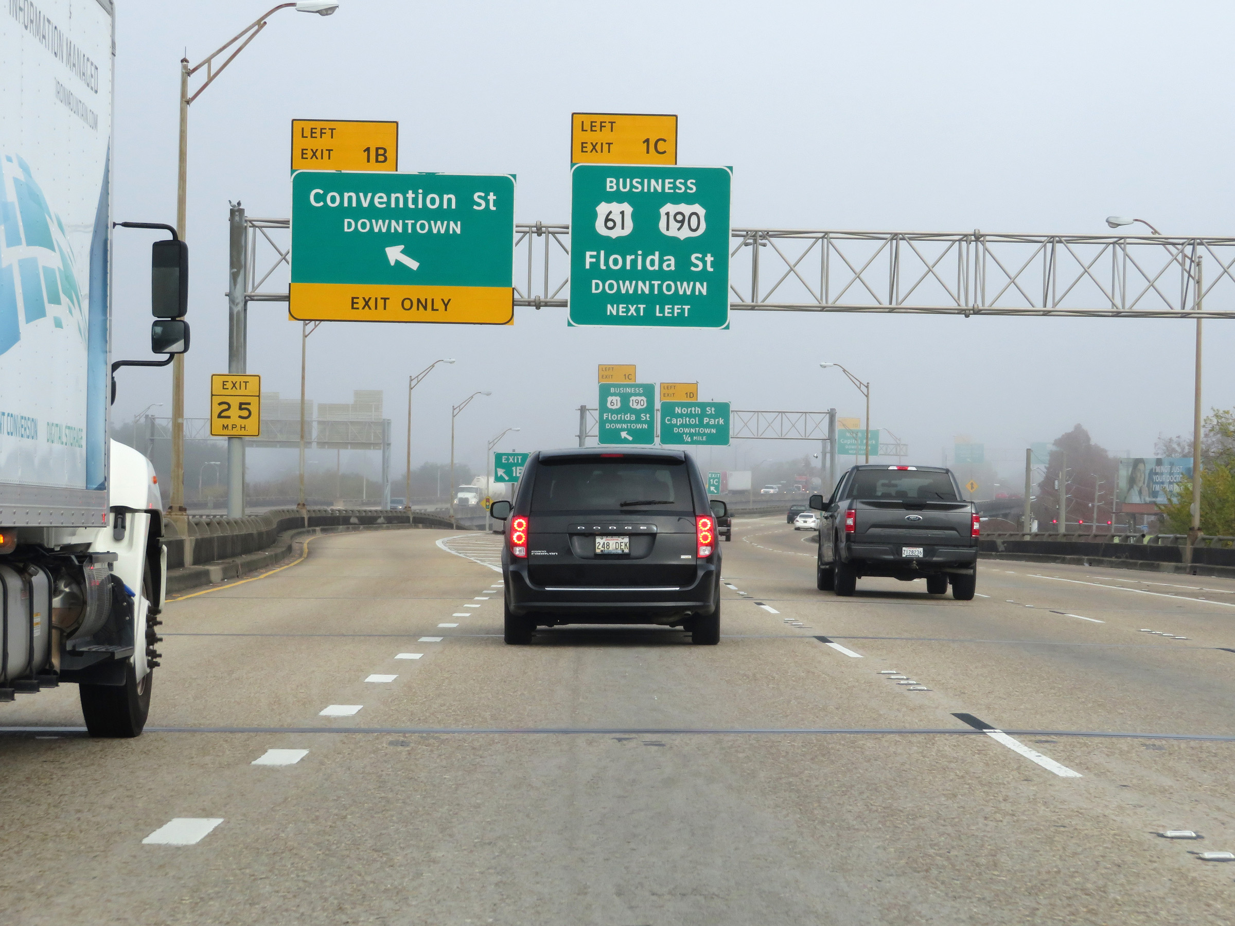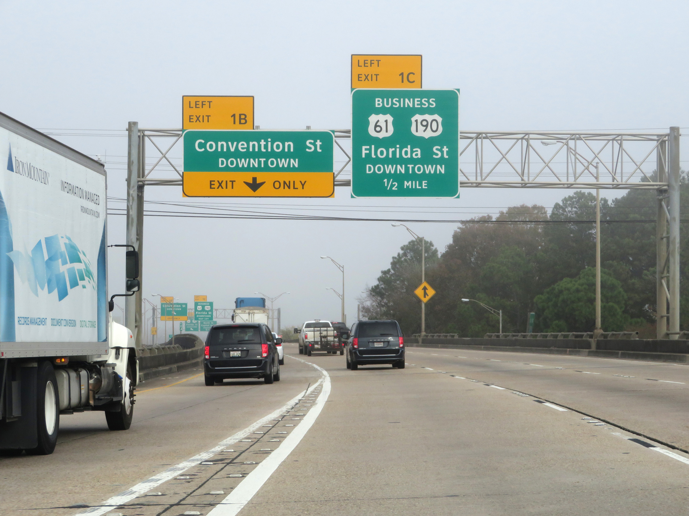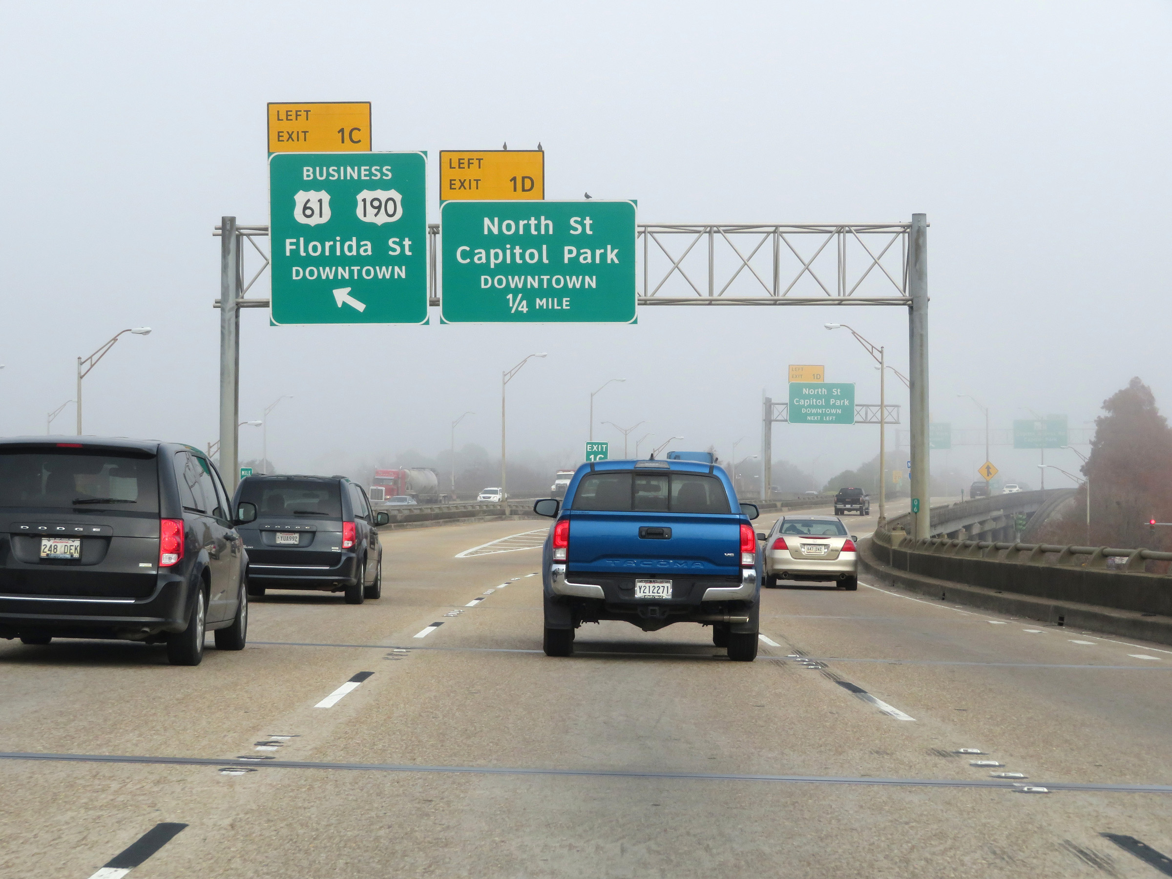 Interstate 110 North at Exit 1C: US 61 Business / US 190 Business - Florida St / Downtown (Photo taken 12/10/20). |