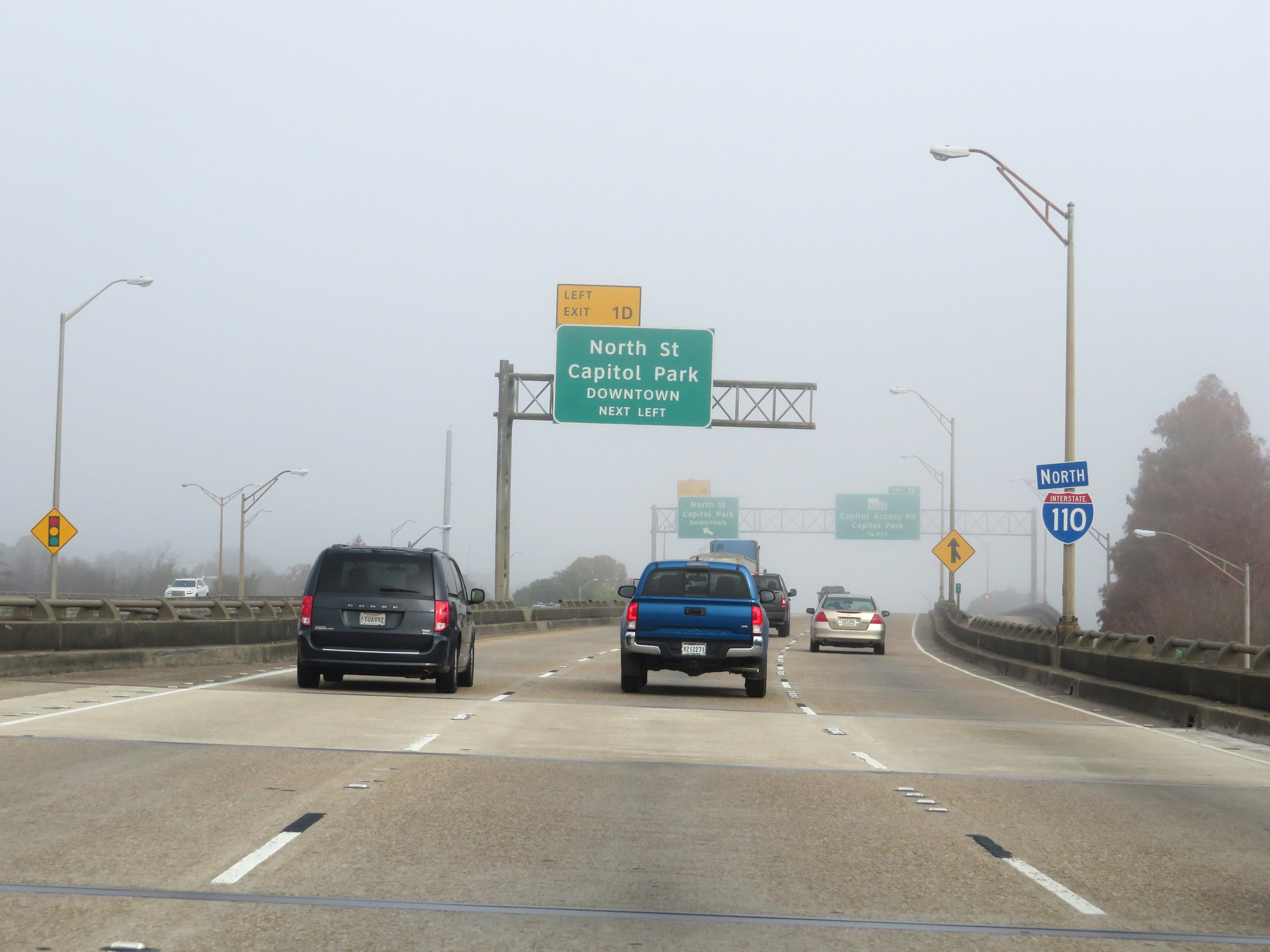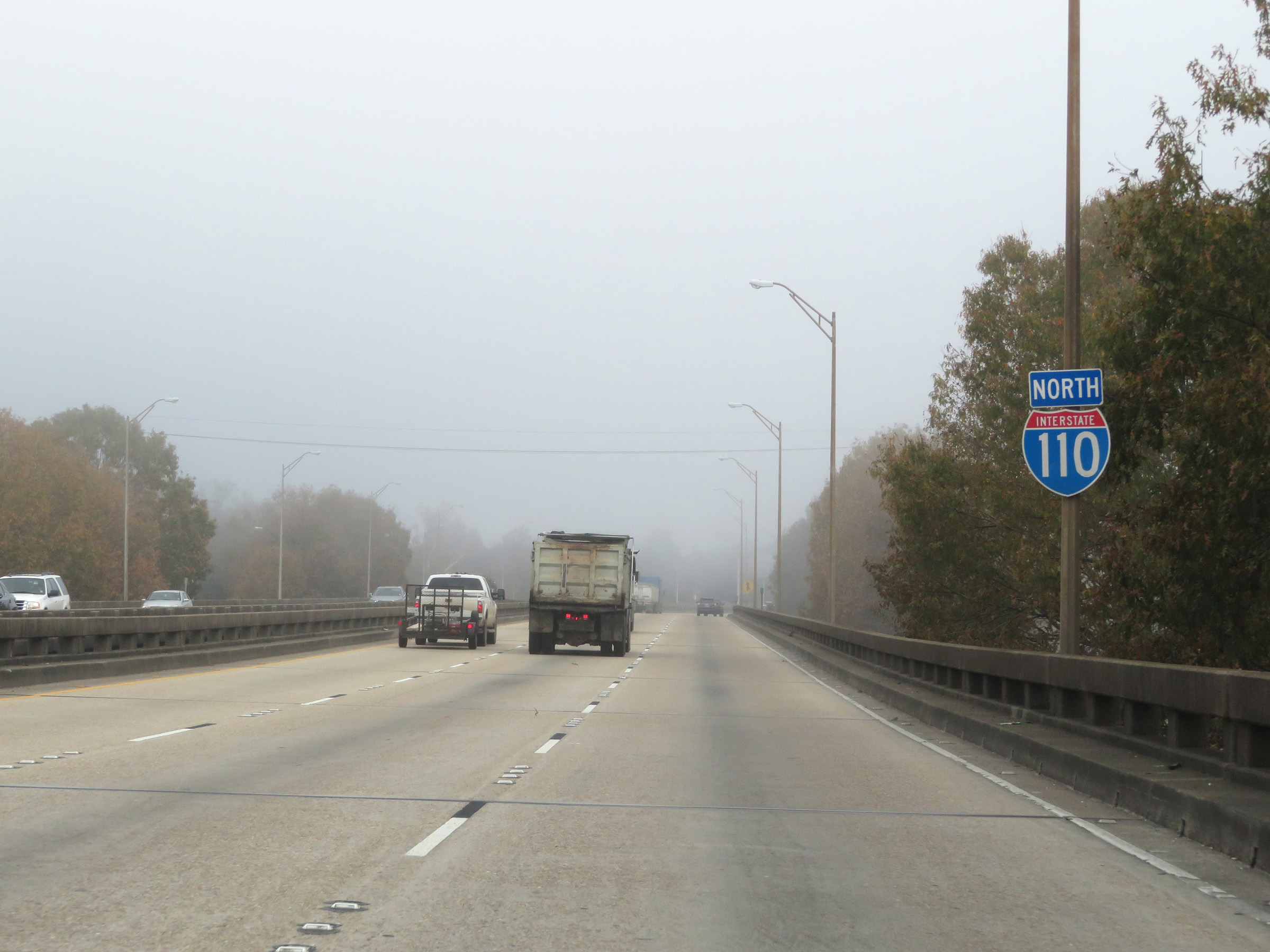 Merging onto Interstate 110 North via Exit 155B on Interstate 10 West in Baton Rouge. (Photo taken 12/10/20). |