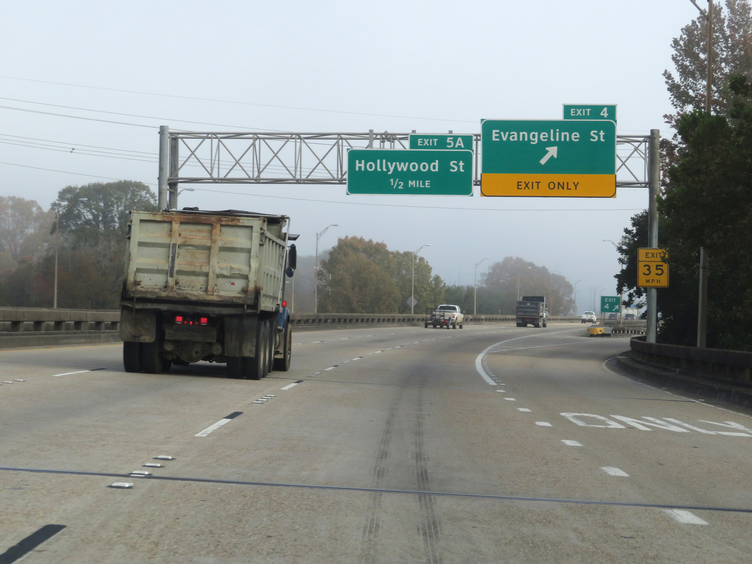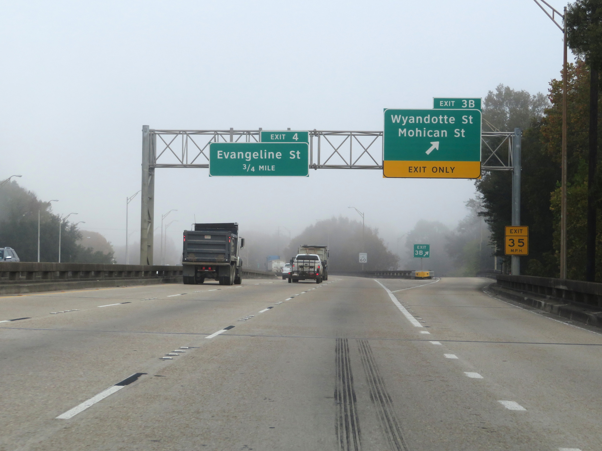 Interstate 110 North at Exit 4: Evangeline St (Photo taken 12/10/20). |