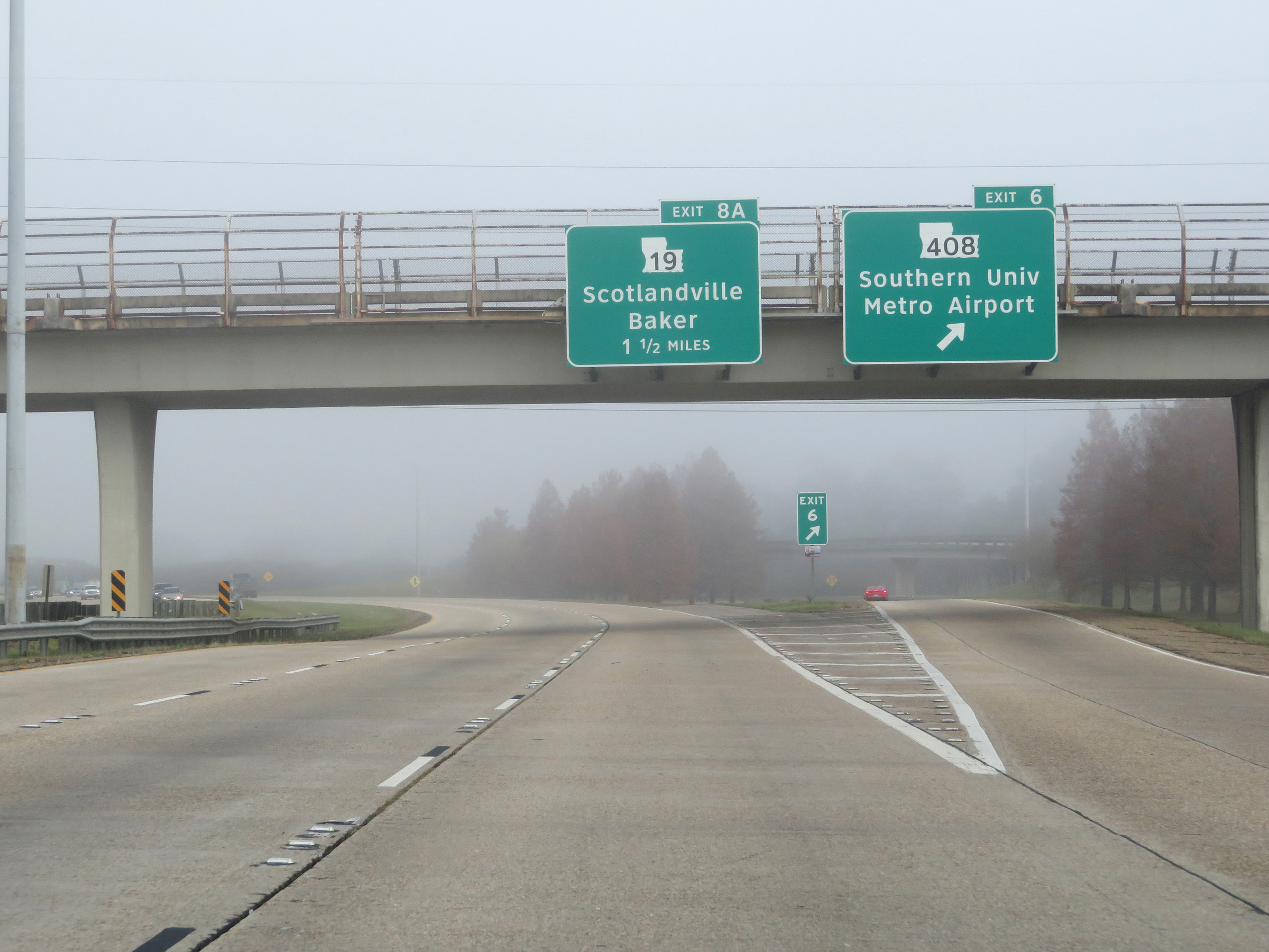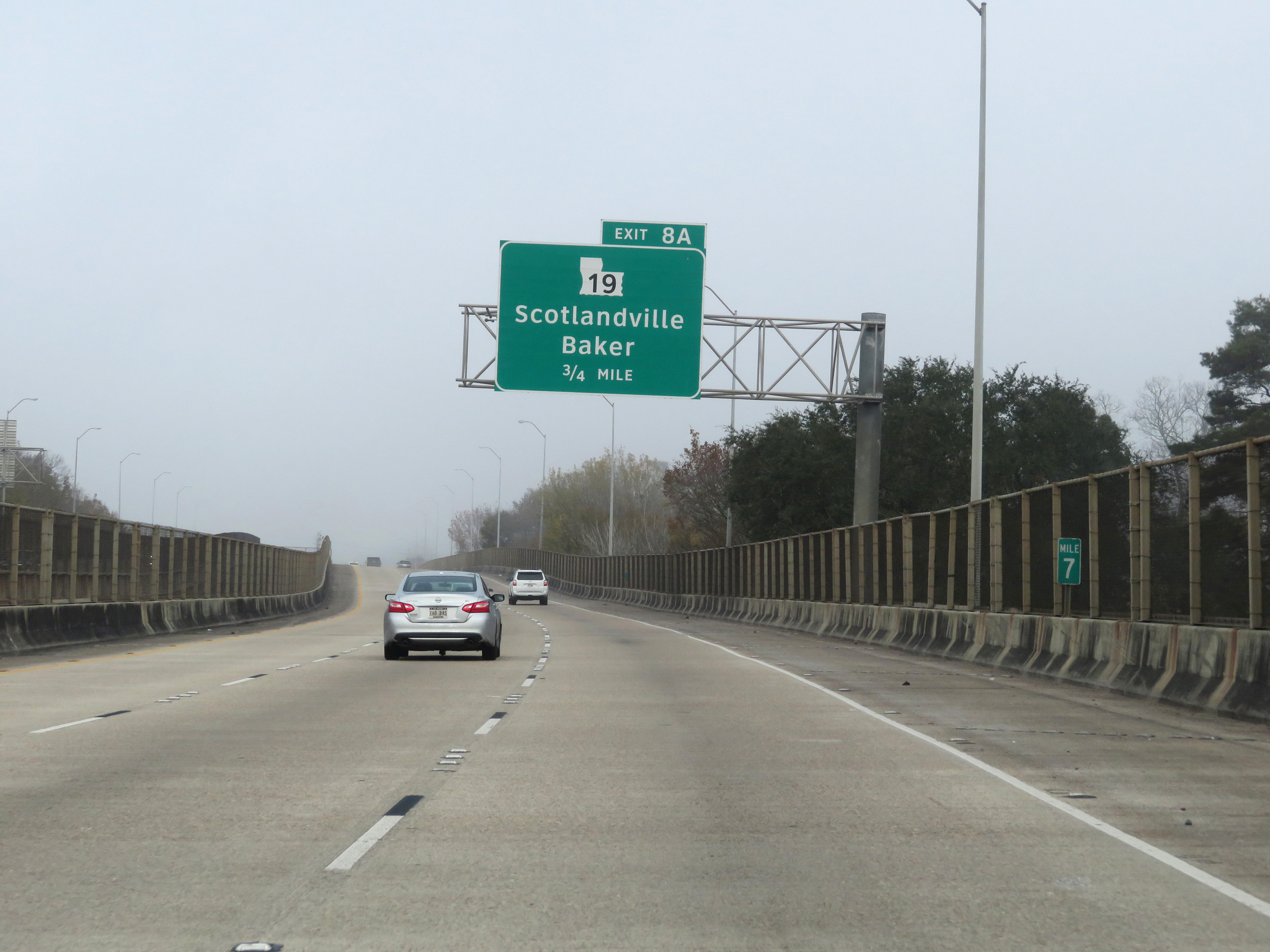 Interstate 110 North at Exit 8A: LA 19 - Scotlandville / Baker (Photo taken 12/10/20). |