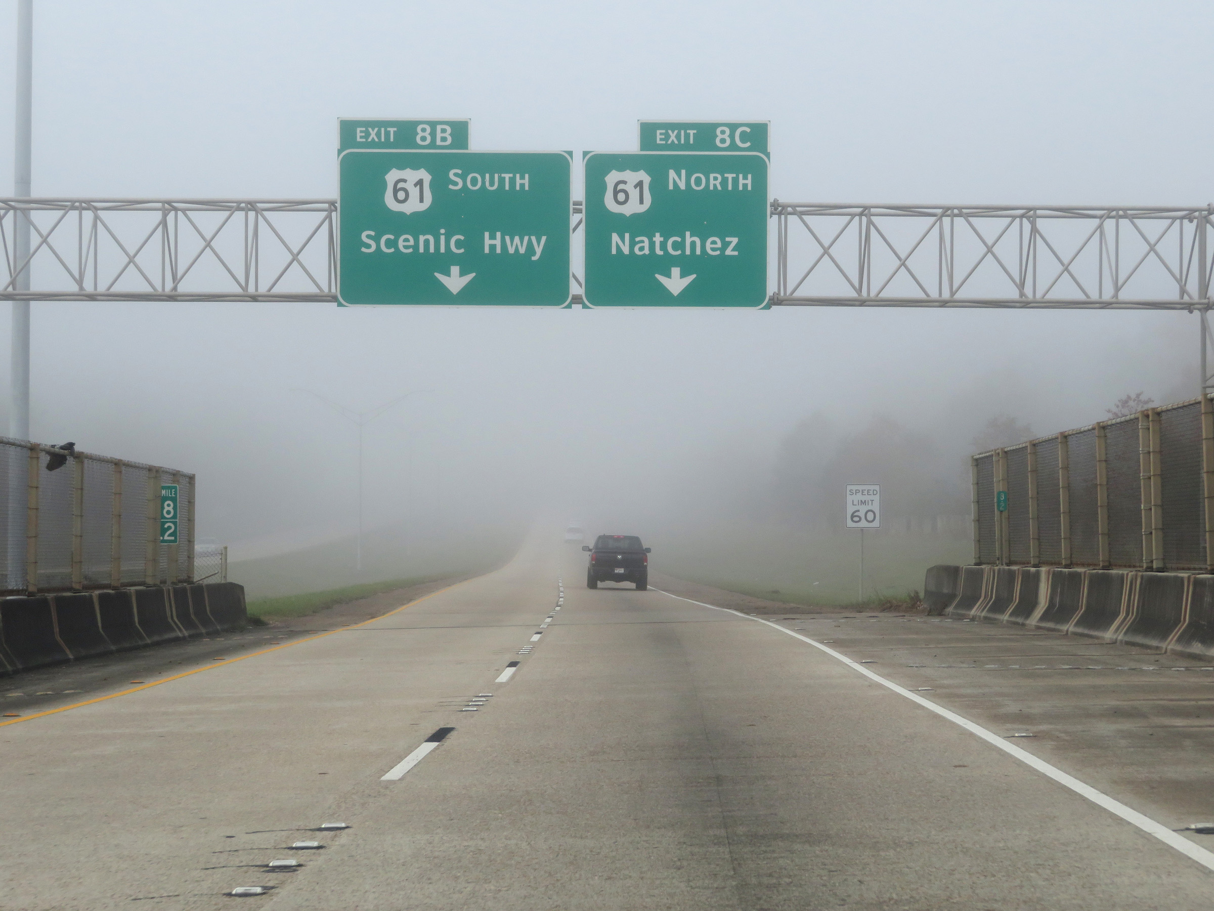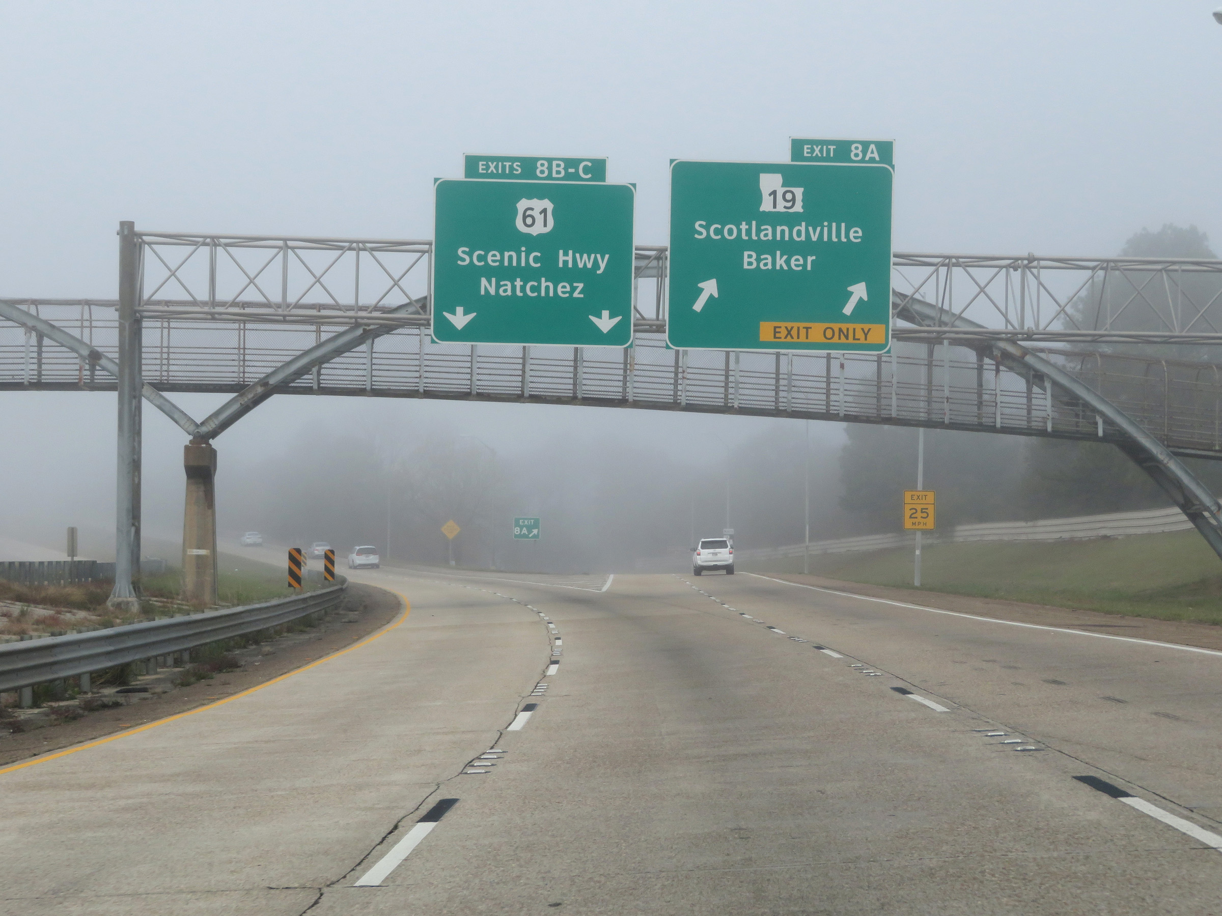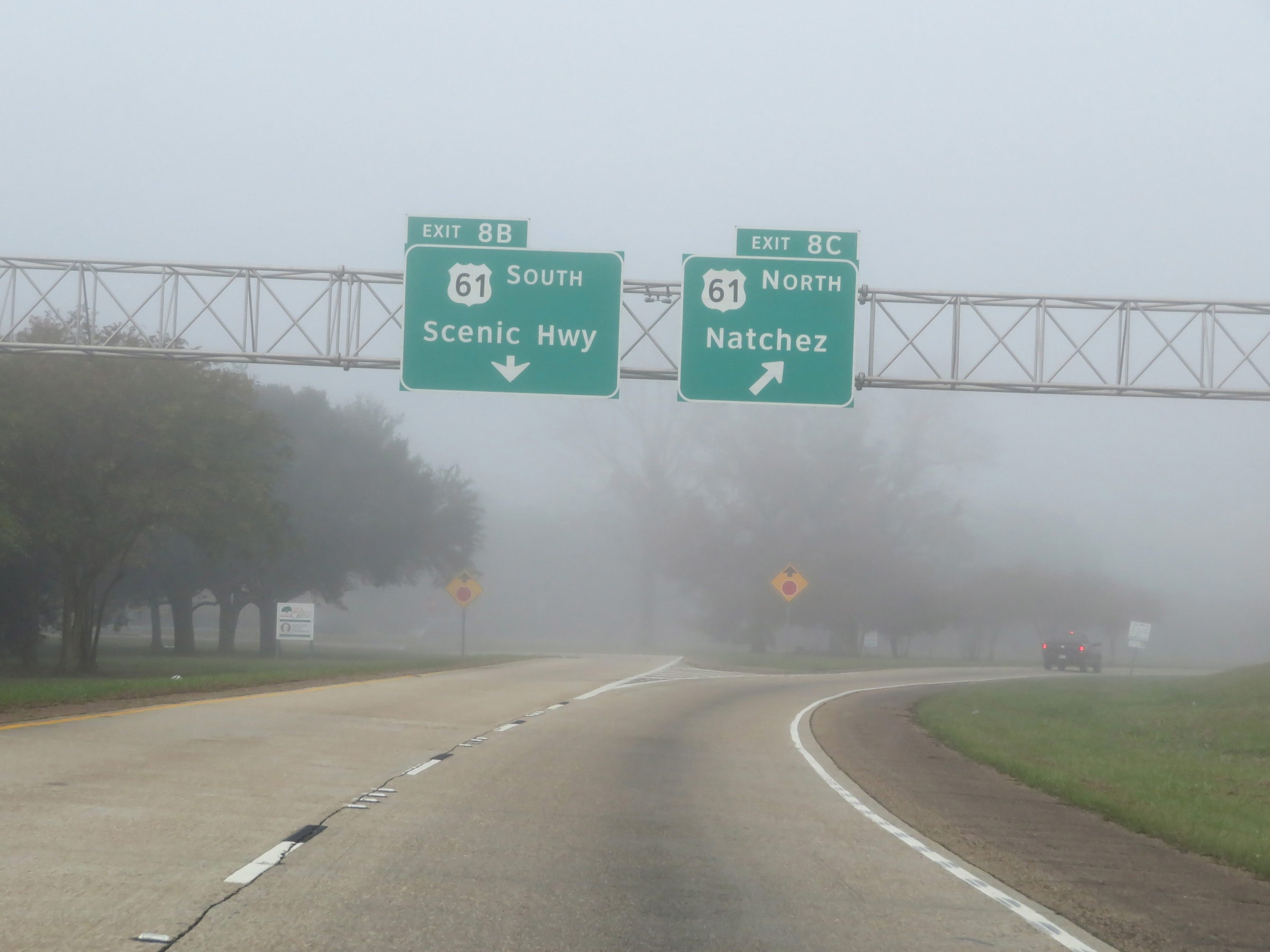 Interstate 110 North at Exit 8C: US 61 North - Natchez; Exit 8B: US 61 South - Scenic Hwy (Photo taken 12/10/20). |