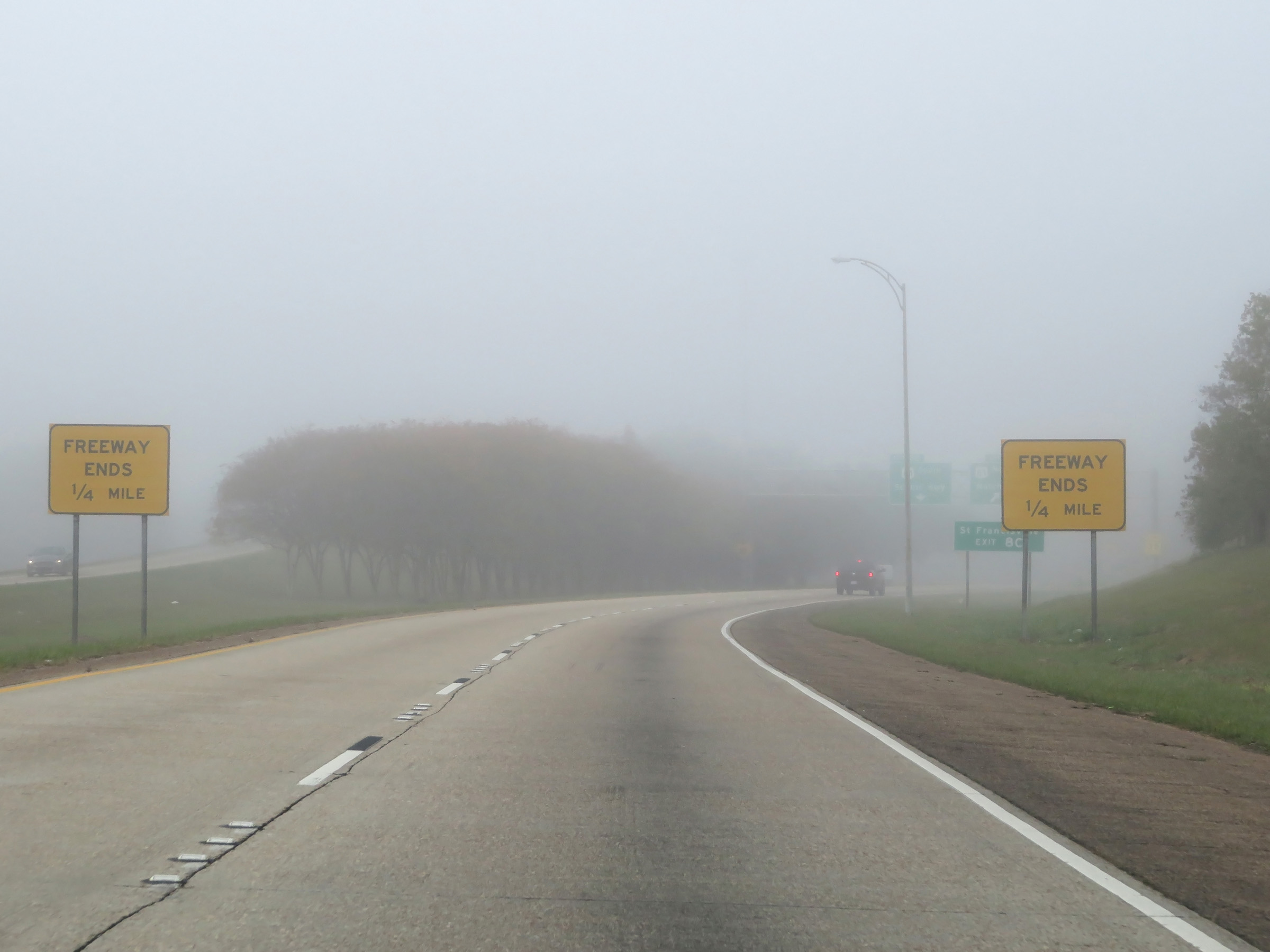 View on US 61 North at the northern terminus of Interstate 110. US 61 will continue north to St. Francisville. (Photo taken 12/10/20). |