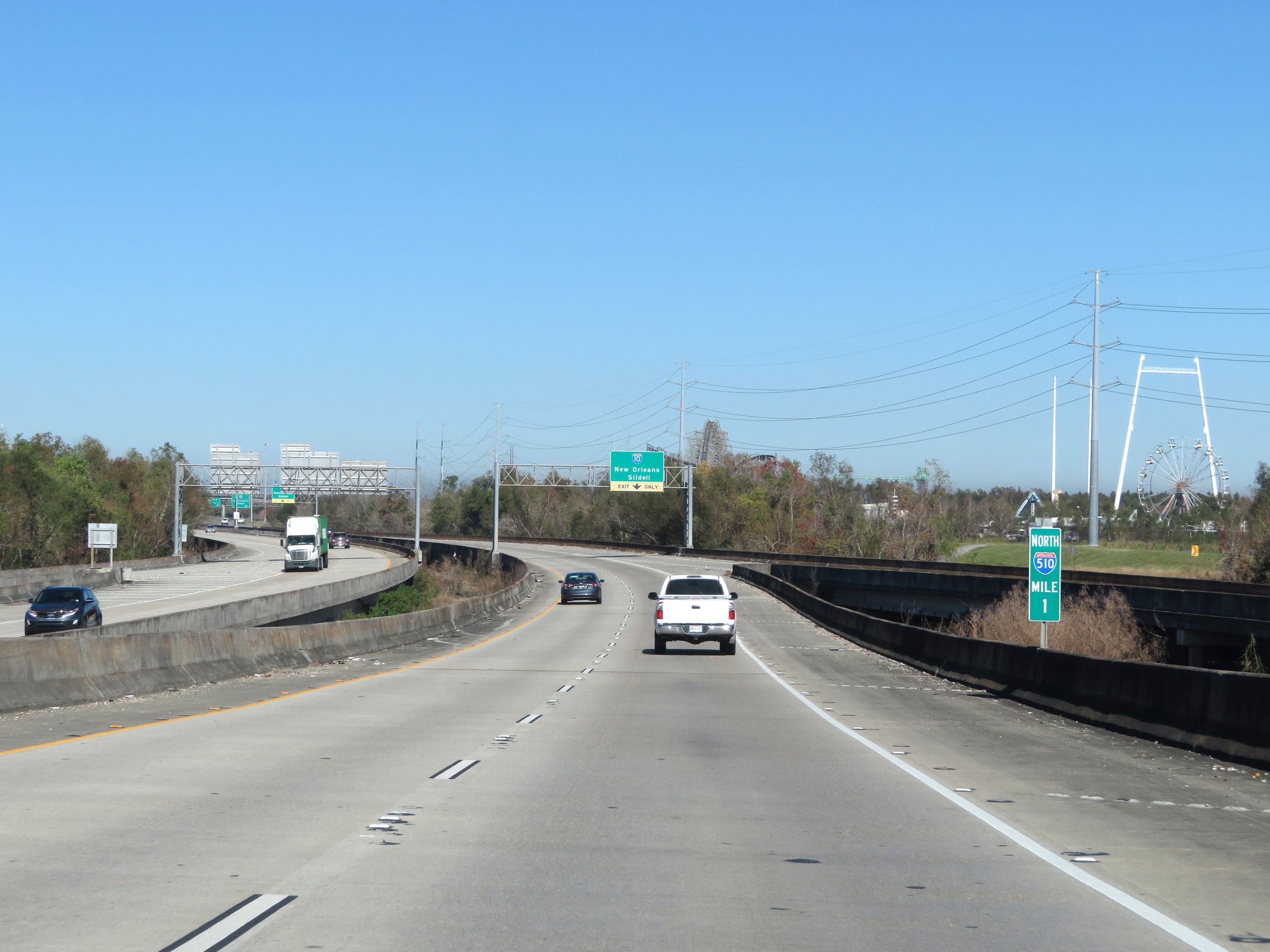 |  | View on Interstate 510 North at mile marker 1. In the distance we can see the closed Six Flags New Orleans, which has remained closed since 2005 after suffering severe flood damage from Hurricane Katrina. (Photo taken 12/9/20). |