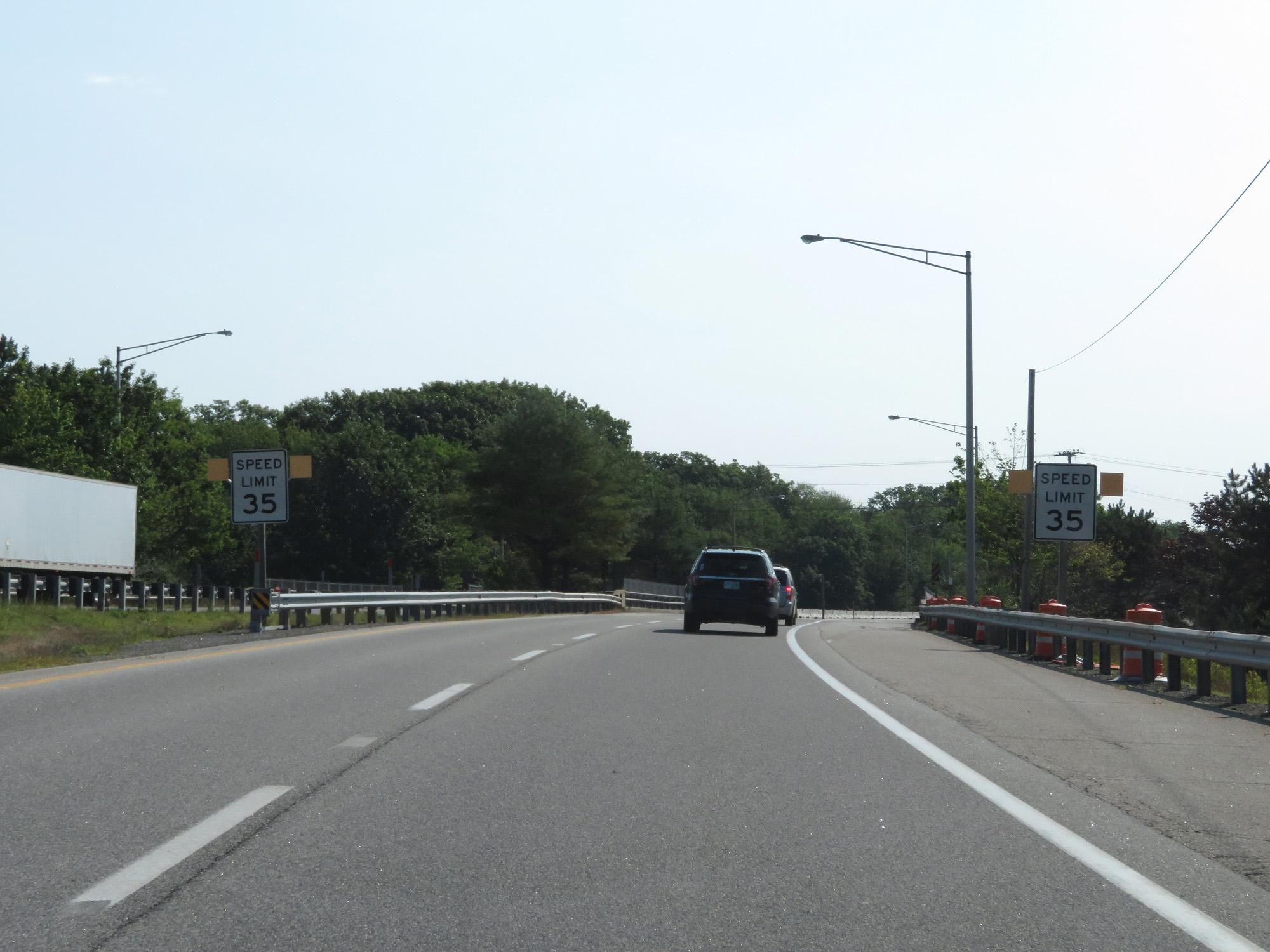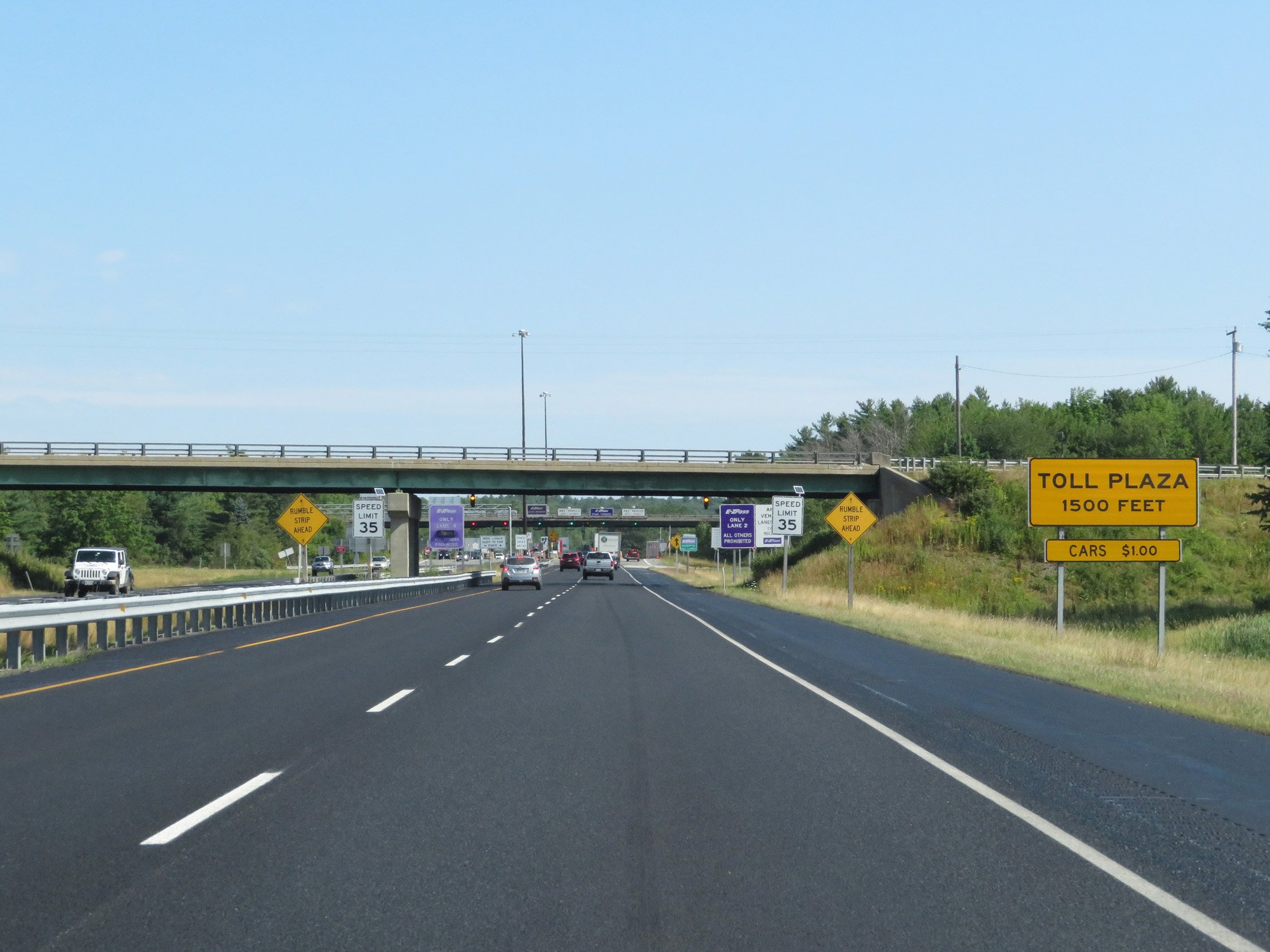 The speed limit decreases to 35 mph as Interstate 295 North nears the toll plaza. (Photo taken 8/7/17). |