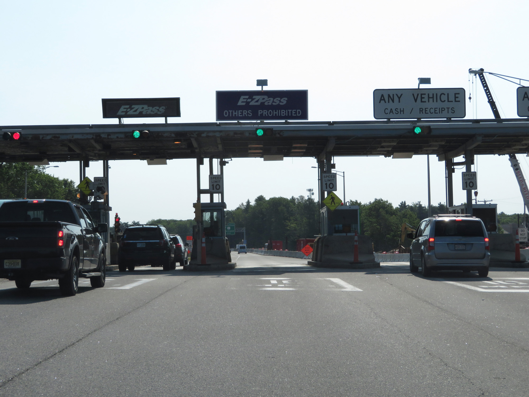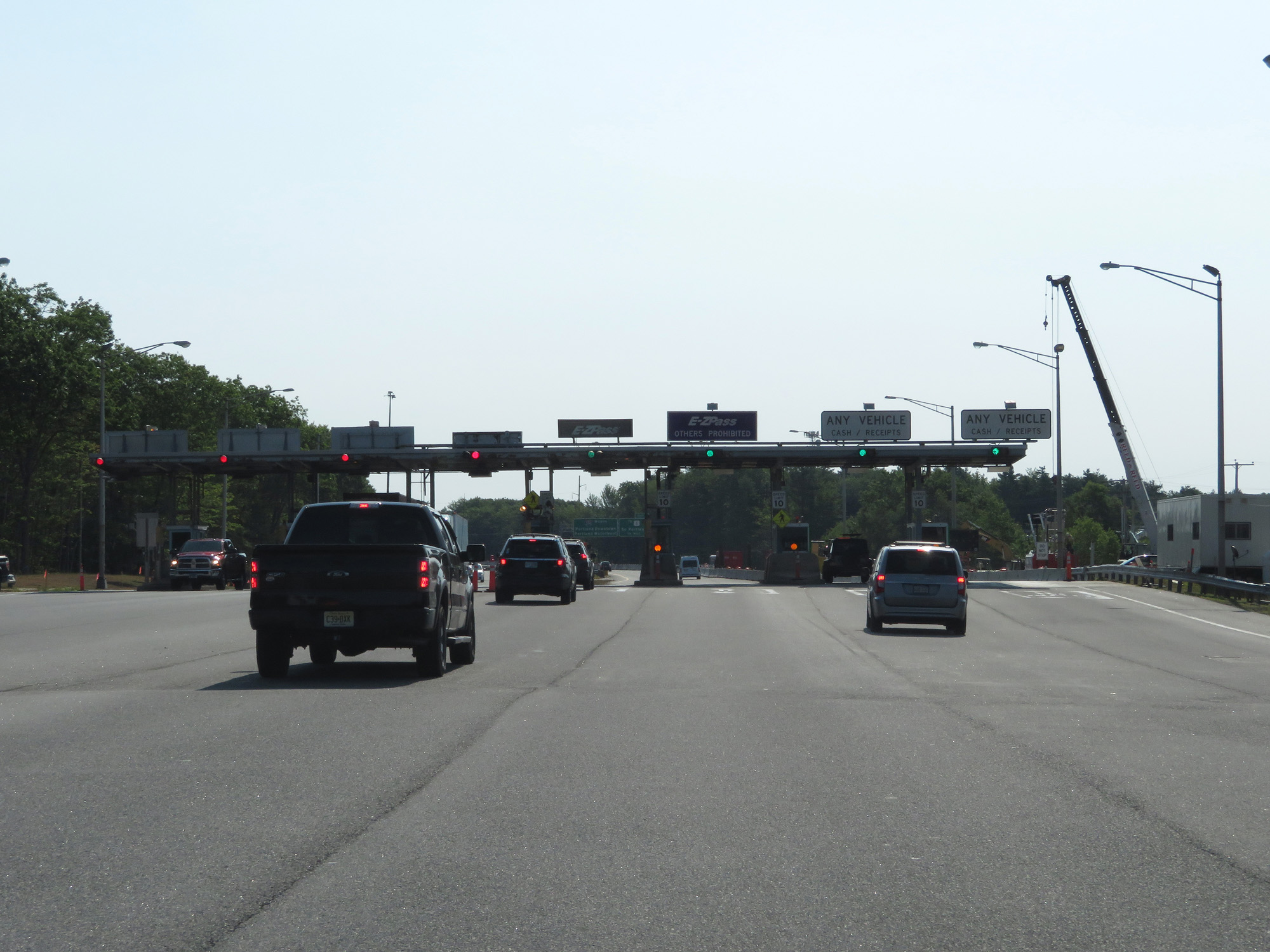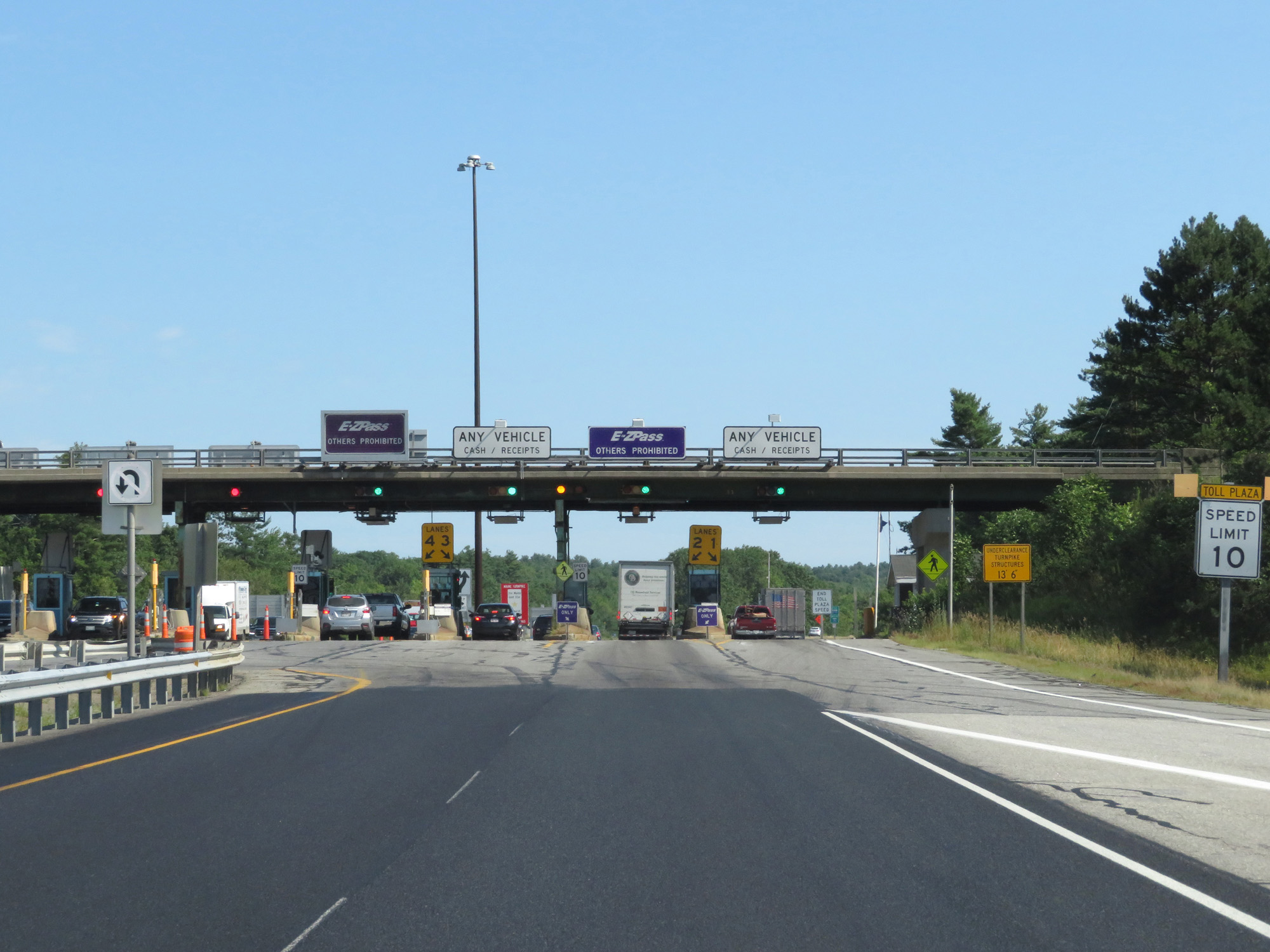 Close up view of the toll plaza for the Maine Turnpike on Interstate 295 North. (Photo taken 8/7/17). |