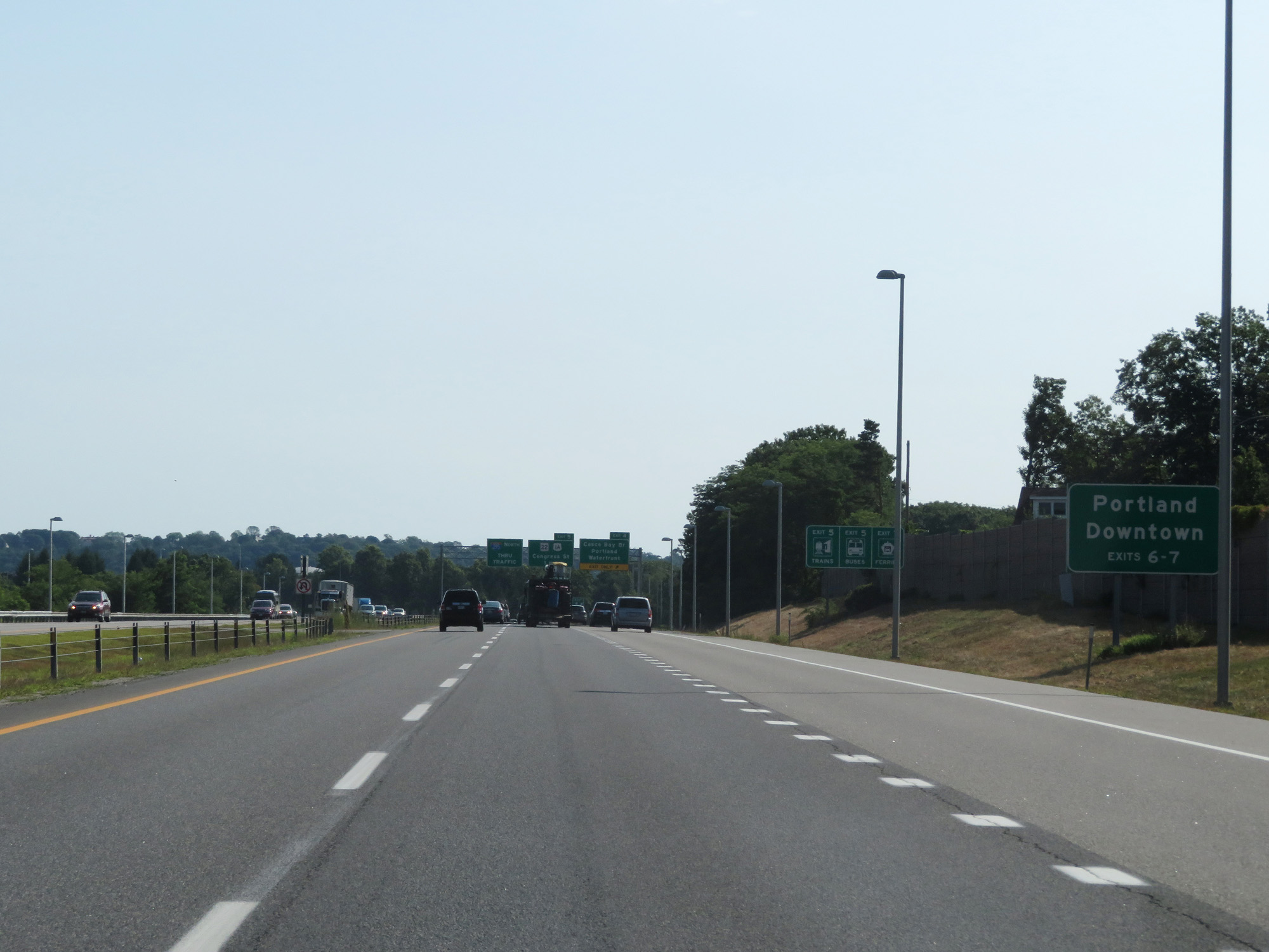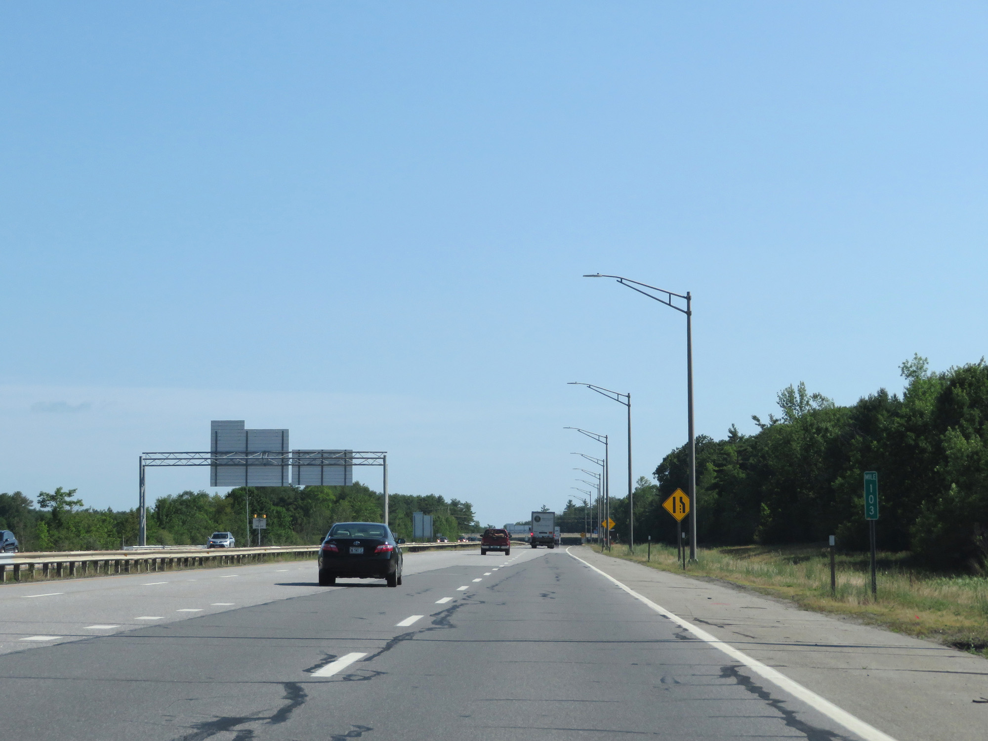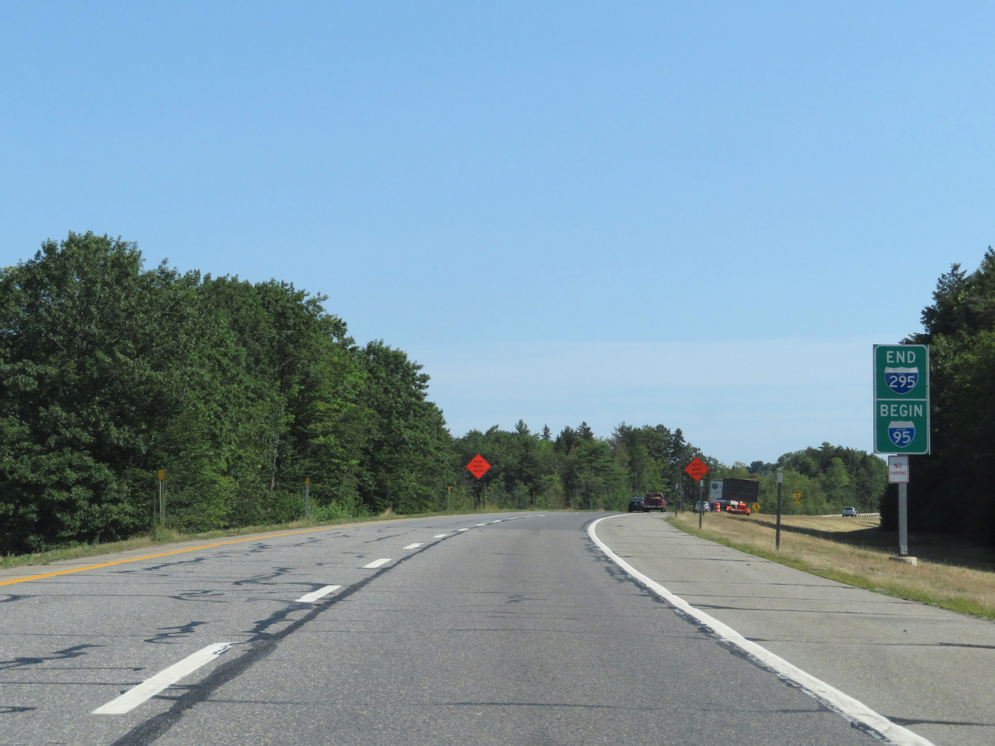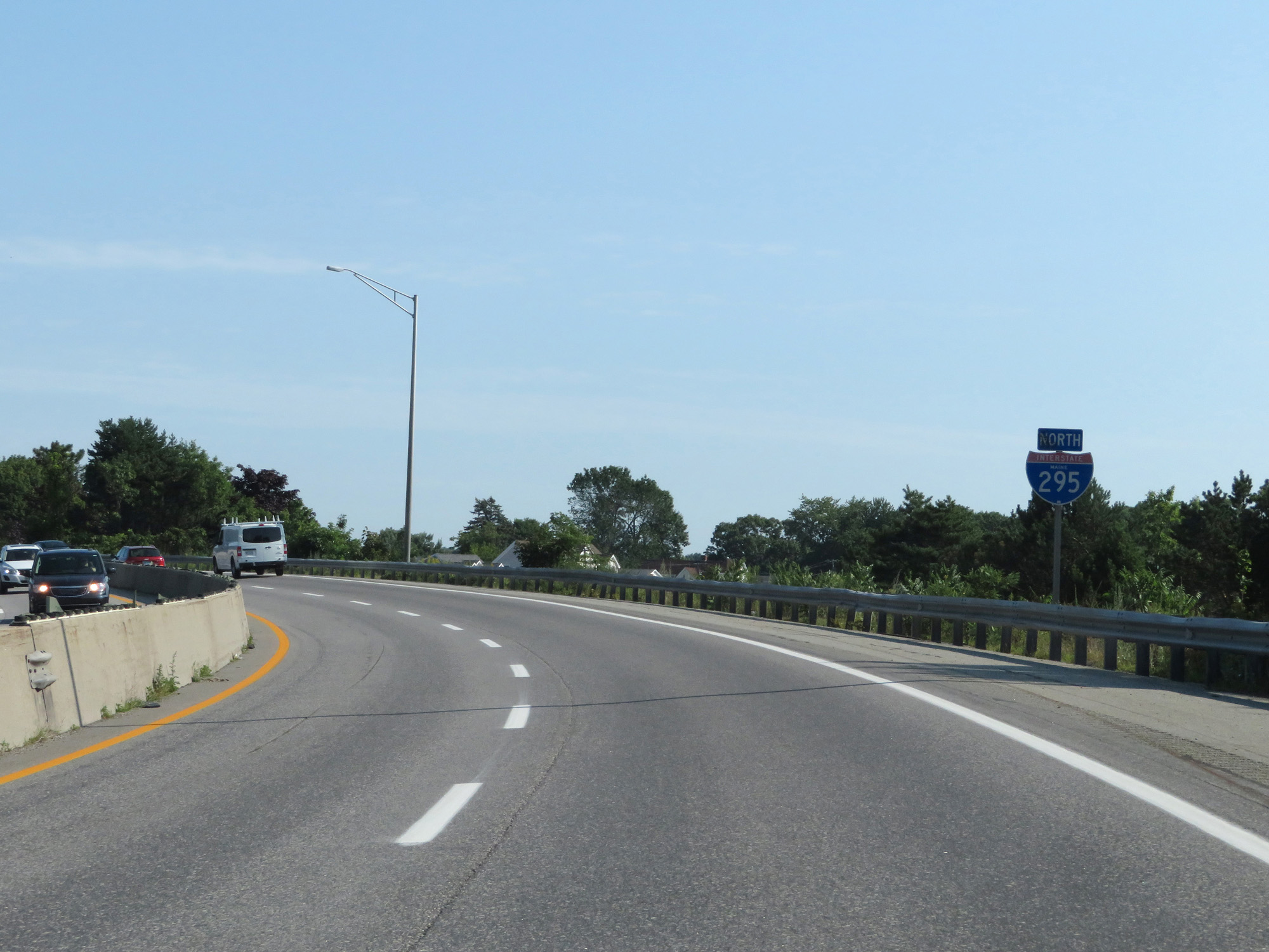 Interstate 295 North merges into Interstate 95 North (Maine Turnpike) at mile marker 103. (Photo taken 8/7/17). |