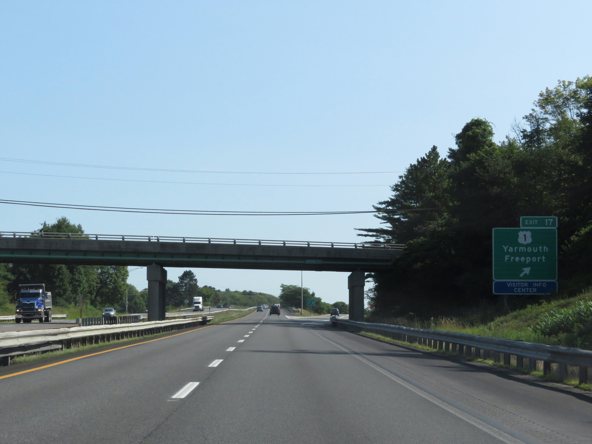 Interstate 295 North at Exit 22: ME 125 / ME 136 - Freeport / Durham (Photo taken 8/7/17). |