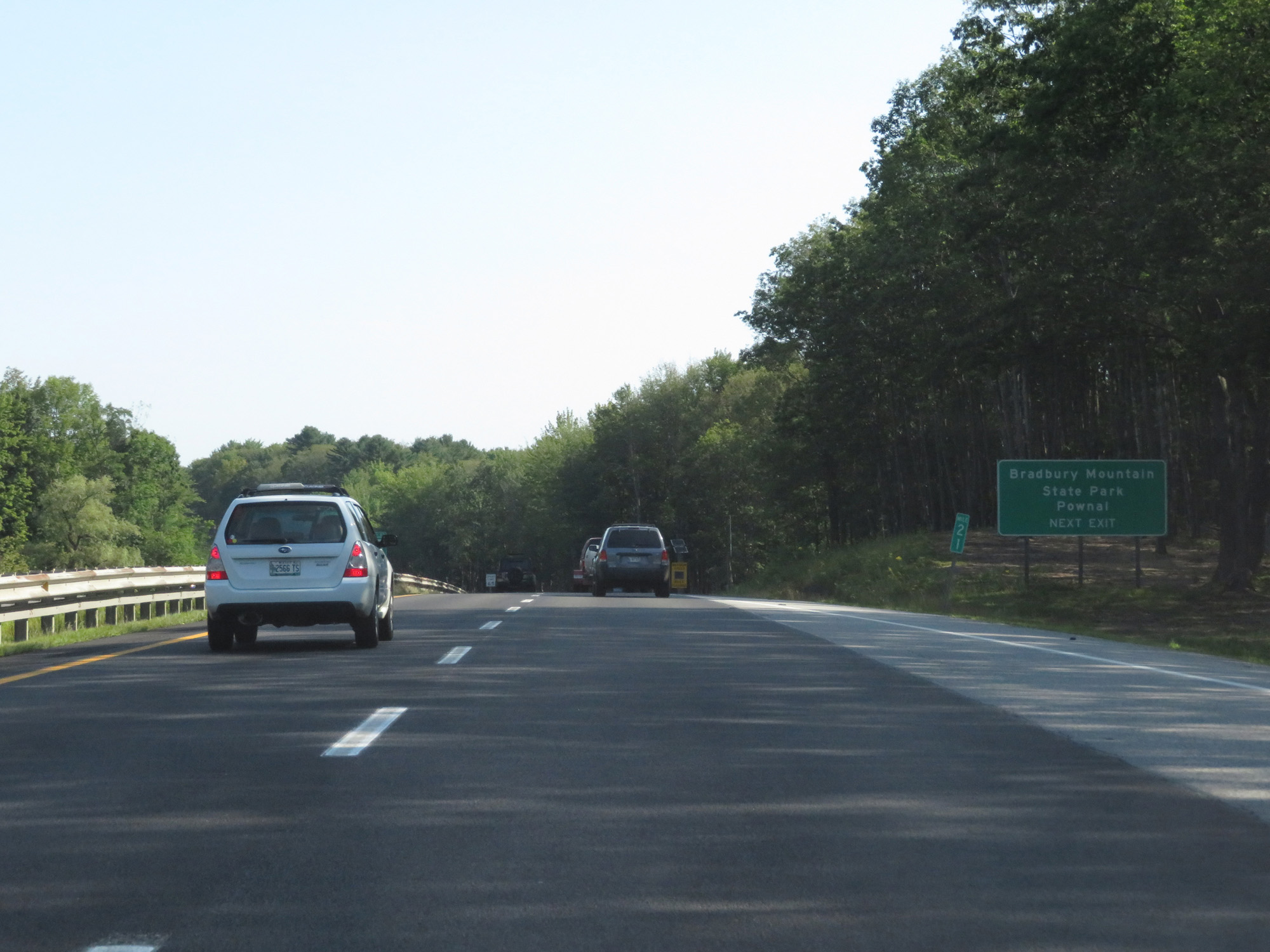 Take Exit 22 to Bradbury Mountain State Park and Pownal. (Photo taken 8/7/17). |