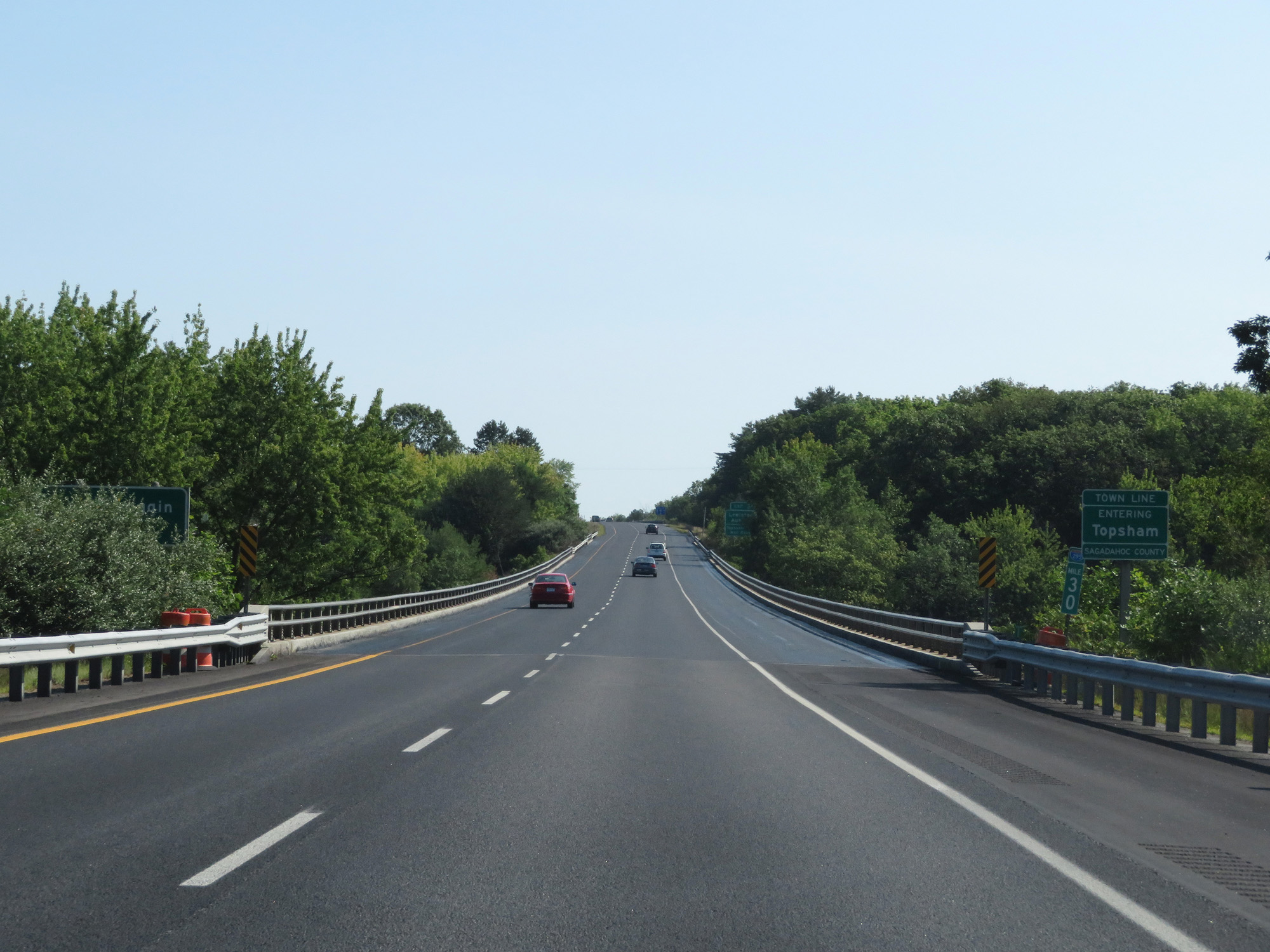 Interstate 295 North enters the Topsham town limits at mile marker 30. (Photo taken 8/7/17). |